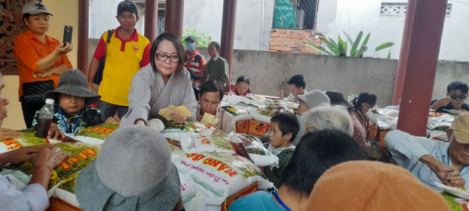 Tiếp đoàn có Ni sư TN Tâm Hiếu- cố vấn Ban Từ thiện xã hội thị xã Phú Mỹ, ủy viên Ban Từ thiện PBNG Ni giới Tỉnh Bà Rịa – Vũng Tàu, trụ trì chùa Hương Đàm.