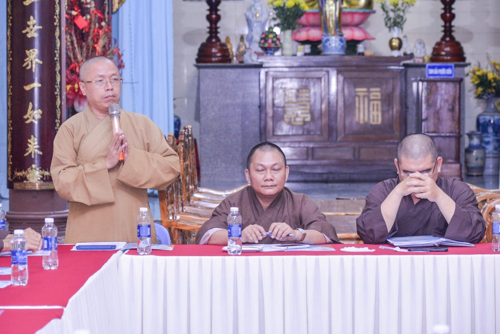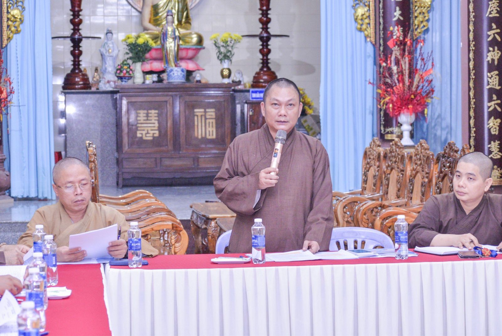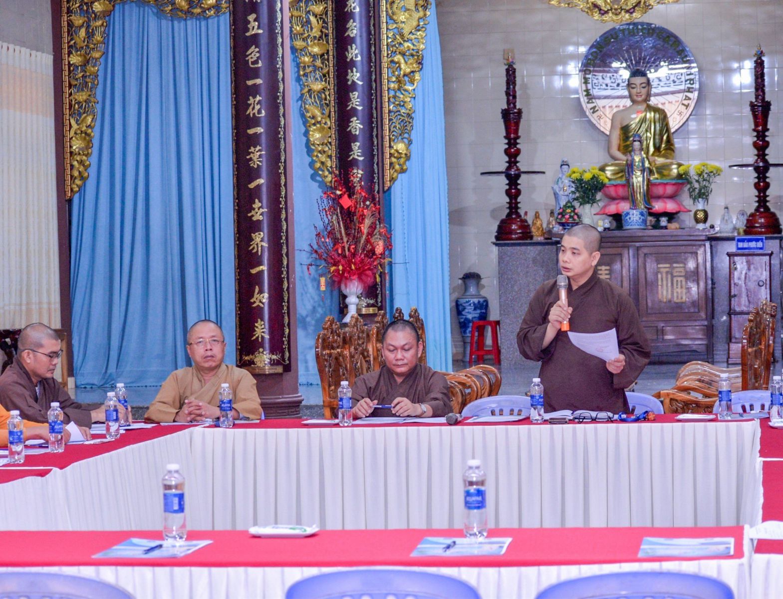 Chủ toạ cuộc họp có Đại đức Thích Nguyên Nguyệt – Phó Trưởng Ban kiêm Chánh Thư ký BTS Phật giáo Tỉnh; Đại đức Thích Đồng Hạnh – Phó Thư ký kiêm Trưởng Ban TT-TT Phật giáo Tỉnh; Thượng toạ Thích Nhuận Thông – Trưởng Ban Văn hoá, Phó Trưởng Ban Thường trực Ban TT-TT; Đại đức Thích Nguyên Hảo, Đại đức Thích Hạnh Thanh, Đại đức Thích Đức Tùng – đồng Phó Trưởng Ban TT-TT Phật giáo Tỉnh; Đại đức Thích Quảng Tuệ - Phó Trưởng Ban kiêm Chánh Thư ký Ban TT-TT Phật giáo Tỉnh; cùng Chư Tôn đức Tăng Ni, quý nam nữ cư sĩ thành viên Ban TTTT đồng tham dự.