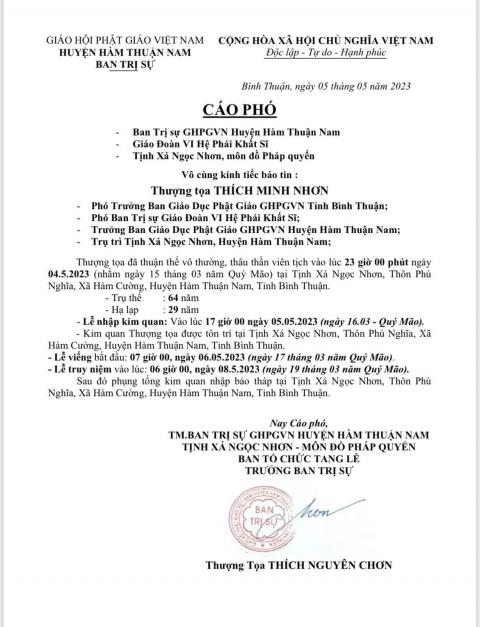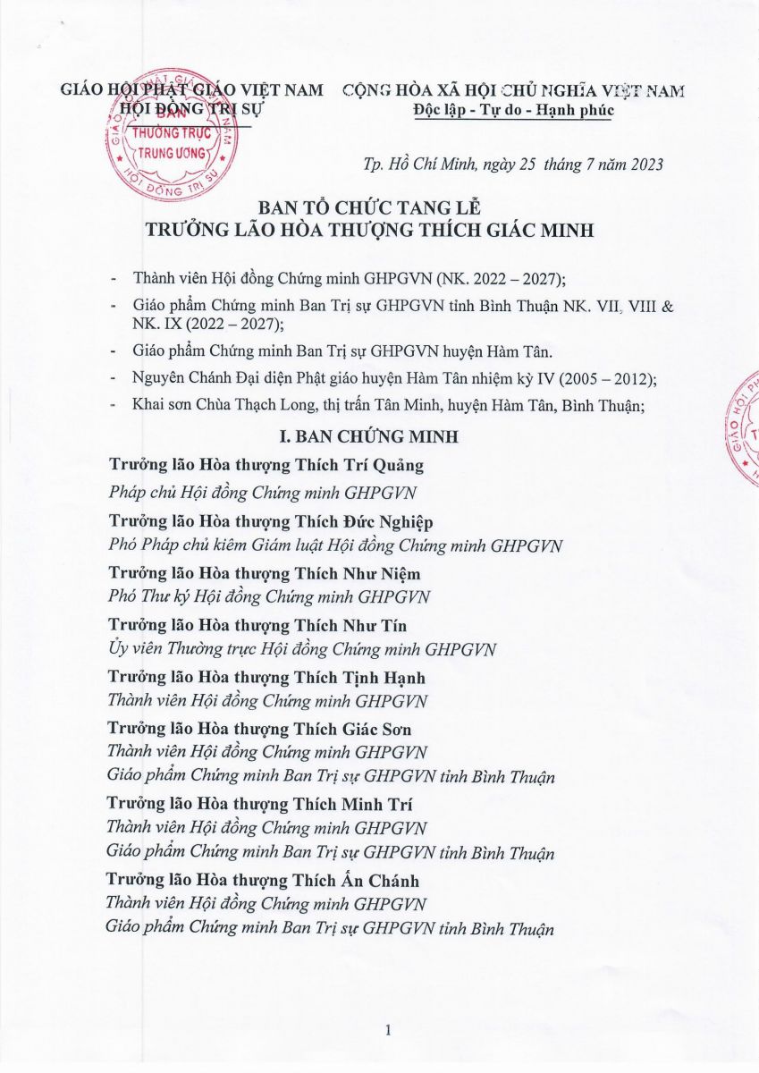 Ngày 15/7/2023 (28/5/ Quý Mão), Ban Tổ chức tang lễ và môn đồ pháp quyến trang ...