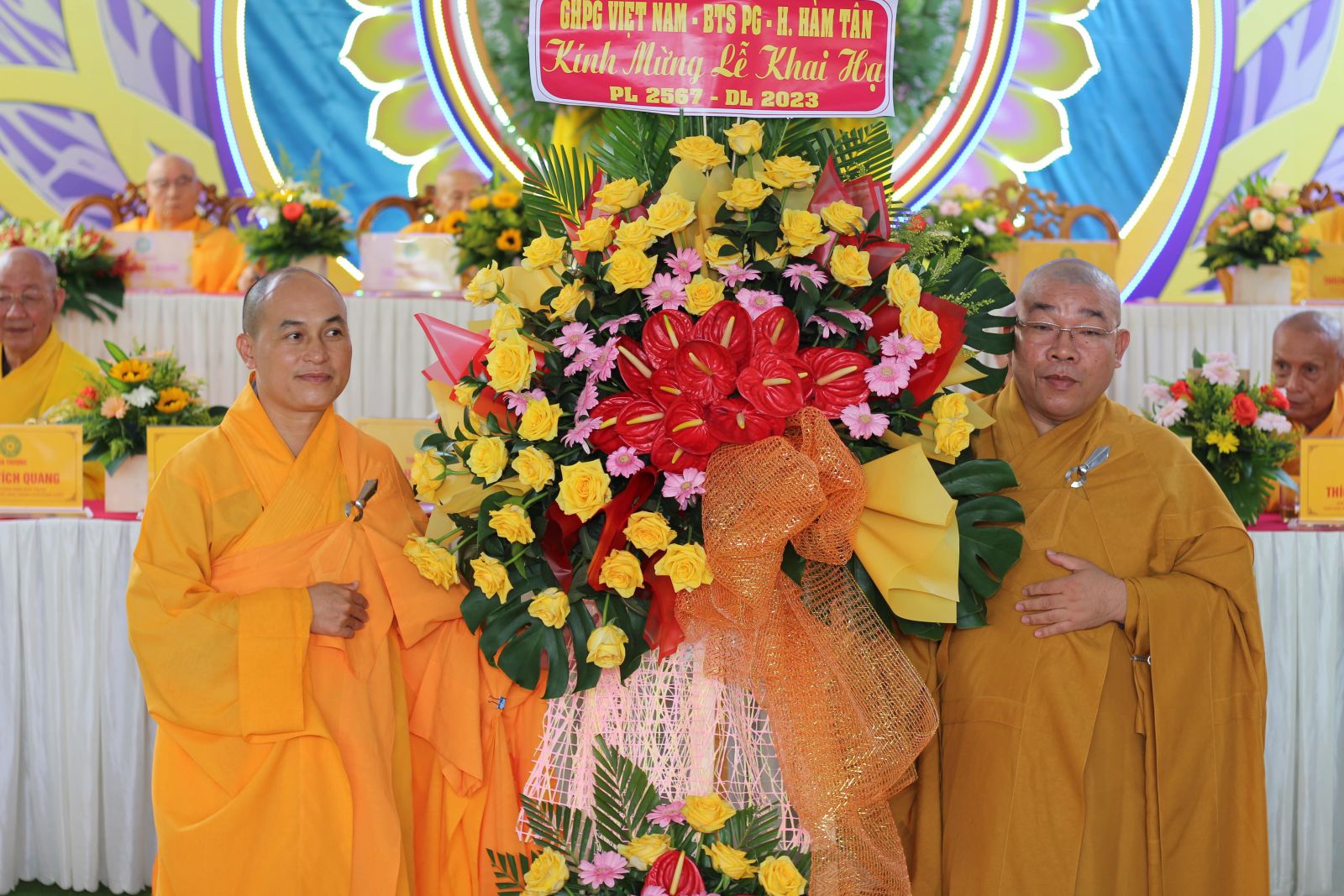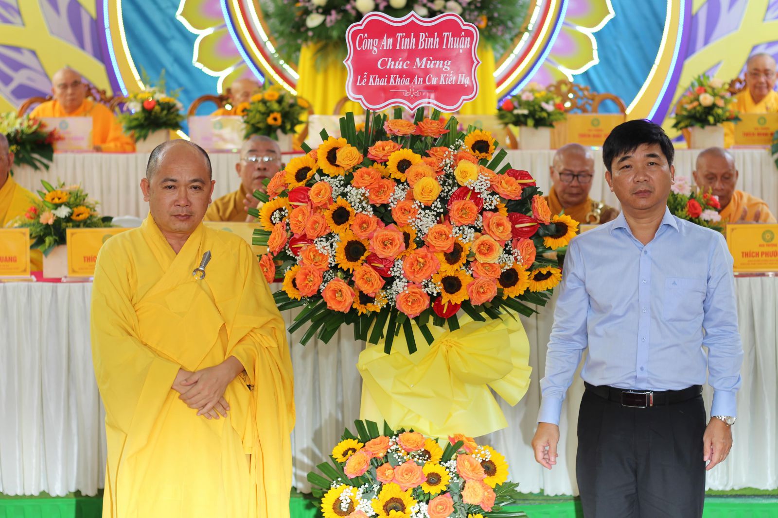 Chứng minh và tham dự buổi Lễ có Trưởng lão HT. Thích Giác Minh, Trưởng lão HT. Thích Minh Trí, Trưởng lão HT. Thích Ấn Chánh -  đồng Thành viên HĐCM, Chứng minh BTS GHPGVN tỉnh Bình Thuận; HT. Thích Minh Nhật – Ủy viên HĐTS, Trưởng BTS kiêm Trưởng Ban Tăng sự GHPGVN tỉnh Bình Thuận, Trưởng ban Tổ chức khóa An cư PL.2567; TT. Thích Thông Triêm – Ủy viên HĐTS, Phó trưởng Ban Thường trực BTS kiêm Trưởng Ban GDPG GHPGVN tỉnh; HT. Thích Trí Huệ, TT. Thích Đạt Ma Khế Định, TT. Thích Nguyên Sắc –Phó BTS Phật giáo tỉnh;  TT. Thích Pháp Huệ - Phó Trưởng BTS kiêm Trưởng Ban Hoằng pháp GHPGVN Tỉnh; ĐĐ. Thích Nguyên Nguyệt – Phó Trưởng Ban kiêm Chánh Thư ký BTS GHPGVN Tỉnh; HT. Thích Tích Quang - Chứng minh BTS Phật giáo TP. Phan Thiết; HT. Thích Phước Túc - Chứng minh BTS Phật giáo H. Tuy Phong; NT. Thích Nữ Dung Liên - Cố vấn Phân Ban Ni giới Tỉnh; NT. Thích Nữ Như Hải – UVTT BTS, Trưởng Phân Ban Ni giới Tỉnh; NS. Thích Nữ Diệu Minh – UVTT BTS, Phó Trưởng Ban Thường trực Phân Ban Ni giới Tỉnh; NT. Thích Nữ Như Mãn – Phó Trưởng Phân Ban Ni Giới Tỉnh; chư Tôn đức Tăng, Ni trong Thường trực BTS GHPGVN tỉnh; Chư tôn đức Thường trực BTS Phật giáo 10 Huyện/Thị/Thành phố trong Tỉnh; chư Tôn đức Tăng, Ni ban Chức sự các trường hạ và hơn 400 Tăng, Ni hành giả An cư trong tỉnh đồng tham dự.