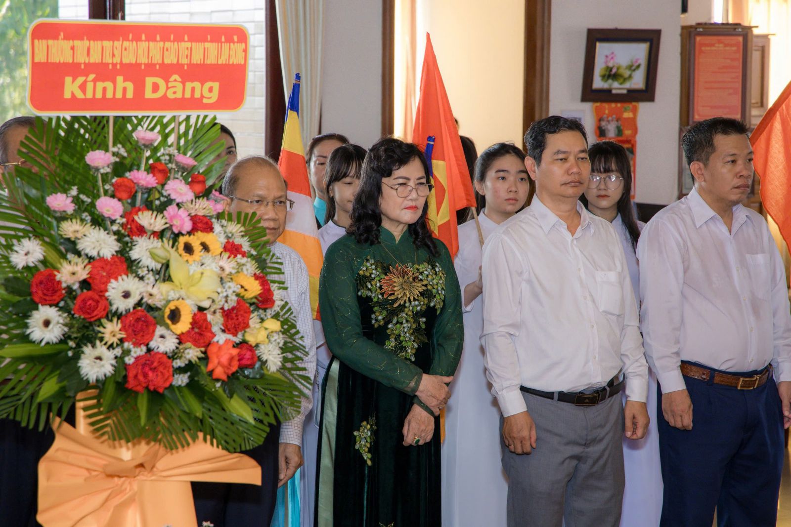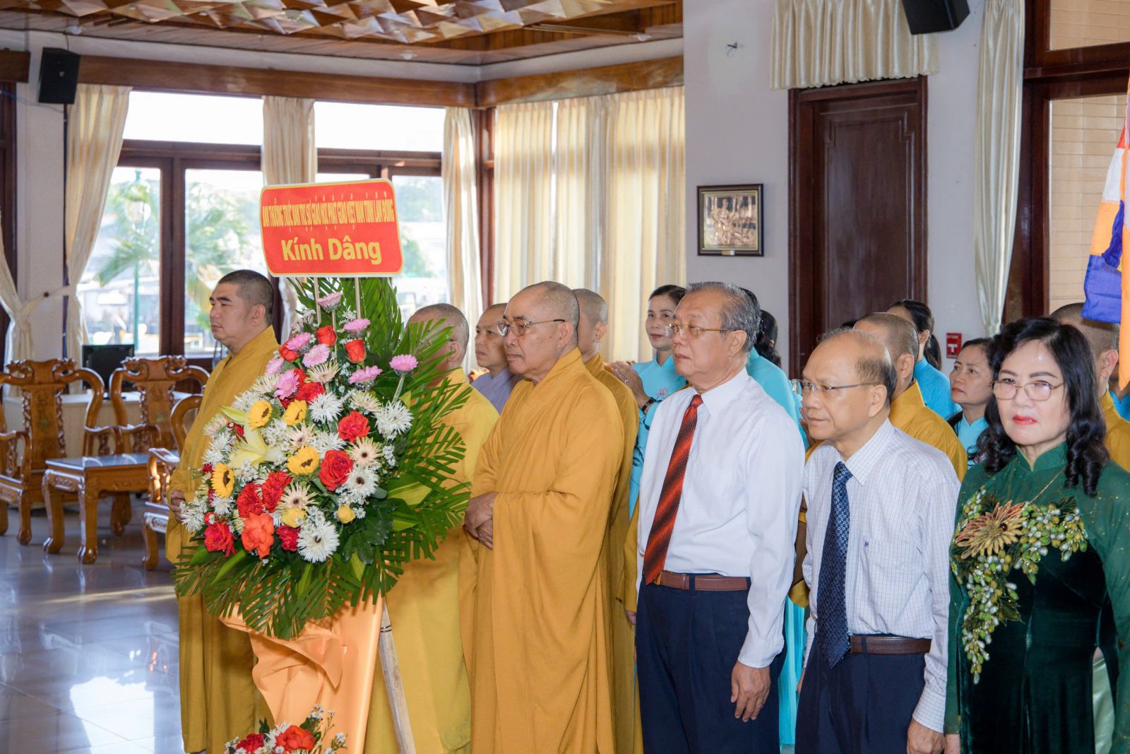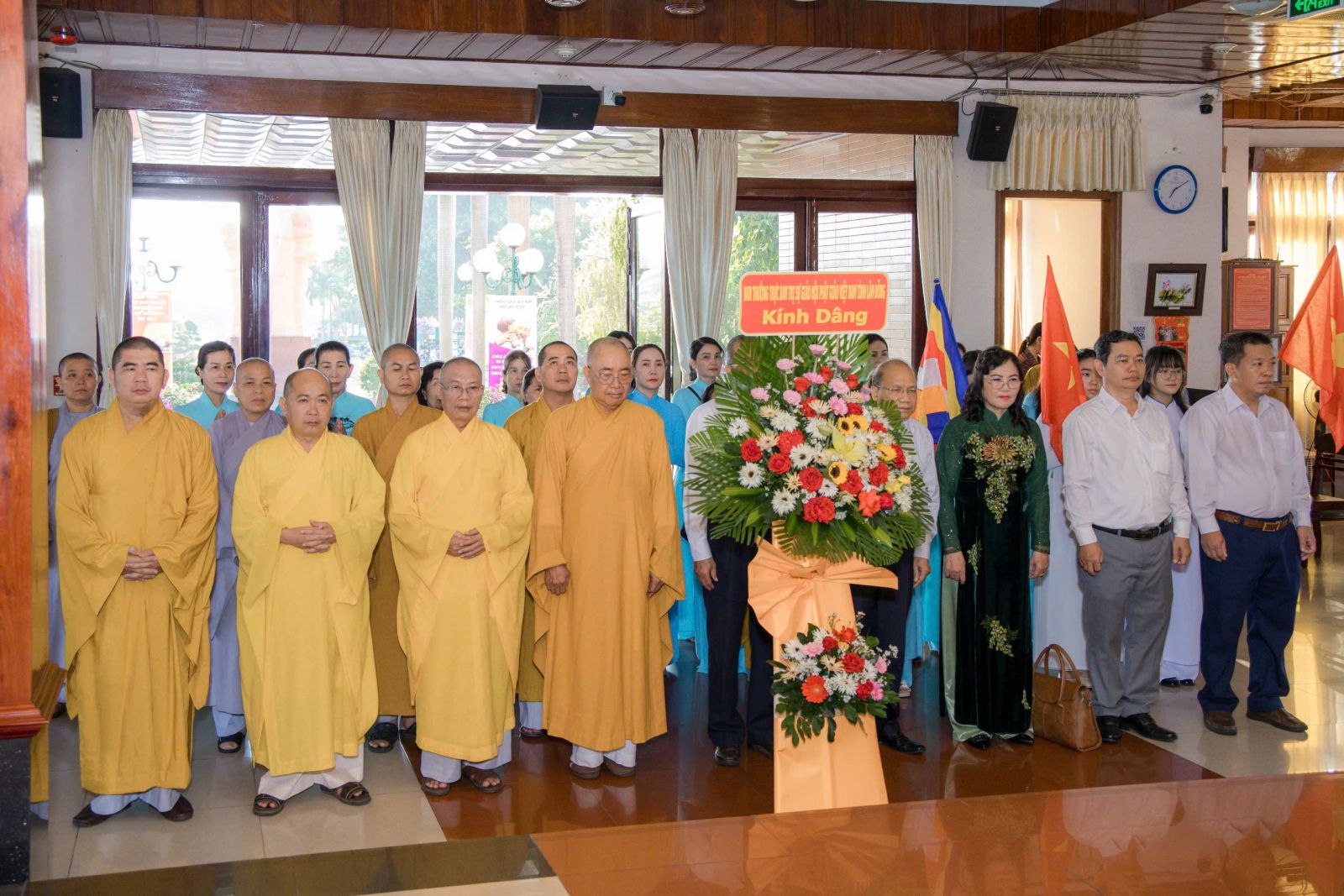 Phái đoàn Ban Trị sự Phật giáo tỉnh do Hòa thượng Thích Minh Nhật – Ủy viên Hội đồng Trị sự, Trưởng Ban Trị sự GHPGVN tỉnh Lâm Đồng dẫn đầu, cùng chư tôn đức Thường trực Ban Trị sự: Thượng tọa Thích Thông Triêm – Ủy viên HĐTS, Phó Trưởng Ban Thường trực BTS; Thượng tọa Thích Nguyên Sắc – Phó Trưởng BTS; Đại đức Thích Nguyên Nguyệt – Phó Trưởng BTS; Đại đức Thích Quảng Pháp – Phó Thư ký kiêm Chánh Văn phòng, cùng chư Tôn đức và đại diện Phật tử trong tỉnh tham dự.