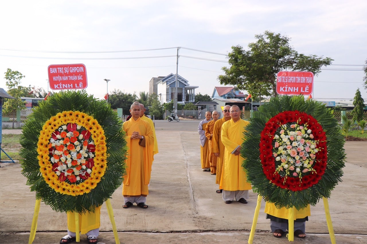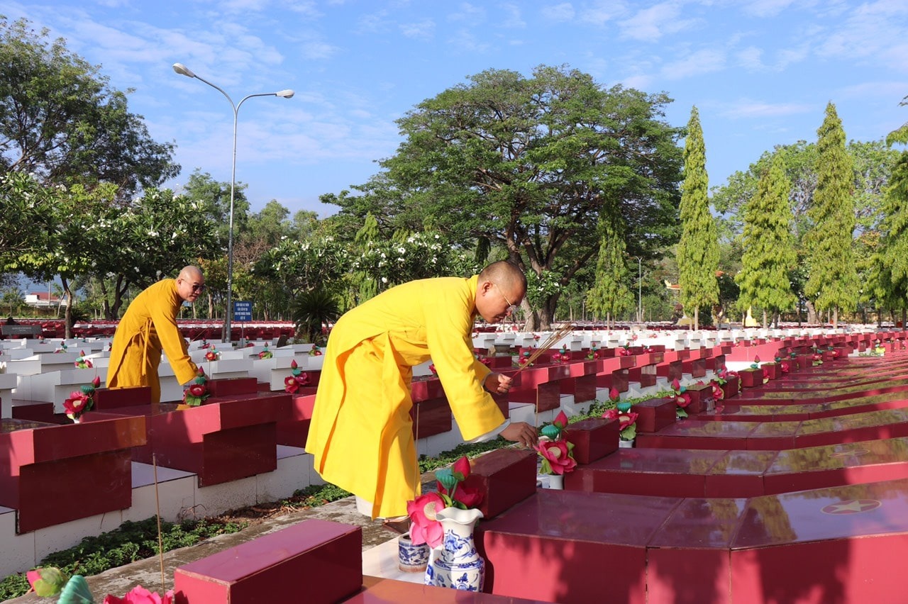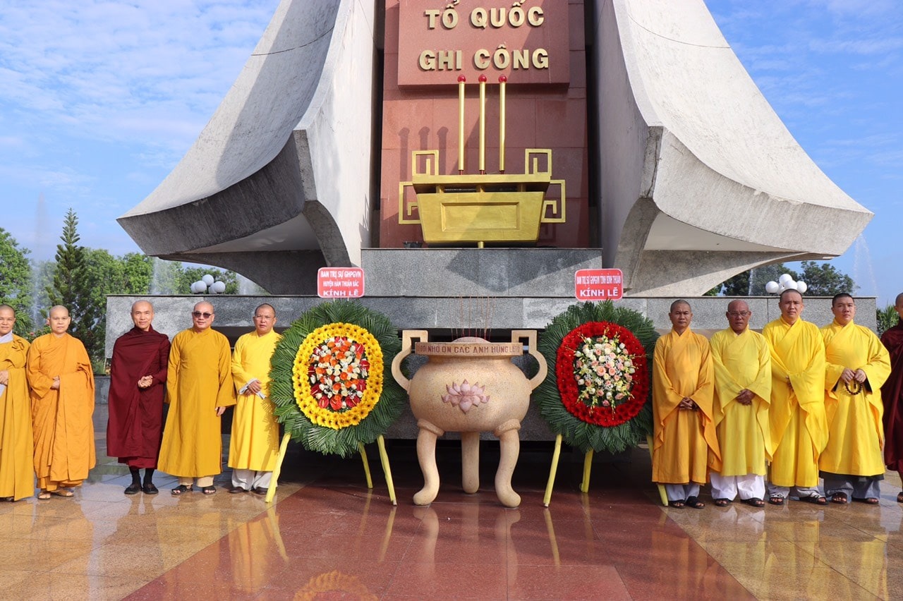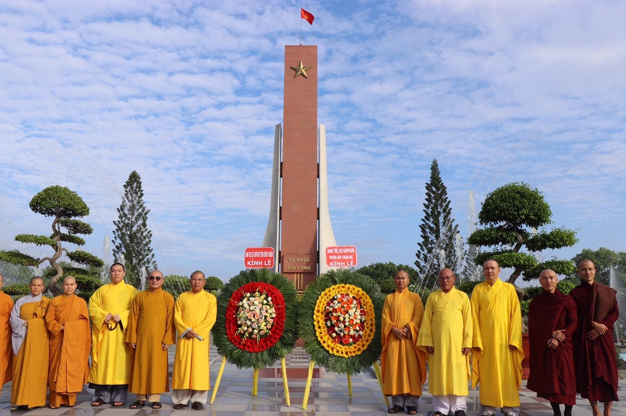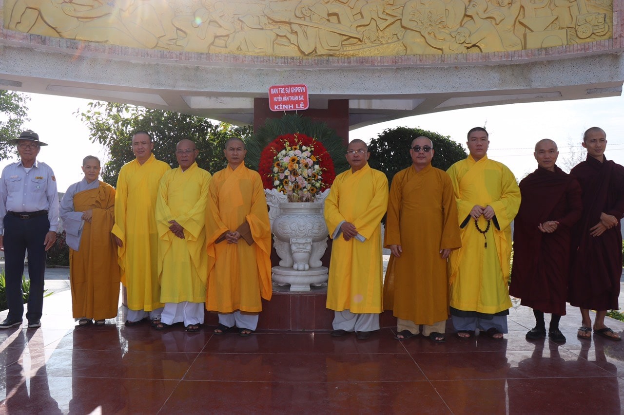 Phái đoàn thứ hai gồm: TT. Thích Quảng Cao – Trưởng Ban Từ thiện – xã Hội Phật giáo Tỉnh; TT. Thích Bổn Nghĩa, ĐĐ. Thích Nguyên Chánh - Uỷ viên Thường trực Ban Trị sự Phật giáo Tỉnh, cùng Chư Tôn đức Uỷ viên Ban Trị sự Phật giáo Tỉnh; Thường trực Ban Trị sự Phật giáo huyện Hàm Thuận Bắc. Đoàn đã đến dâng hương tưởng niệm tại Nghĩa Trang Liệt Sĩ Tỉnh Bình Thuận và Đài Tưởng Niệm Liệt Sĩ Huyện Hàm Thuận Bắc.