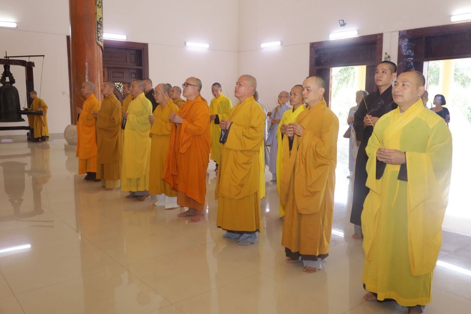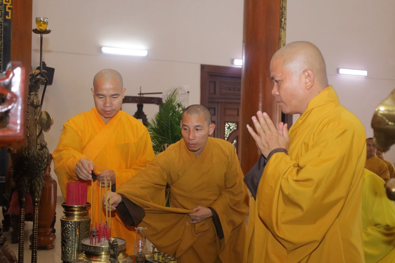 Phái đoàn thứ nhất gồm: Thượng toạ Thích Nguyên Sắc – Phó Trưởng Ban Trị sự Phật giáo Tỉnh, Trưởng Ban Trị sự Phật giáo TP. Phan Thiết; Thượng toạ Thích Nguyên Chơn - Trưởng Ban Nghi lễ Phật giáo Tỉnh; Thượng toạ Thích Giác Viễn - Uỷ viên Thường trực BTS Phật giáo Tỉnh, cùng Chư Tôn đức Uỷ viên Ban Trị sự Phật giáo Tỉnh; Thường trực Ban Trị sự Phật giáo TP. Phan Thiết và huyện Hàm Thuận Nam. Đoàn đã đến thắp hương tưởng niệm tại Nhà tưởng niệm Liệt sĩ TP. Phan Thiết.