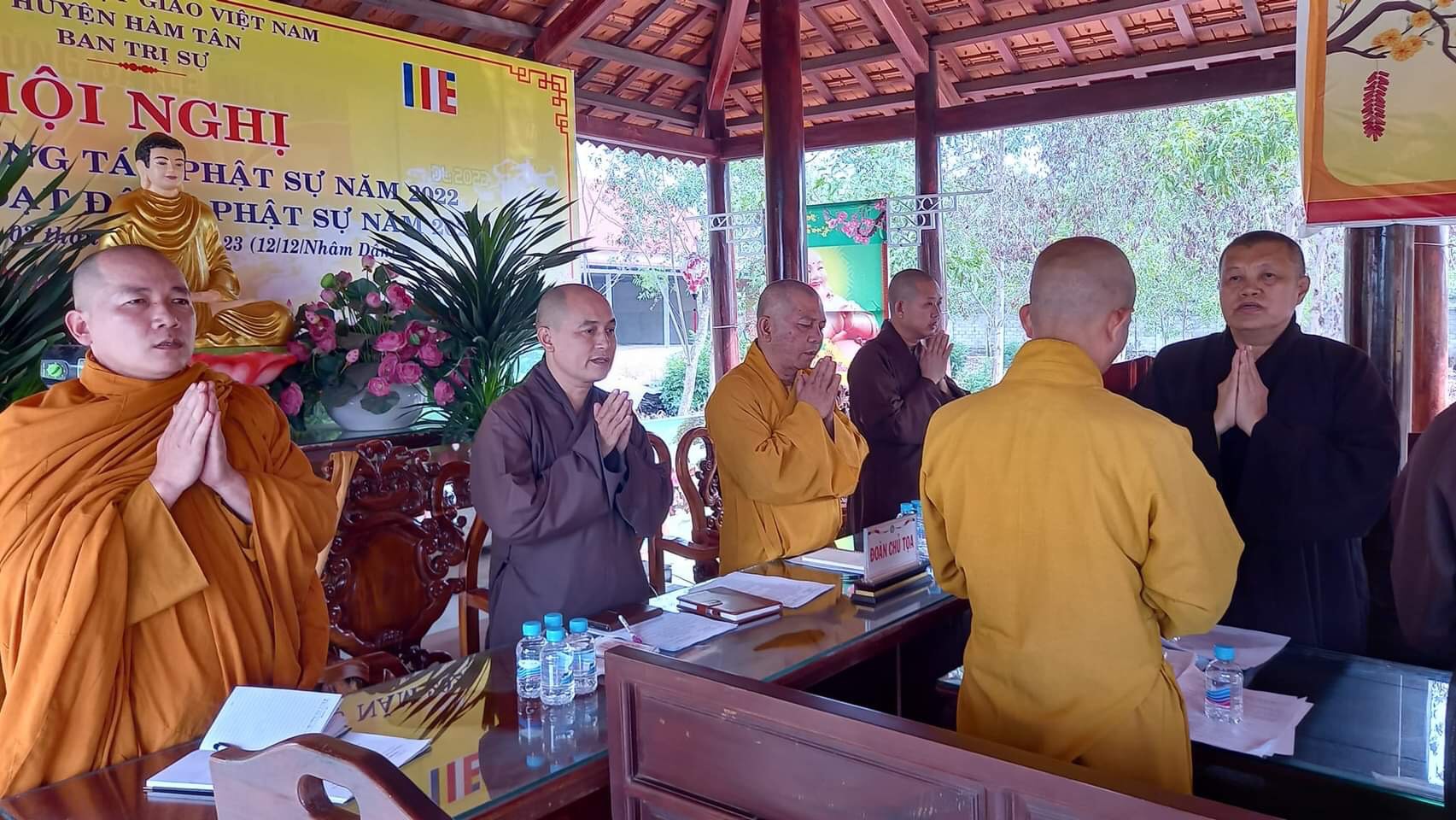 Sáng ngày 21/04/2023 (nhằm ngày 01/3/ Quý Mão) tại Văn phòng Ban Trị sự Huyện (Tổ đình Quảng Ân Tự, TT. Tân Nghĩa ) Ban thường trực BTS PG huyện Hàm Tân tổ chức phiên họp triển khai dự kiến công tác tổ chức Phật đản - An cư Kiết hạ PL. 2567 – DL. 2023.