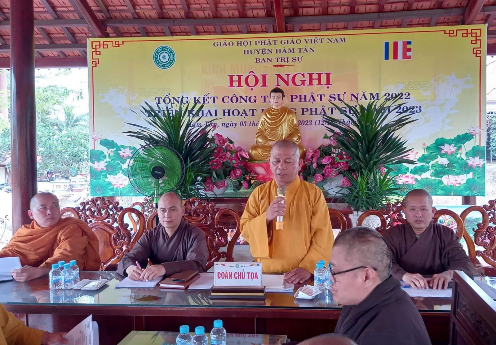 Sau lời phát biểu khai mạc của Đại đức Trưởng Ban Trị sự, cuộc họp đã lắng nghe Thông tư hướng dẫn Tổ chức Đại lễ Phật đản và An cư Kiết hạ PL. 2567 của HĐTS và BTS Phật giáo Tỉnh Bình Thuận. Chư Tôn đức đã thảo luận và thống nhất chương trình cụ thể như sau: