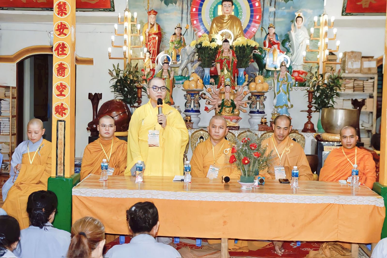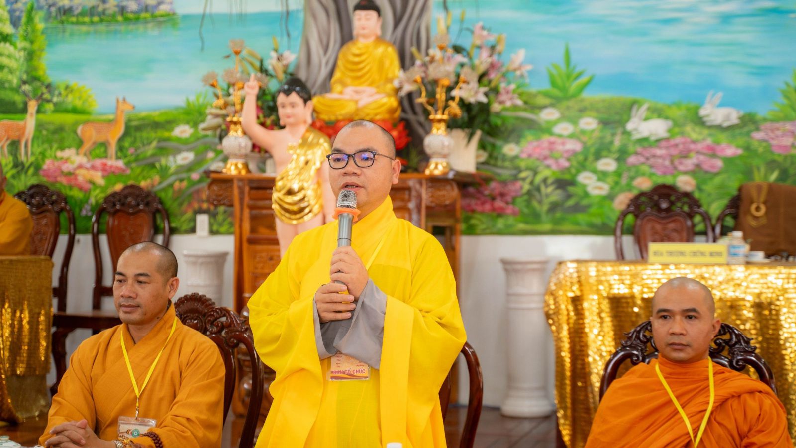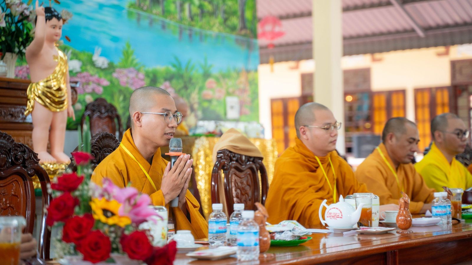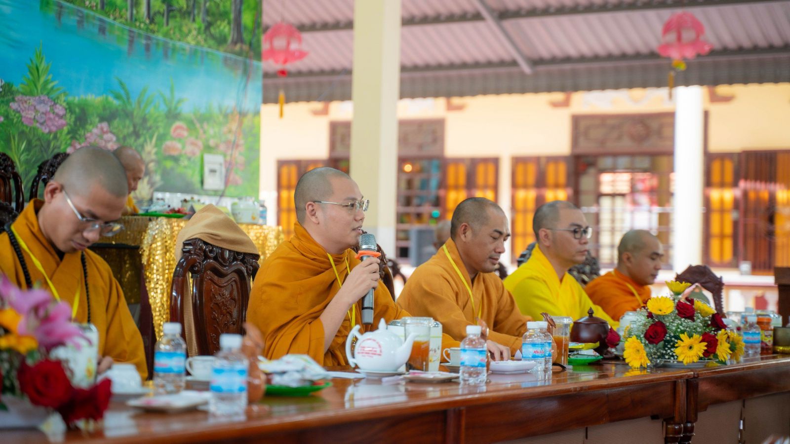 Sau lời Phát biểu, Thượng tọa Trưởng đoàn đã chia sẻ thời pháp ngắn với chủ đề: "Xây dựng Tịnh Độ tại nhân gian", giúp quý tu sinh có niềm vững chắc với Tông chỉ Tịnh Độ, nhận diện sâu sắc để có chánh kiến, lìa xa đời sống tà kiến; tiếp theo đó, chư Tôn đức Ban Hoằng Pháp PG tỉnh đã lần lượt chia sẻ pháp học, pháp hành, kinh nghiệm vận dụng lời dạy của Đức Phật trong đời sống hằng ngày.