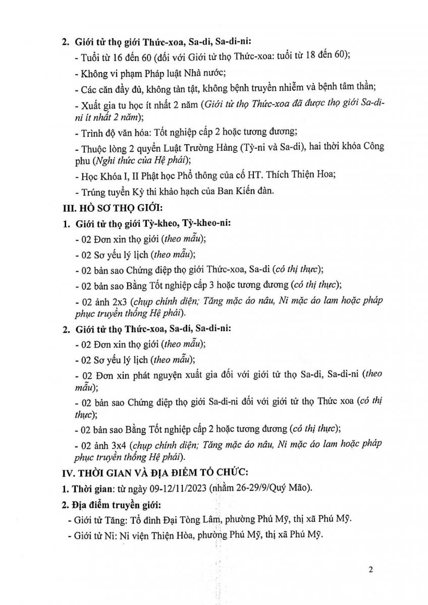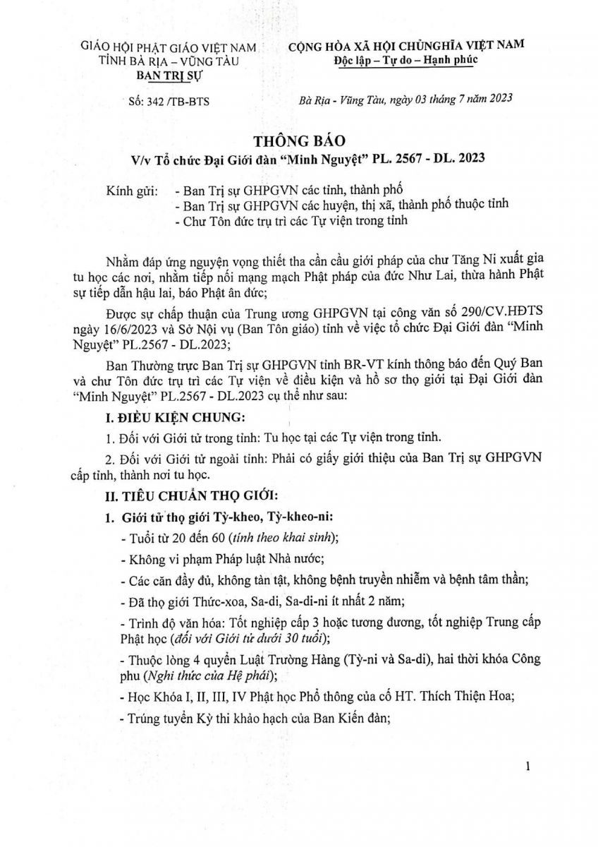 Giới tử xin thọ giới liên hệ trực tiếp Văn phòng Ban Trị sự tỉnh (chùa Từ Quang) để nhận hồ sơ xin thọ giới được phát miễn phí hoàn toàn, hoặc in hồ sơ theo biểu mẫu tại địa chỉ: www.phatgiaobariavungtau.org.vn