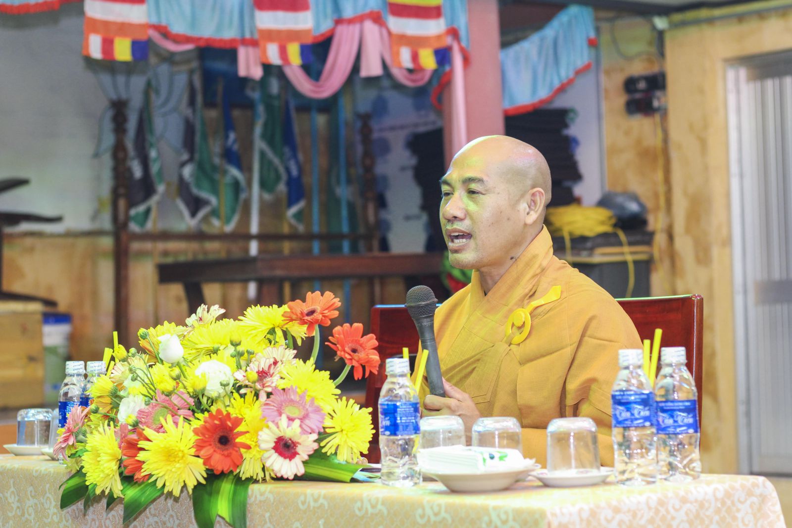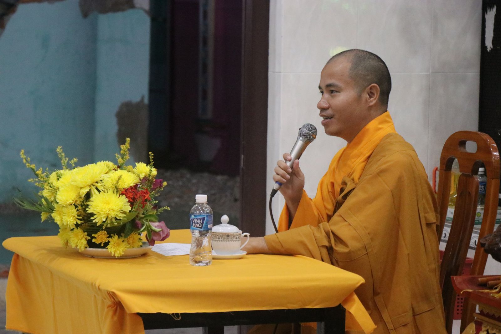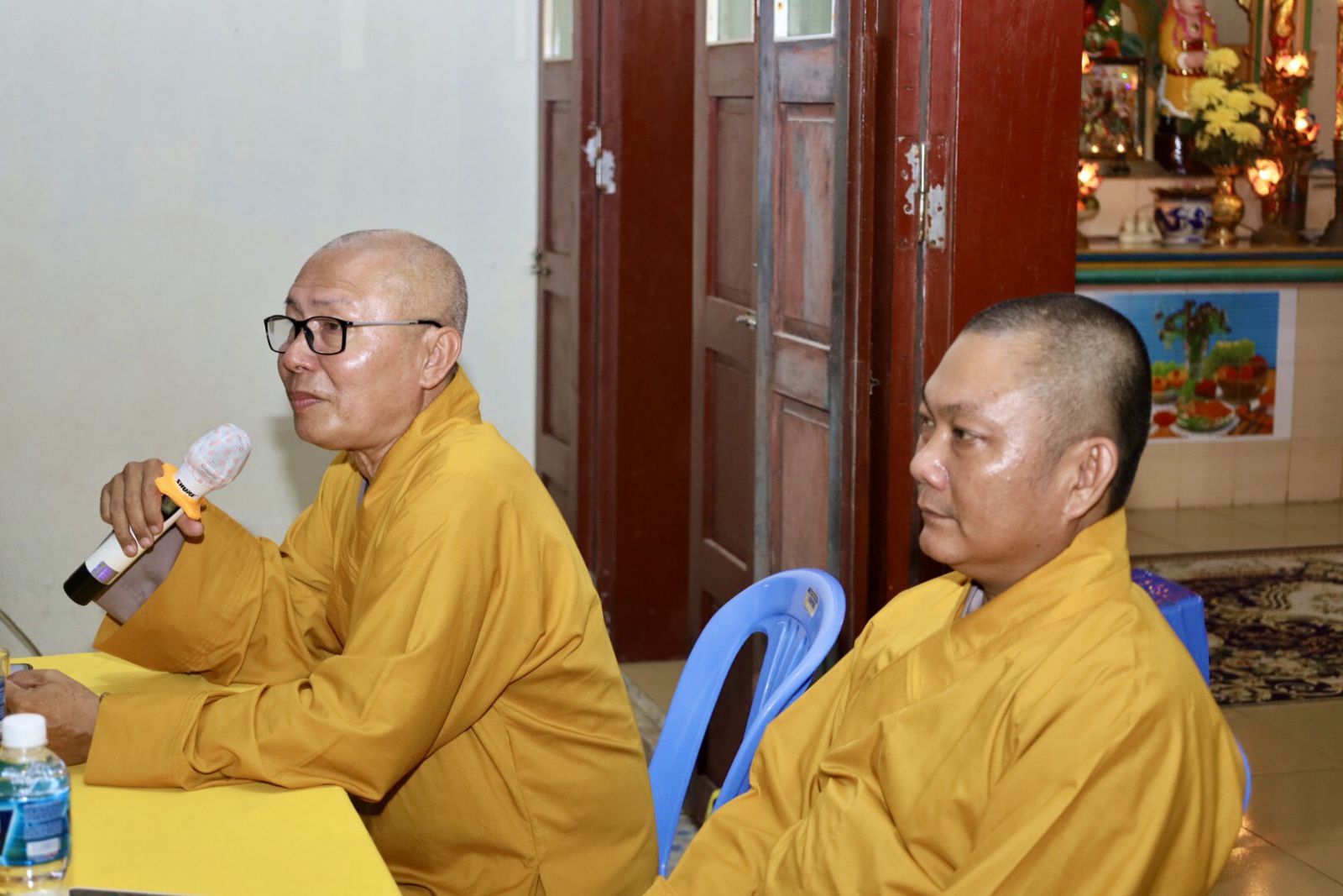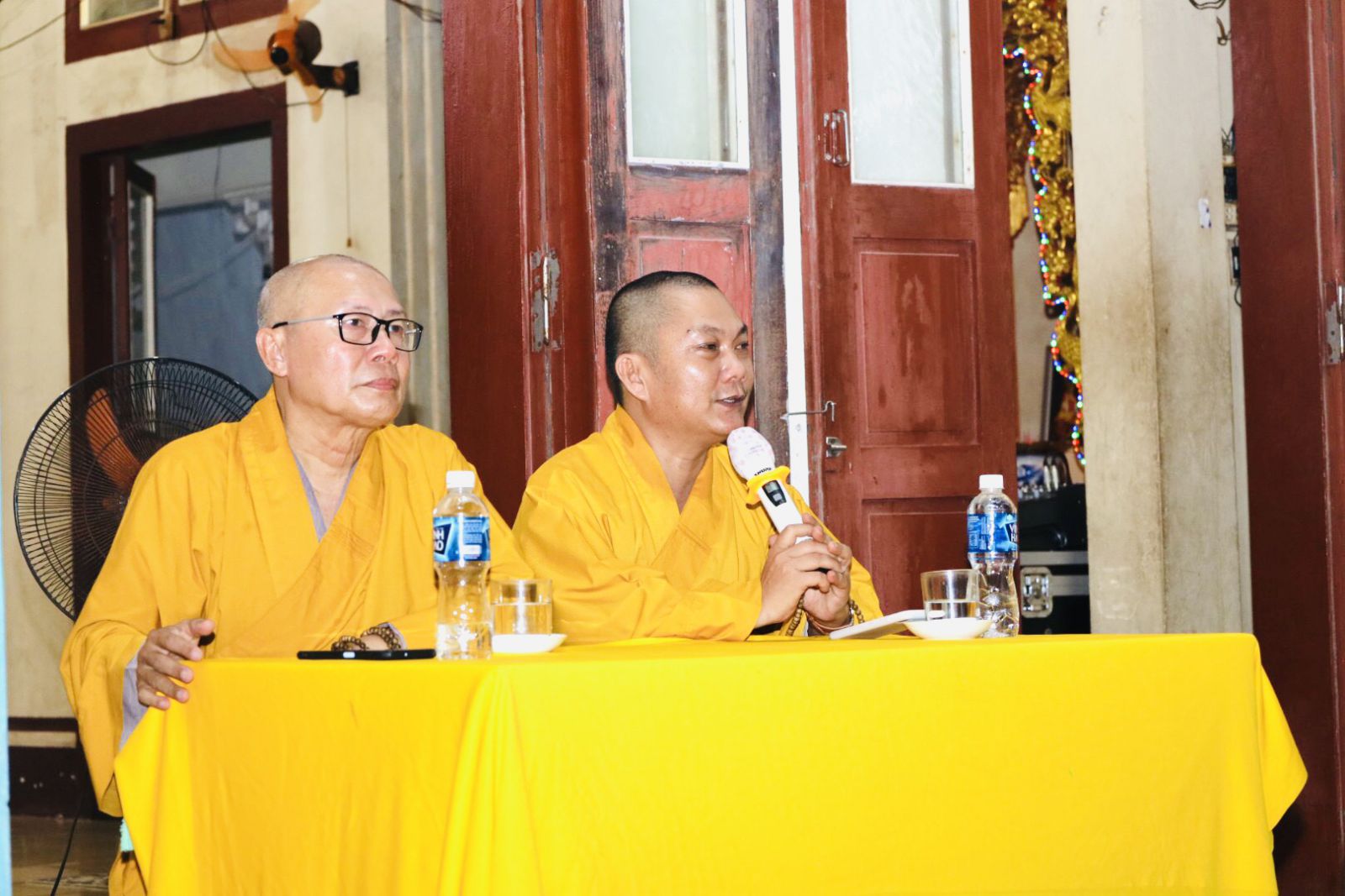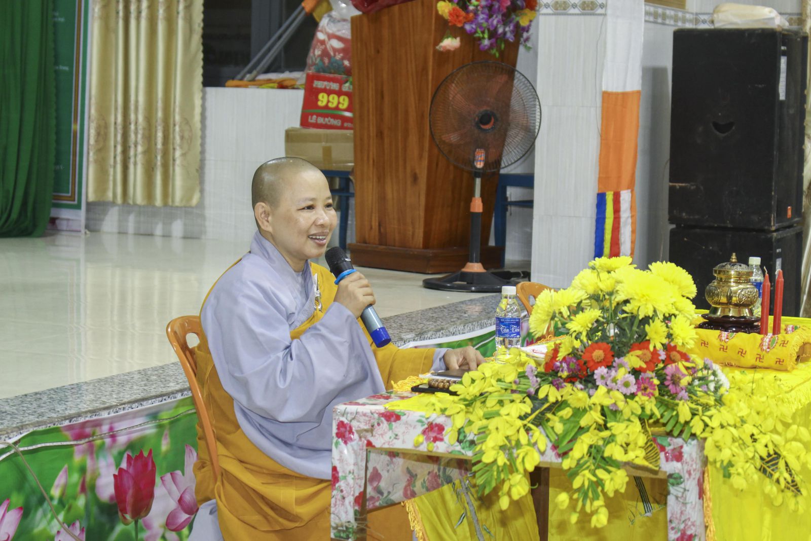 HT. Thích Trí Huệ - Phó Trưởng Ban Trị sự PG Tỉnh, TT. Thích Nhuận Thông - UVTT Ban Trị sự, Trưởng Ban Văn hoá Phật giáo Tỉnh thuyết giảng tại Chùa Liên Hoa (xã Tam Thanh)