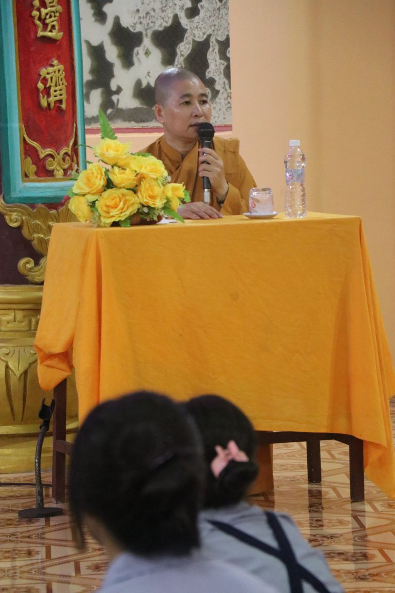 Sư cô Thích Nữ Hiền Liên - UVTT Ban Hoằng pháp PG Tỉnh thuyết giảng tại chùa Linh Bửu (xã Ngũ Phụng)