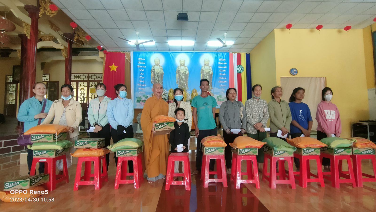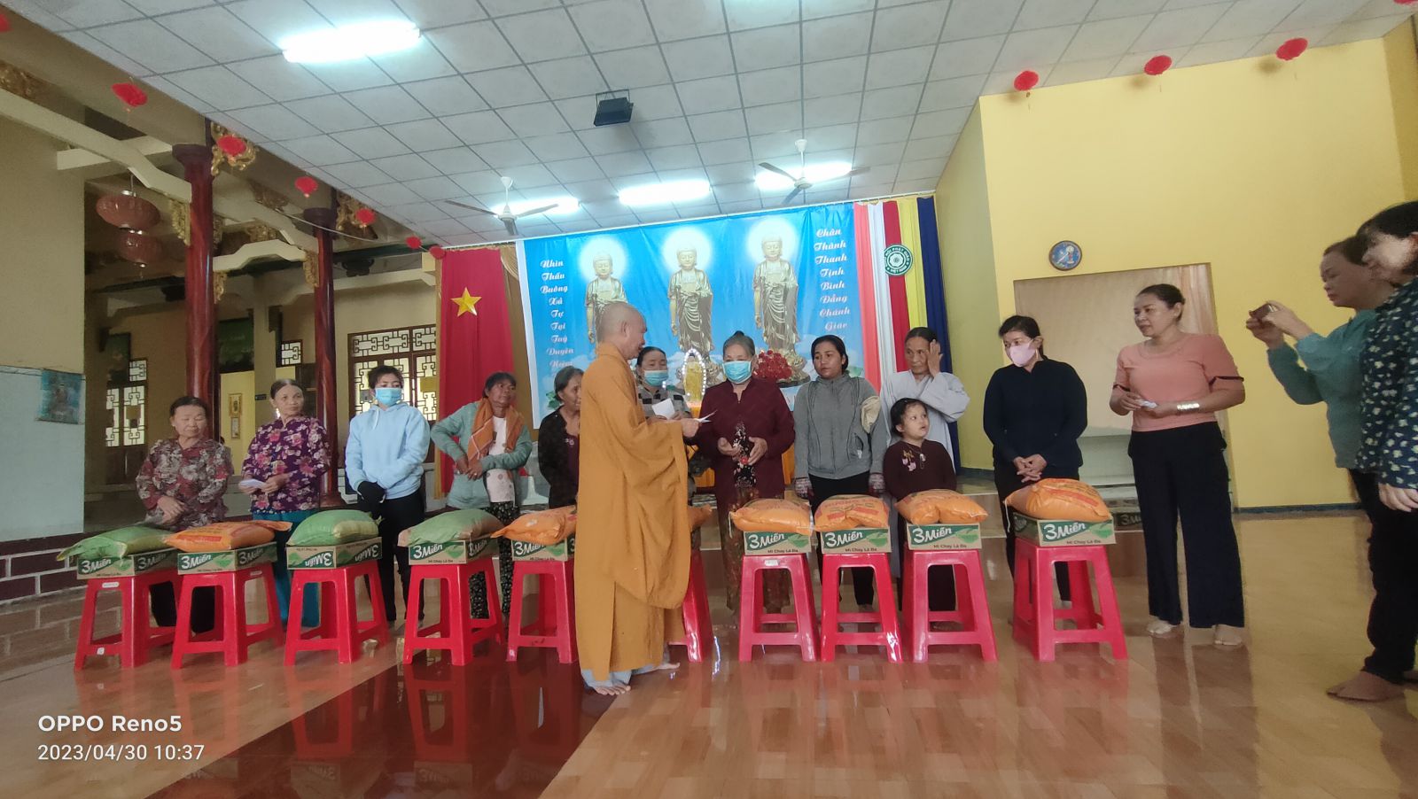 Nhân ngày giải phóng miền Nam, thống nhất đất nước (30/4/1975 – 30/04/2023), sáng ngày 30/4 vừa qua, ĐĐ. Thích Tâm Trí – UV BTS Phật giáo Tỉnh; Phó Trưởng Ban TT-XH Phật giáo Tỉnh, Trưởng Ban Kinh tế - Tài chánh Phật giáo Huyện Tánh Linh, trụ trì chùa Quan Âm cùng chư Tăng và mạnh thường quân trao tặng 150 phần quà cho bà con khó khăn tại địa phương.