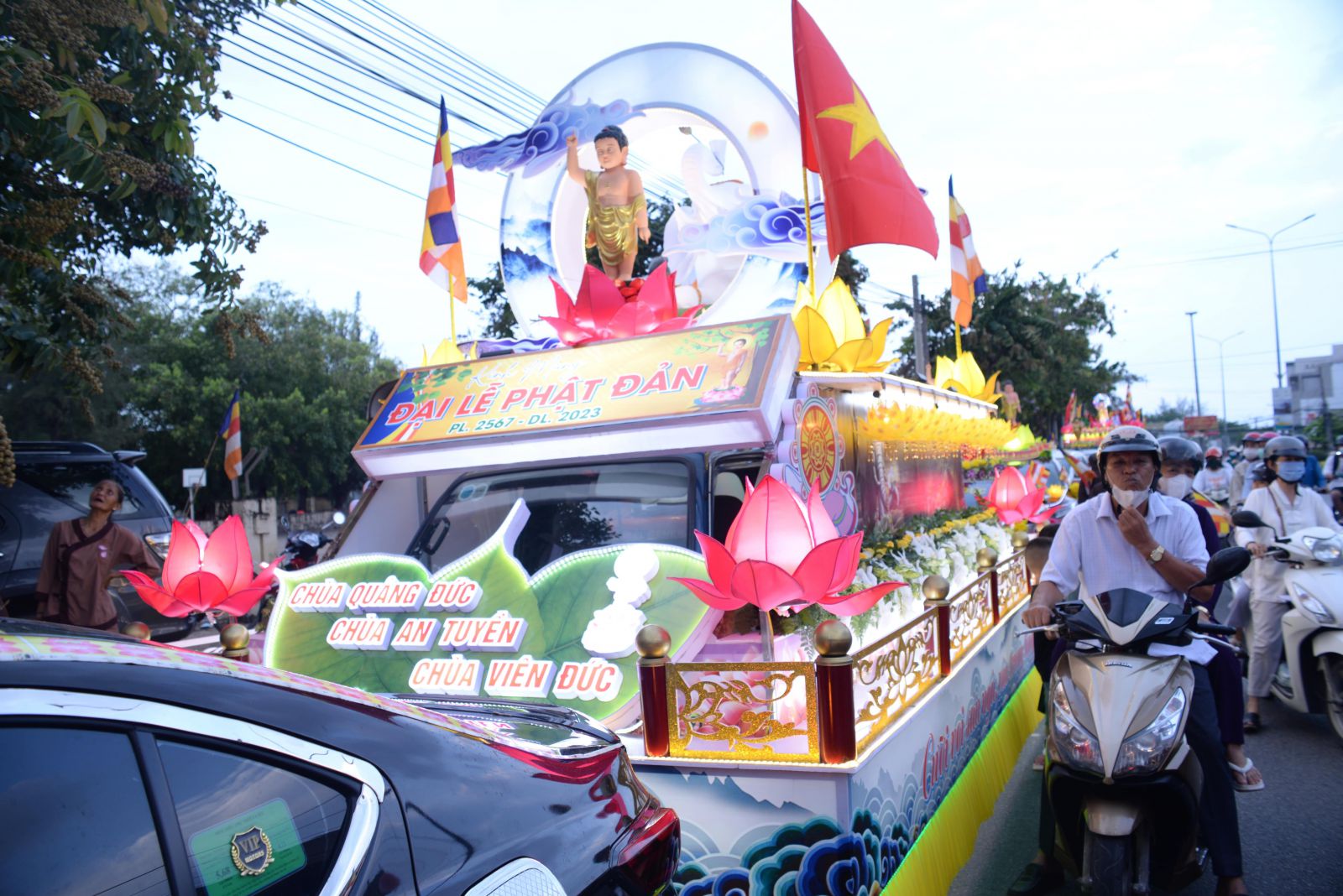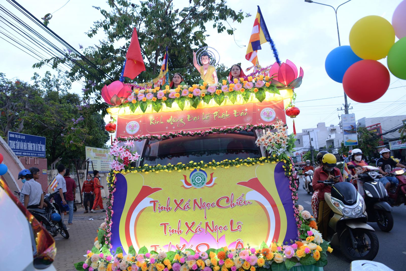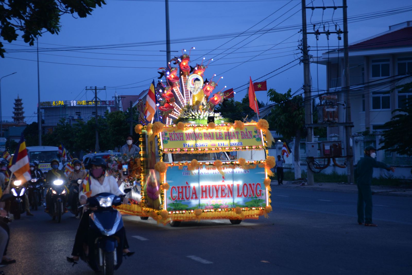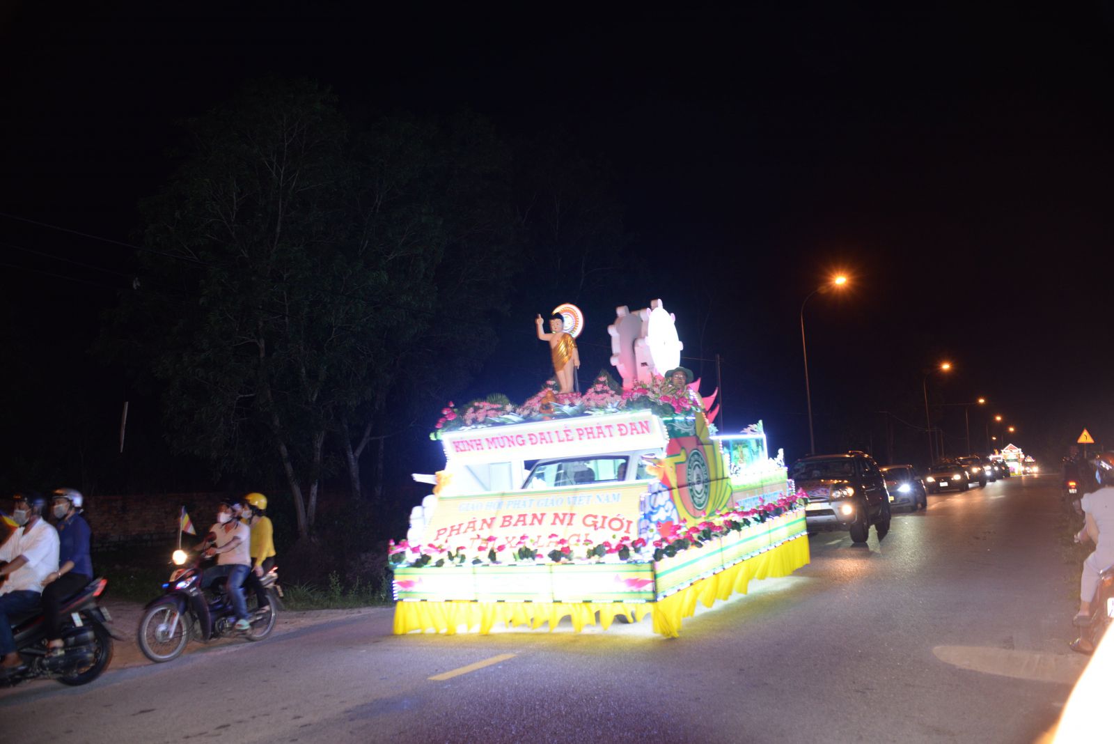 Đoàn xe diễu hành bắt đầu là văn phòng Ban Trị sự, đi qua các tự viện dọc quốc lộ…và điểm kết thúc là Tịnh xá Ngọc Chiếu. đoàn xe đi, về khoảng 30km. Tại các tuyến đường đoàn diễu hành đi qua, người dân 2 bên đường đổ ra chiêm ngưỡng với niềm hân hoan đón chào trong tháng Tư thiêng liêng của người con Phật.