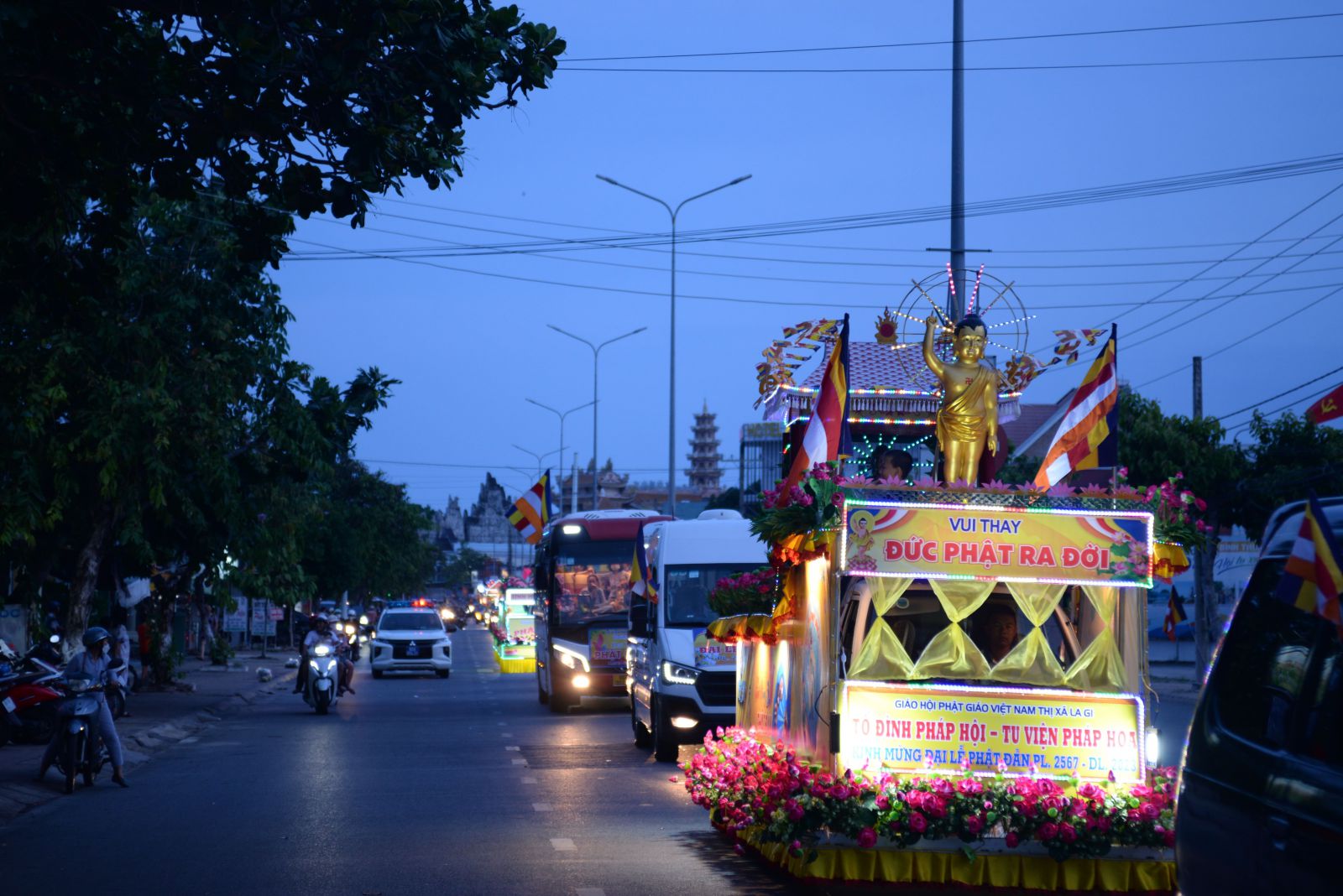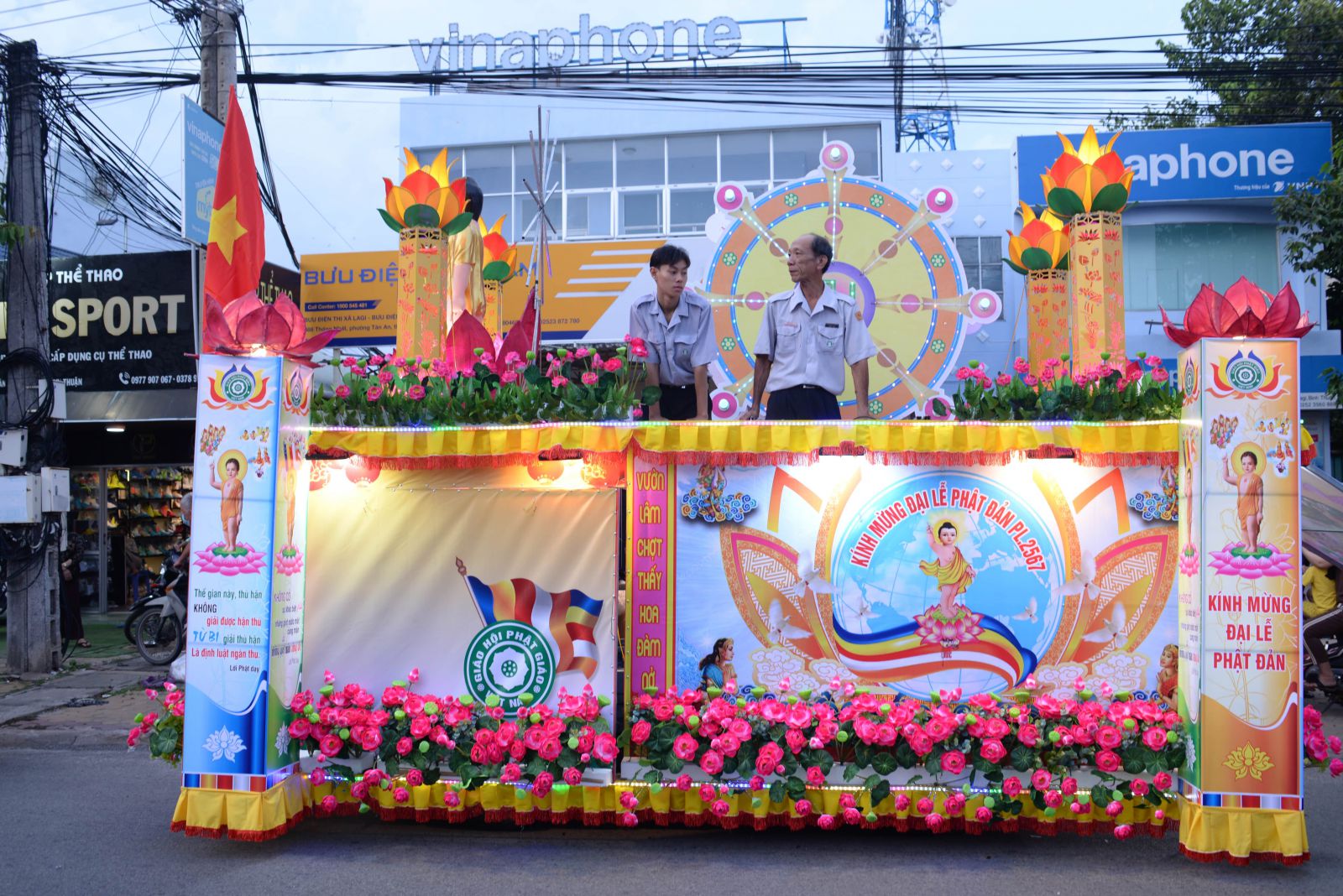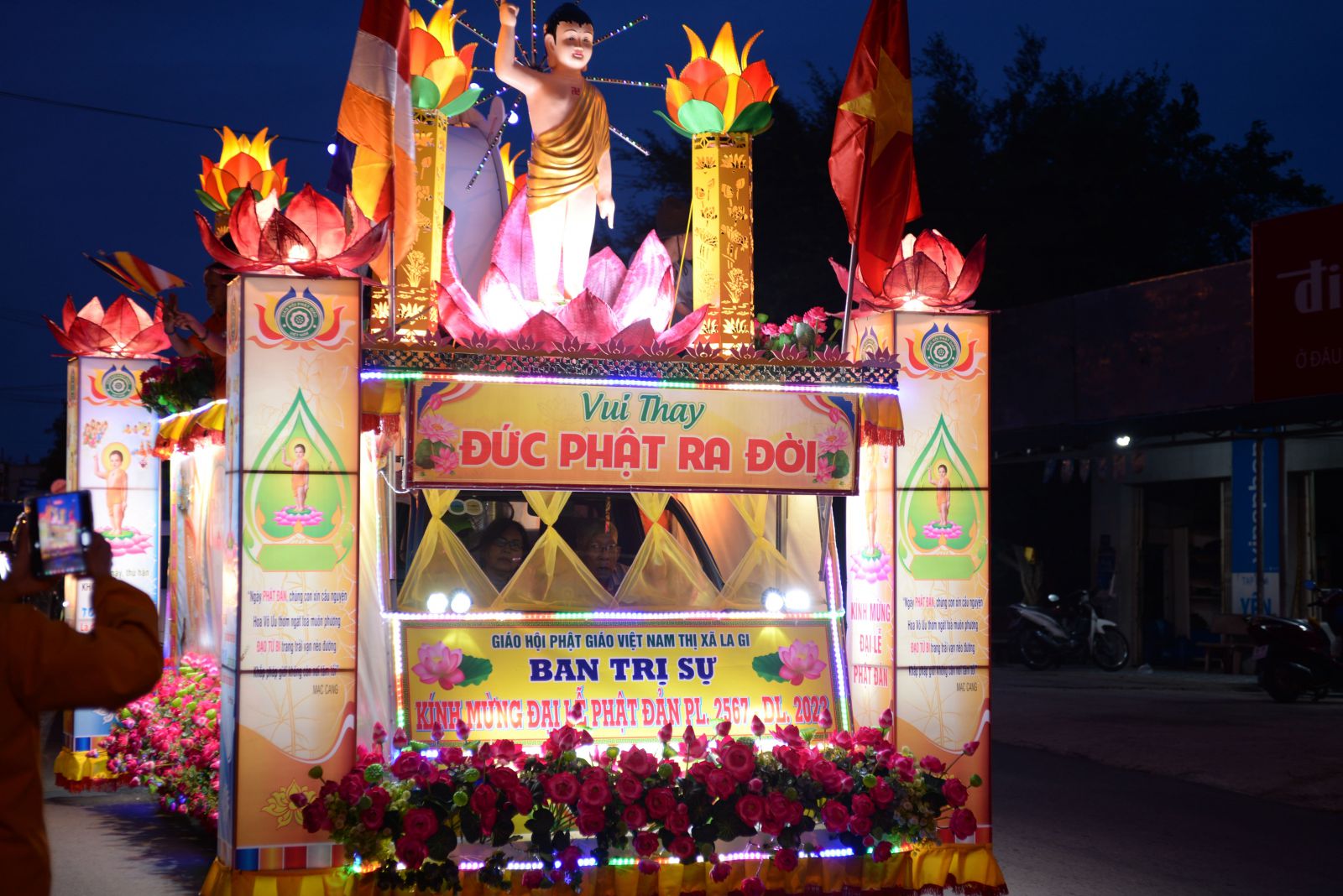 Chiều mùng 13-4-Quý Mão (nhằm ngày 31-5), Ban Trị sự GHPGVN thị xã La Gi đã tổ chức diễu hành xe hoa trên các cung đường thuộc địa bàn thị xã để lan tỏa lễ thông điệp Phật đản đến mọi người con phật.