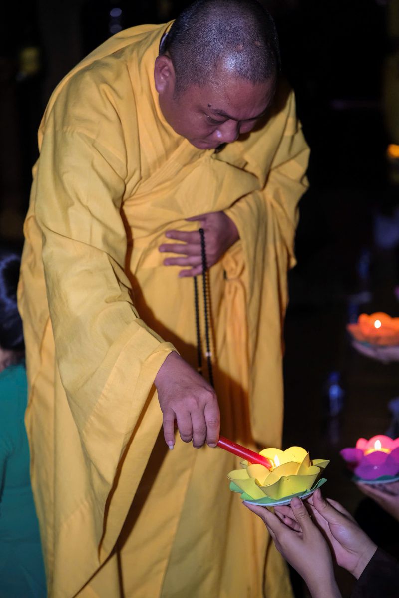 Đêm Hoa Đăng diễn ra trong không gian trang nghiêm với ánh sáng lung linh từ hàng trăm ngọn đèn hoa đăng, biểu tượng cho ánh sáng trí tuệ, lòng thành kính và tình cảm dâng lên cha mẹ, các bậc tiền nhân cũng như cầu nguyện quốc thái dân an.