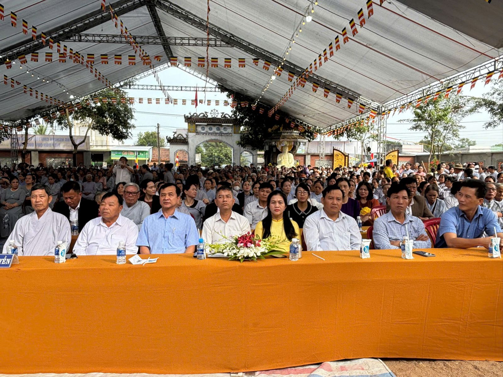 Đại diện các cấp lãnh đạo chính quyền địa phương tham dự có ông Nguyễn Văn Huý, Tỉnh ủy viên, Bí thư huyện ủy; bà Nguyễn Thị Cho, Huyện uỷ viên, Phó Chủ tịch UBND huyện; ông Nguyễn Ngọc Việt, Huyện ủy viên, Phó Trưởng Công an Huyện; ông Trần Thanh Sơn, Huyện ủy viên, Chính trị viên Ban Chỉ huy Quân sự huyện; các ông bà đại diện lãnh đạo các cơ quan ban ngành huyện Đức Linh, TT. Đức Tài, xã Nam Chính, cùng đông đảo bà con nhân dân Phật tử xa gần đã đến tham dự.