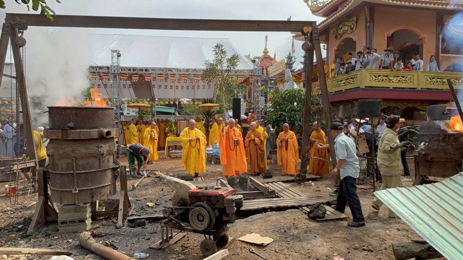 Chư Tôn đức cử hành nghi thức An vị Phật và rót Đại hồng chung