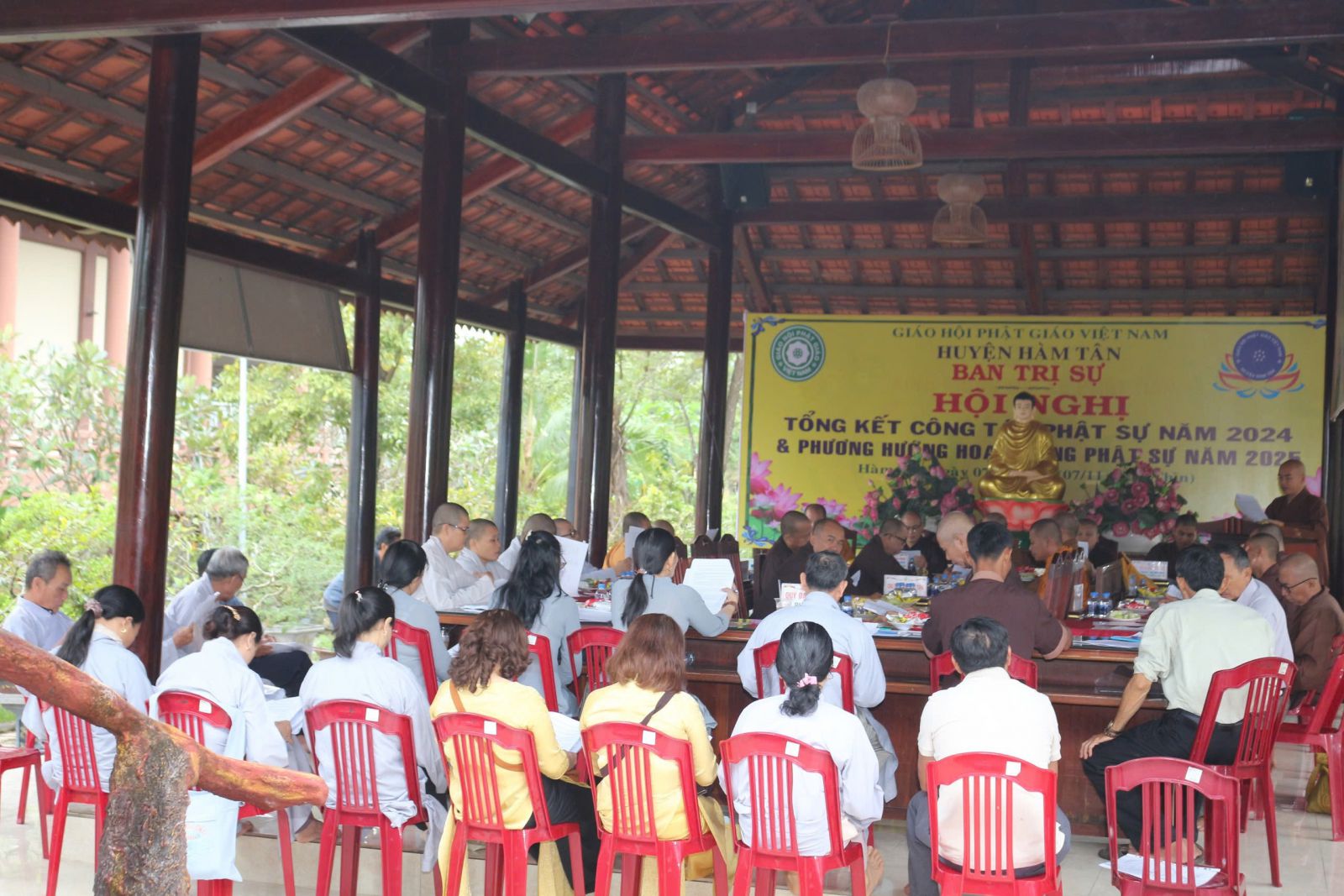 Tham dự và chủ tọa có TT. Thích Đạt Ma Kế Định, Phó BTS GHPGVN tỉnh Bình Thuận, Trưởng BTS GHPGVN huyện Hàm Tân; ĐĐ. Thích Nguyên Phúc, UV.BTS PG tỉnh, Phó ban Thường trực BTS PG huyện; ĐĐ. Thích Giác Tầm, Phó BST PG huyện; cùng chư tôn đức Tăng - Ni Ban Thường trực, chư tôn đức Tăng - Ni và Phật tử đại diện của 28 cơ sở tự viện trong toàn huyện.