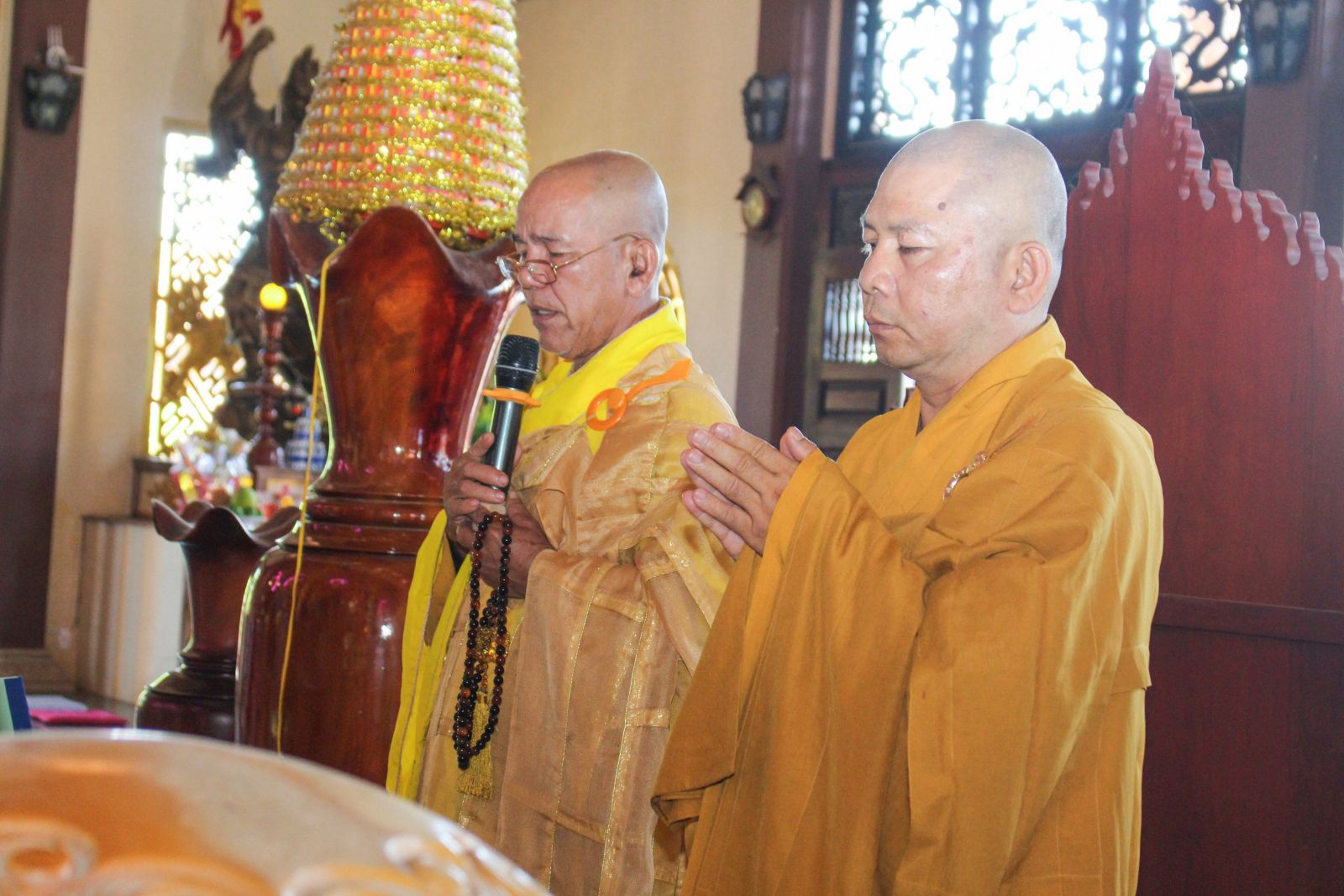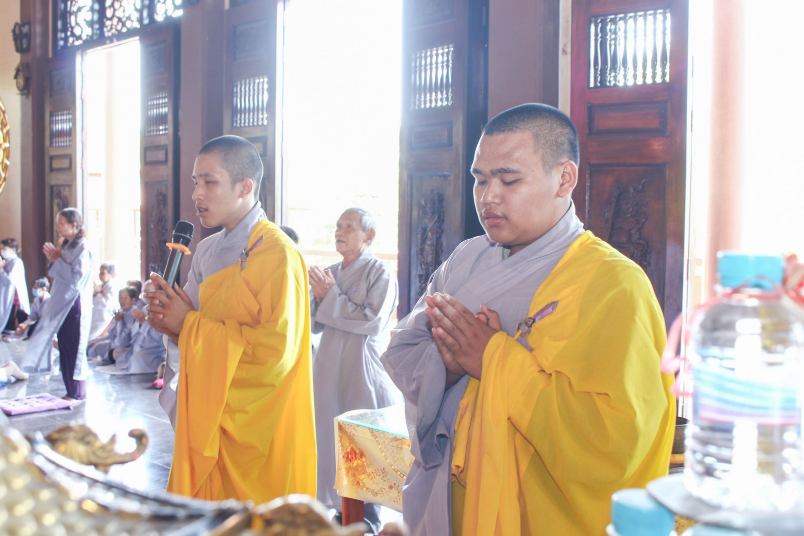 Sau khi đảnh lễ Tam Bảo, Đại đức Thích Nguyên Quả – UV BTS GHPGVN Tỉnh, Phó Ban kiêm Chánh Thư ký BTS Phật giáo Huyện đã thay Tăng trùng tuyên lại Giới kinh.