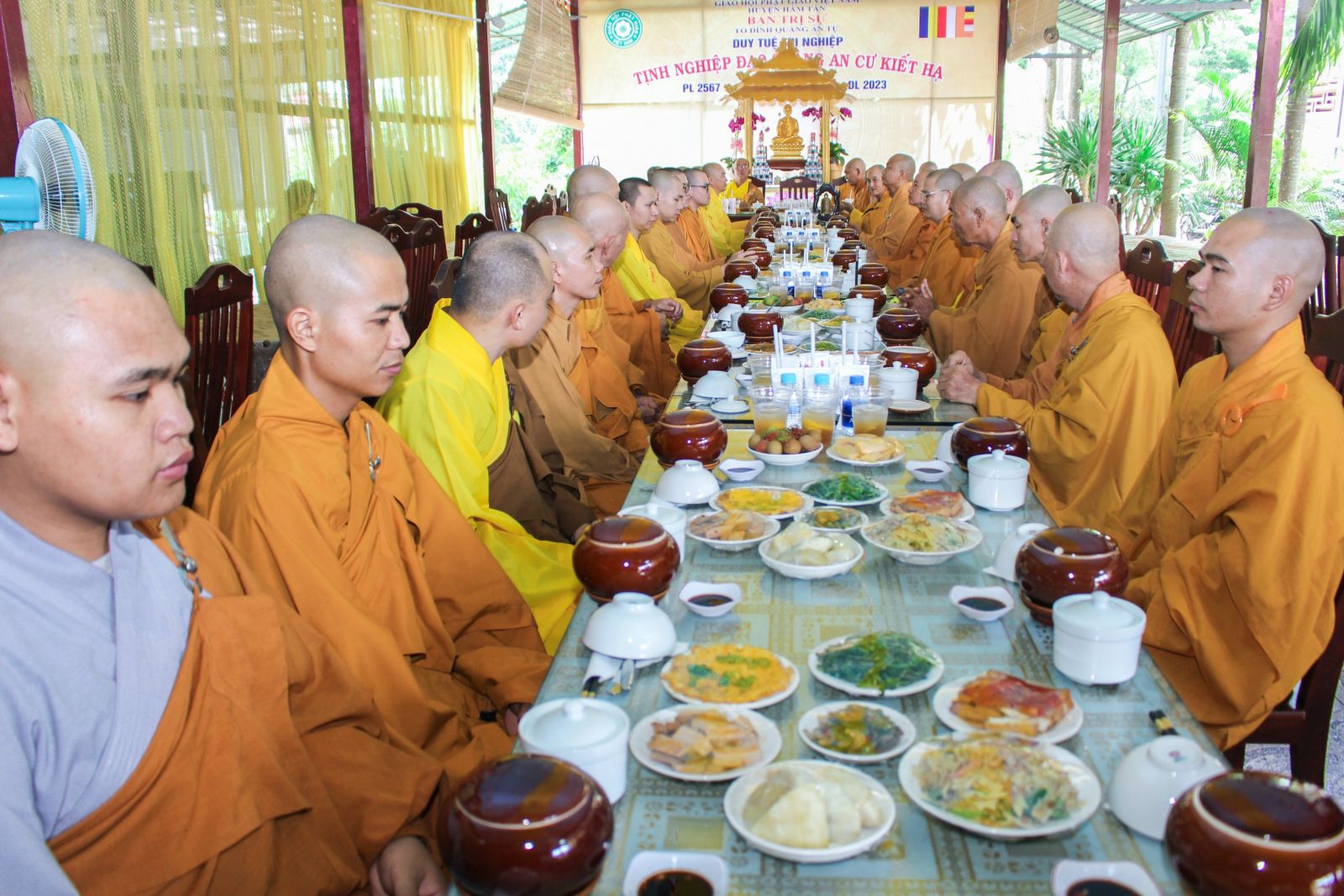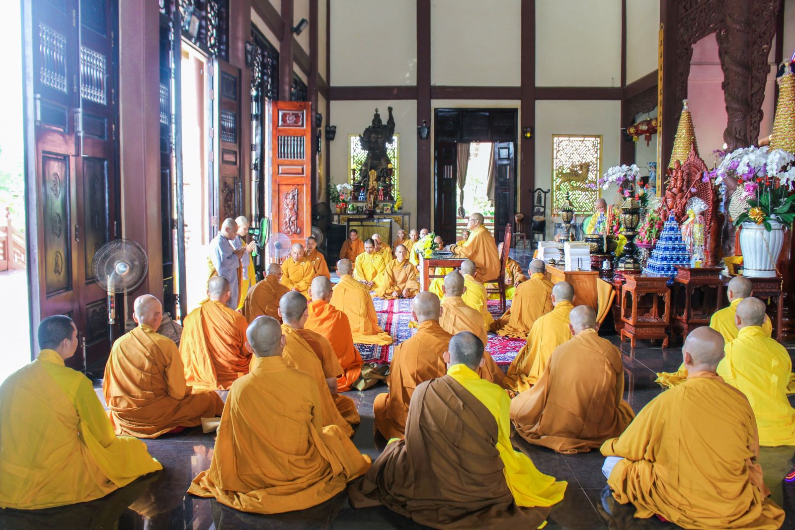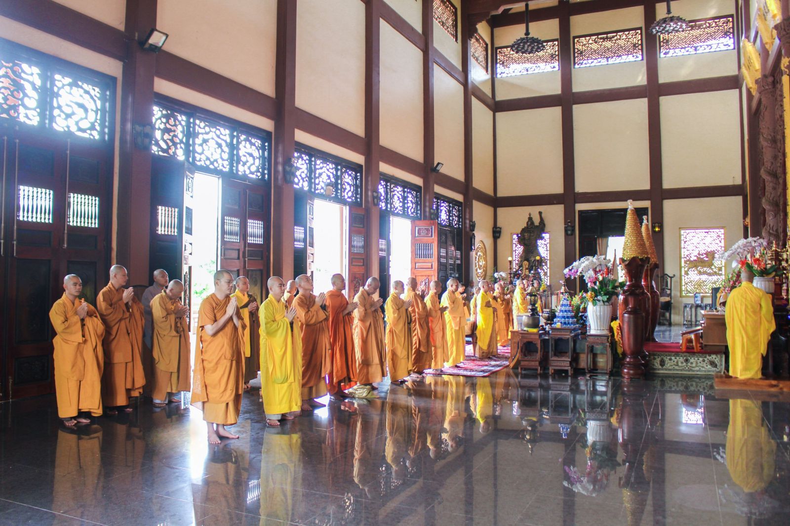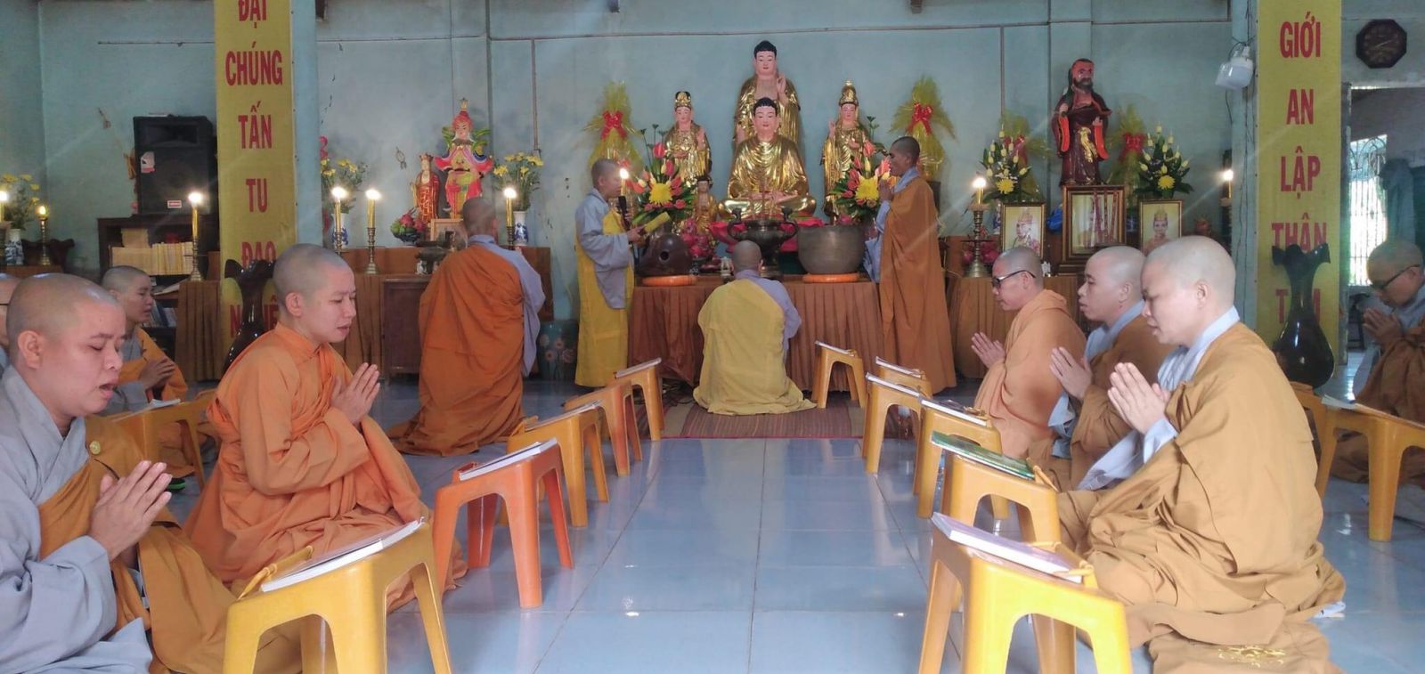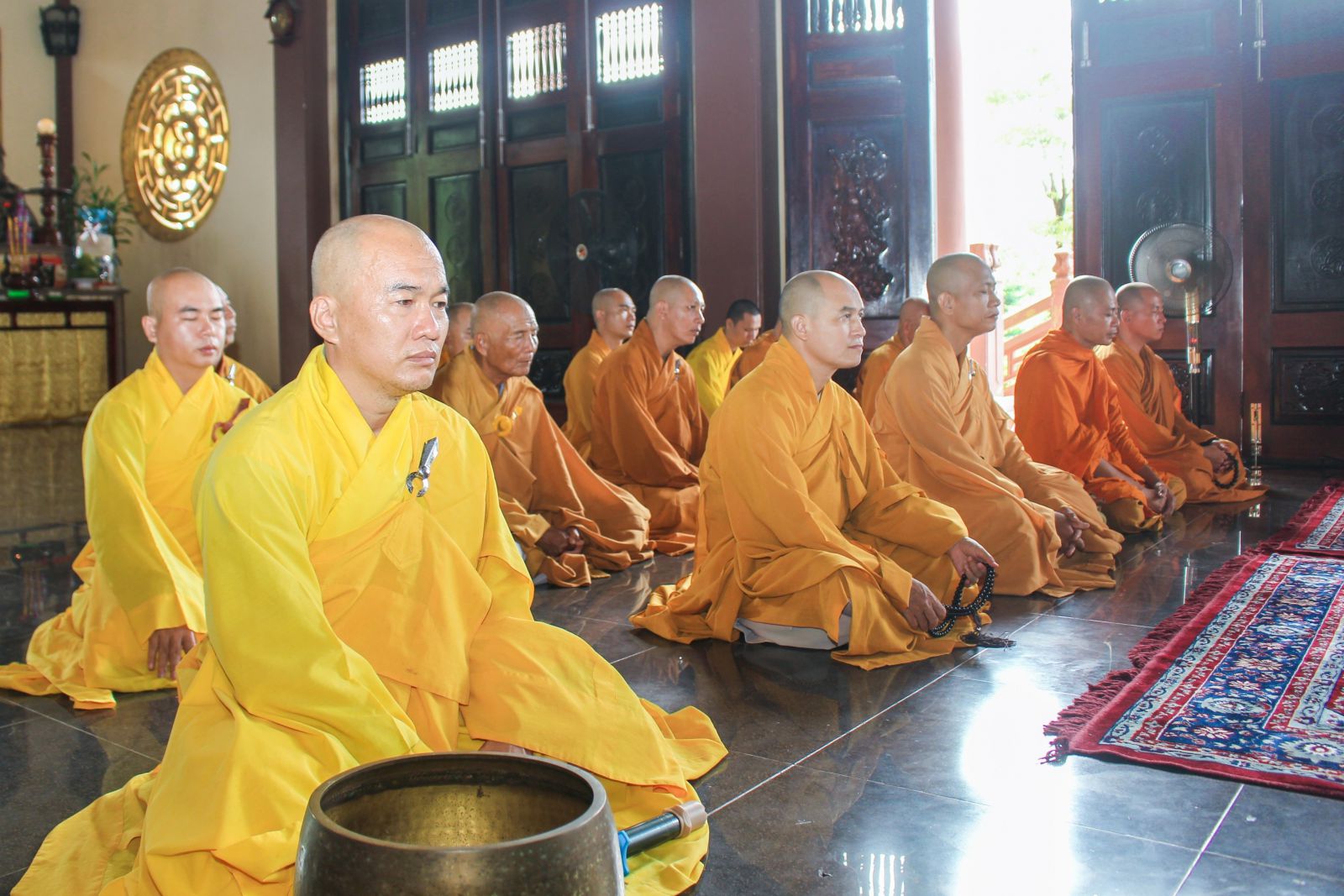 Tại buổi lễ, chư tôn thiền đức Tăng đã niêm hương bạch Phật, đảnh lễ Tam Bảo. Đại đức Thích Quảng Sự – UV BTS GHPGVN tỉnh Bình Thuận, Trưởng Ban Tăng sự GHPGVN huyện Hàm Tân đã đãi lao đại tăng tuyên đọc giới bổn và giáo giới cho chư vị sa di. Thượng tọa Thích Đạt Ma Khế Định thay lời BTC hạ trường tuyên bố hoàn mãn tuần cấm túc an cư tập trung và có lời đạo từ sách tấn đến chư tăng hành giả an cư.