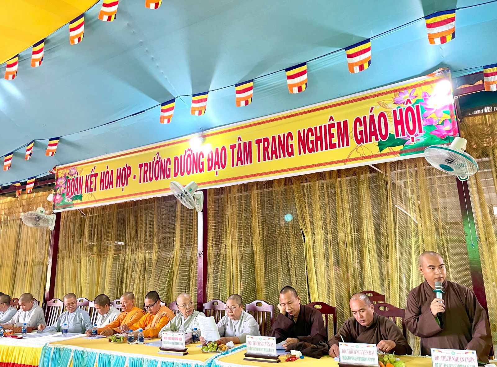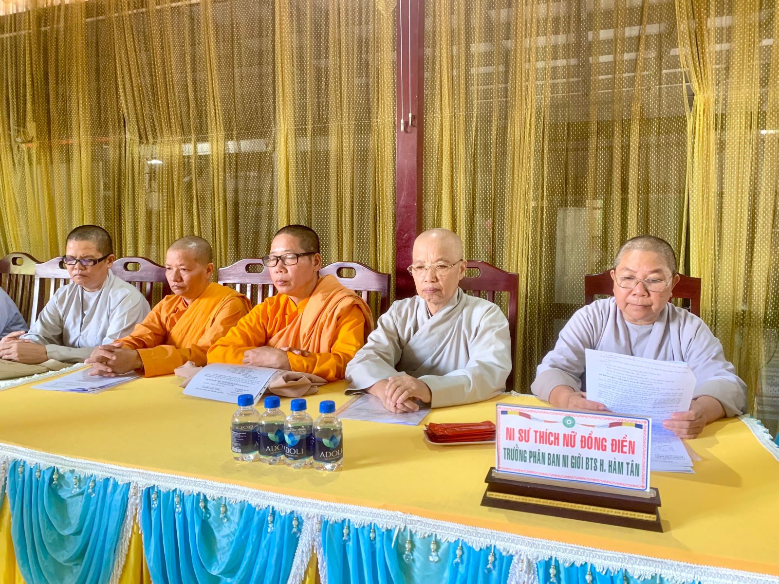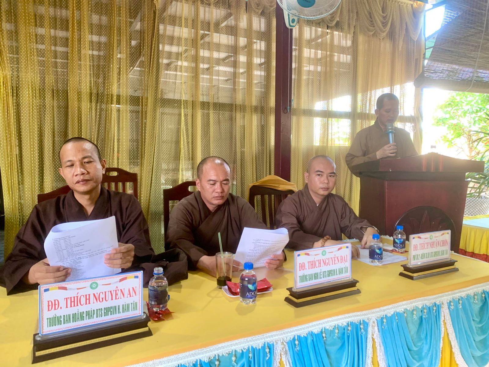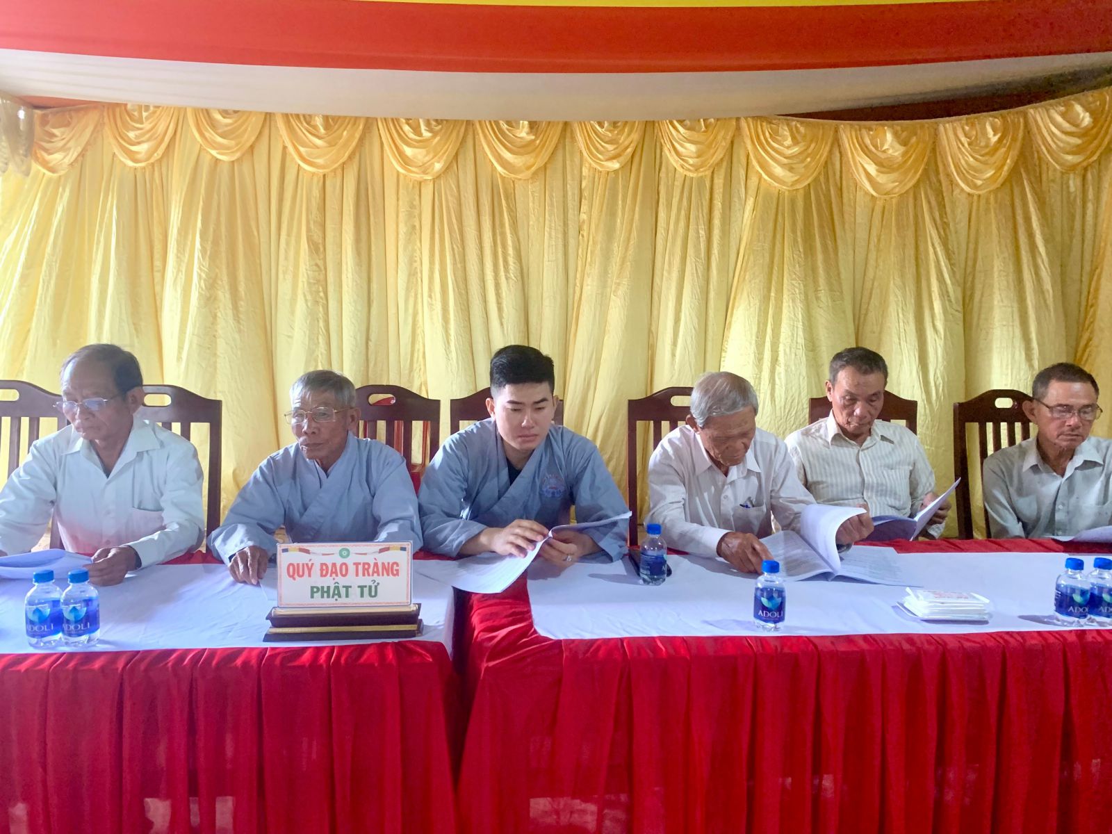 Quang lâm chủ tọa phiên họp có TT. Thích Đạt Ma Khế Định - Phó trưởng BTS PG tỉnh, Trưởng BTS PG huyện; ĐĐ. Thích Nguyên Phúc - UV BTS PG tỉnh, Phó TT BTS PG huyện; ĐĐ. Thích Nguyên Quả - UV BTS PG tỉnh, Phó Ban BTS kiêm Chánh Thư Ký; ĐĐ. Thích Giác Tầm - Phó BTS PG huyện, cùng chư tôn thiền đức Tăng Ni Thường trực Ban Trị sự, chư tôn đức trụ trì các tự viện trong toàn huyện, cùng quý phật tử đại diện các tự viện tham dự.