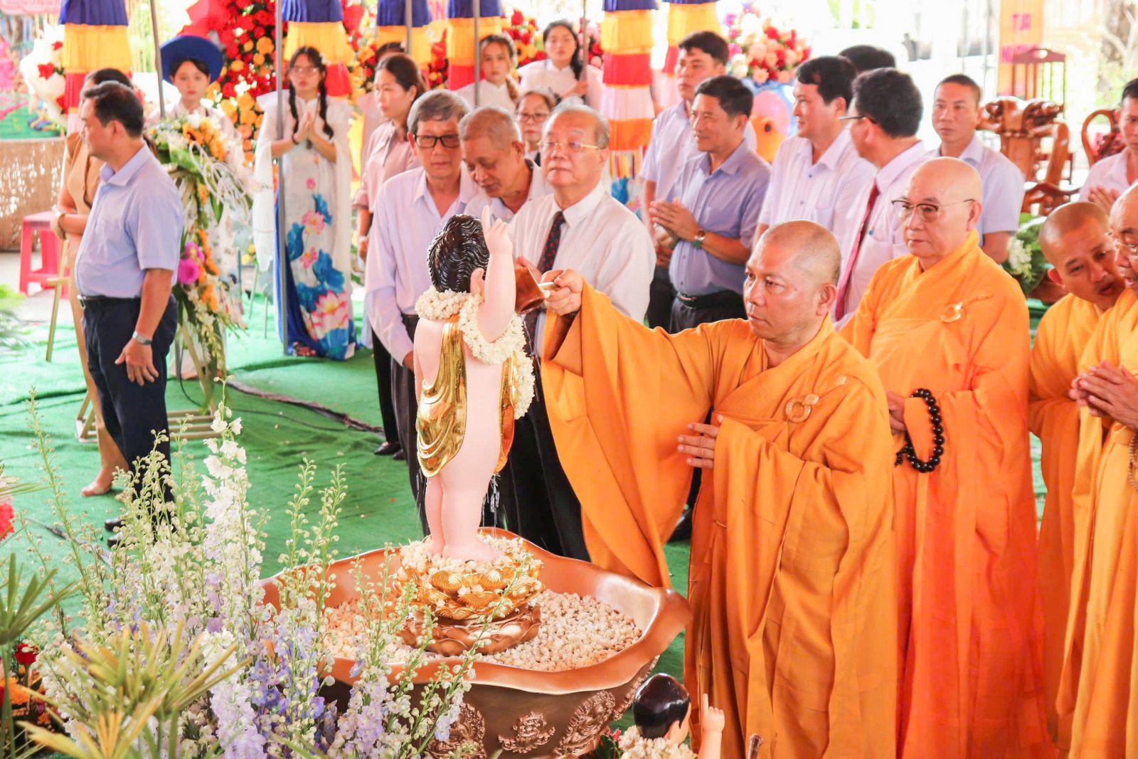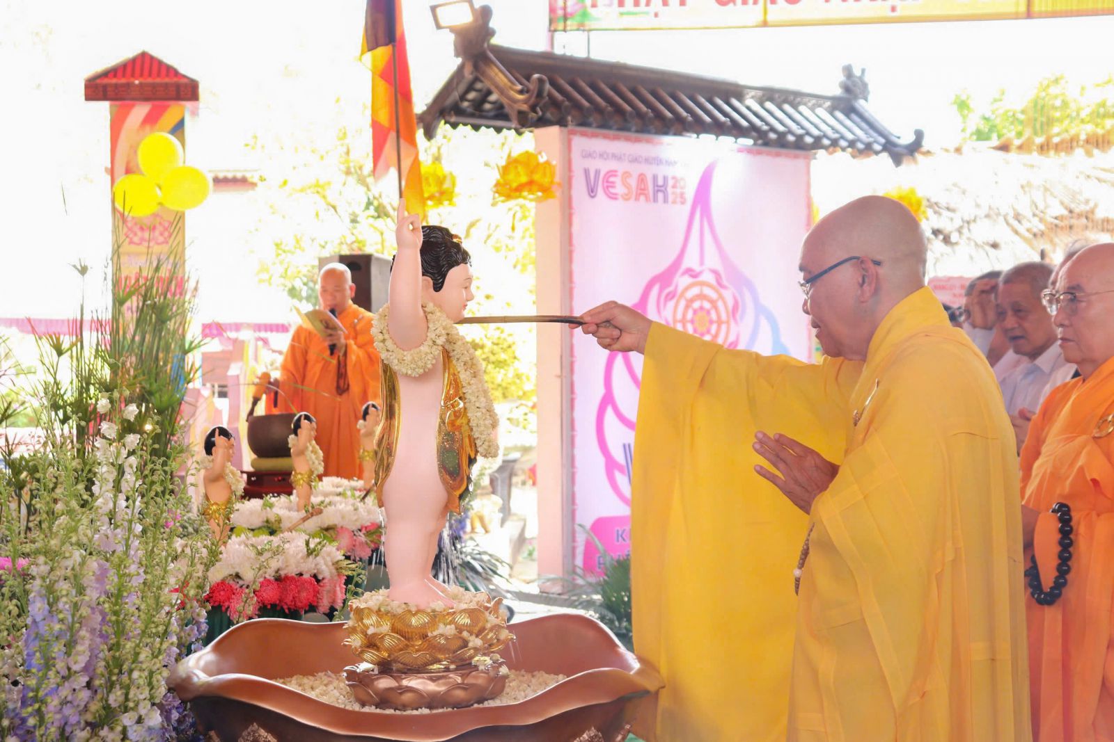 Tiếp đó, chư Tôn đức đã trang nghiêm khóa lễ niêm hương, bạch Phật và hướng dẫn hội chúng thực hiện nghi thức Lễ Mộc dục (Tắm Phật). Sau đó, thả bóng bay cầu nguyện hòa bình trong tràng pháo tay với vô vàn niềm hân hoan của ngày Khánh Đản.
