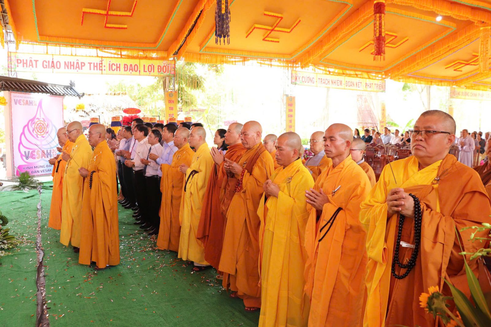 Sau nghi thức chào Quốc kỳ - Đạo kỳ, phút nhập Từ bi quán, toàn thể Tăng Ni, Phật tử, trang nghiêm lắng nghe HT. Thích Minh Nhật tuyên đọc Thông điệp Phật đản của Đức Pháp chủ GHPGVN.