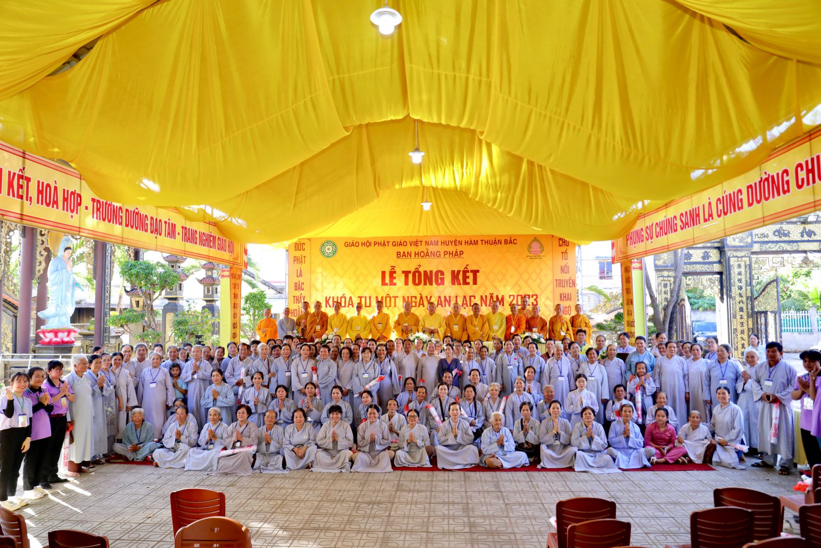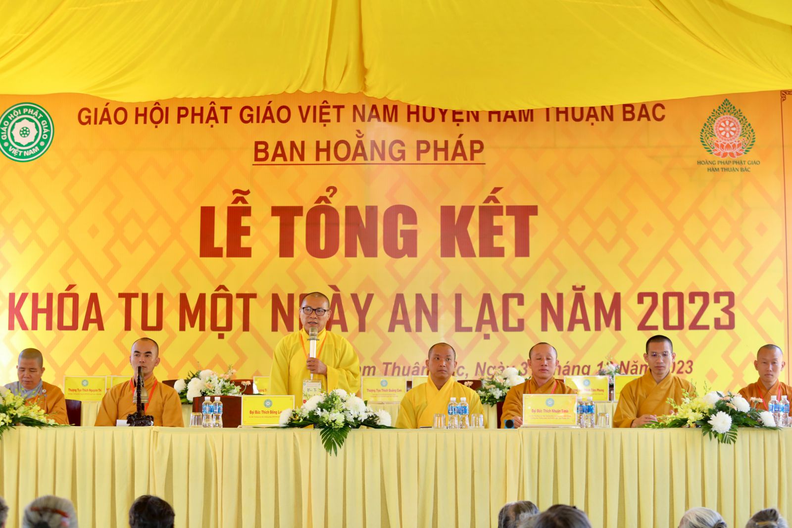 Kết thúc buổi lễ, Đại đức Thích Nhuận Chương, Phó Trưởng ban Thường trực Ban Hoằng pháp GHPGVN H. Hàm Thuận Bắc đã thay mặt cho Ban Tổ chức phát biểu cảm tạ và tri ân chư tôn đức đã có mặt tham dự buổi lễ Tổng kết tốt đẹp. Đồng thời gởi lời cảm niệm tri ân sâu sắc tấm lòng cao đẹp và sự phát tâm cúng dường, ủng hộ, đóng góp công sức và tâm huyết của quí vị nam nữ cư sĩ trong và ngoài nước cùng với các hội, nhóm từ thiện, thiện nguyện trong tỉnh Bình Thuận cho công tác tổ chức 9 khóa tu trong năm 2023.