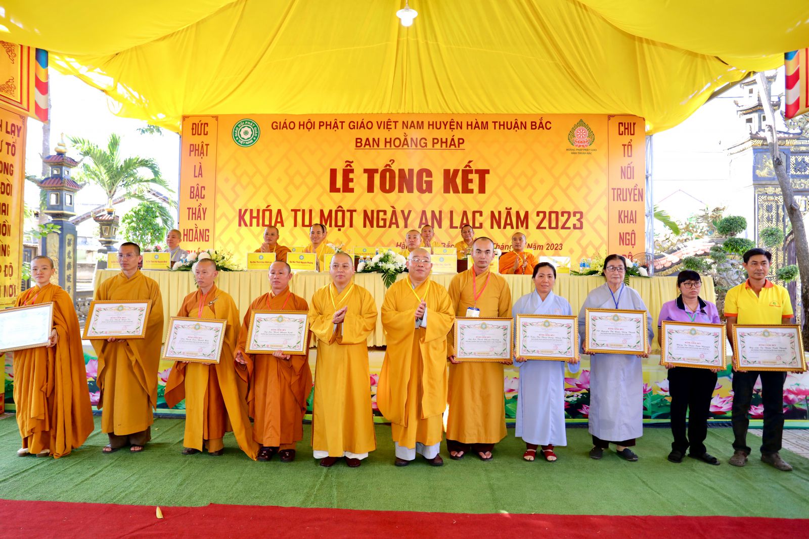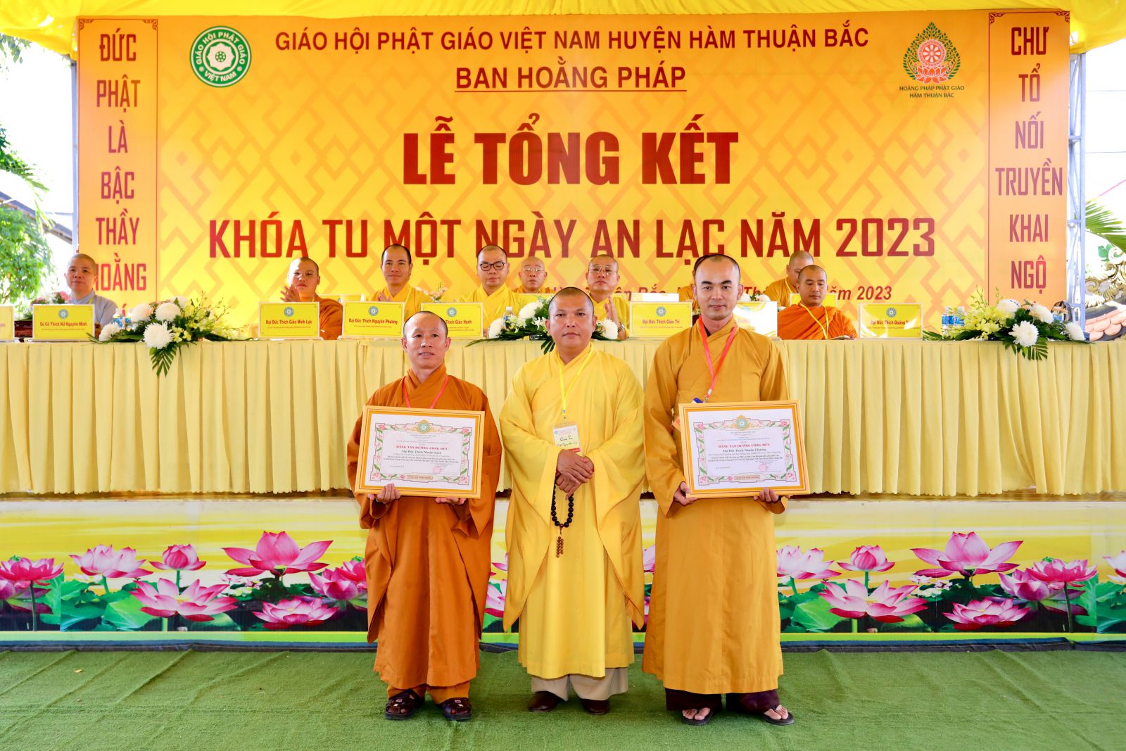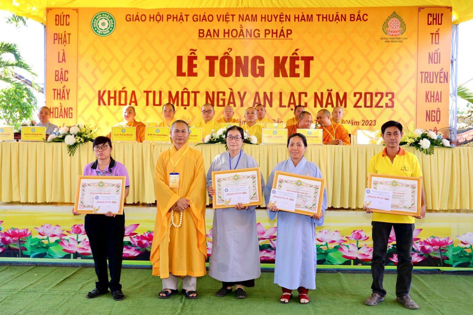 Dịp này, Ban Hoằng pháp GHPGVN tỉnh Bình Thuận; Ban Trị sự GHPGVN H.Hàm Thuận Bắc đã tuyên đọc quyết định và trao tặng Bằng công đức đến tập thể, cá nhân đã có những đóng góp trong công tác Hoằng của tỉnh Bình Thuận và hoạt động Phật sự tại huyện Hàm Thuận Bắc.