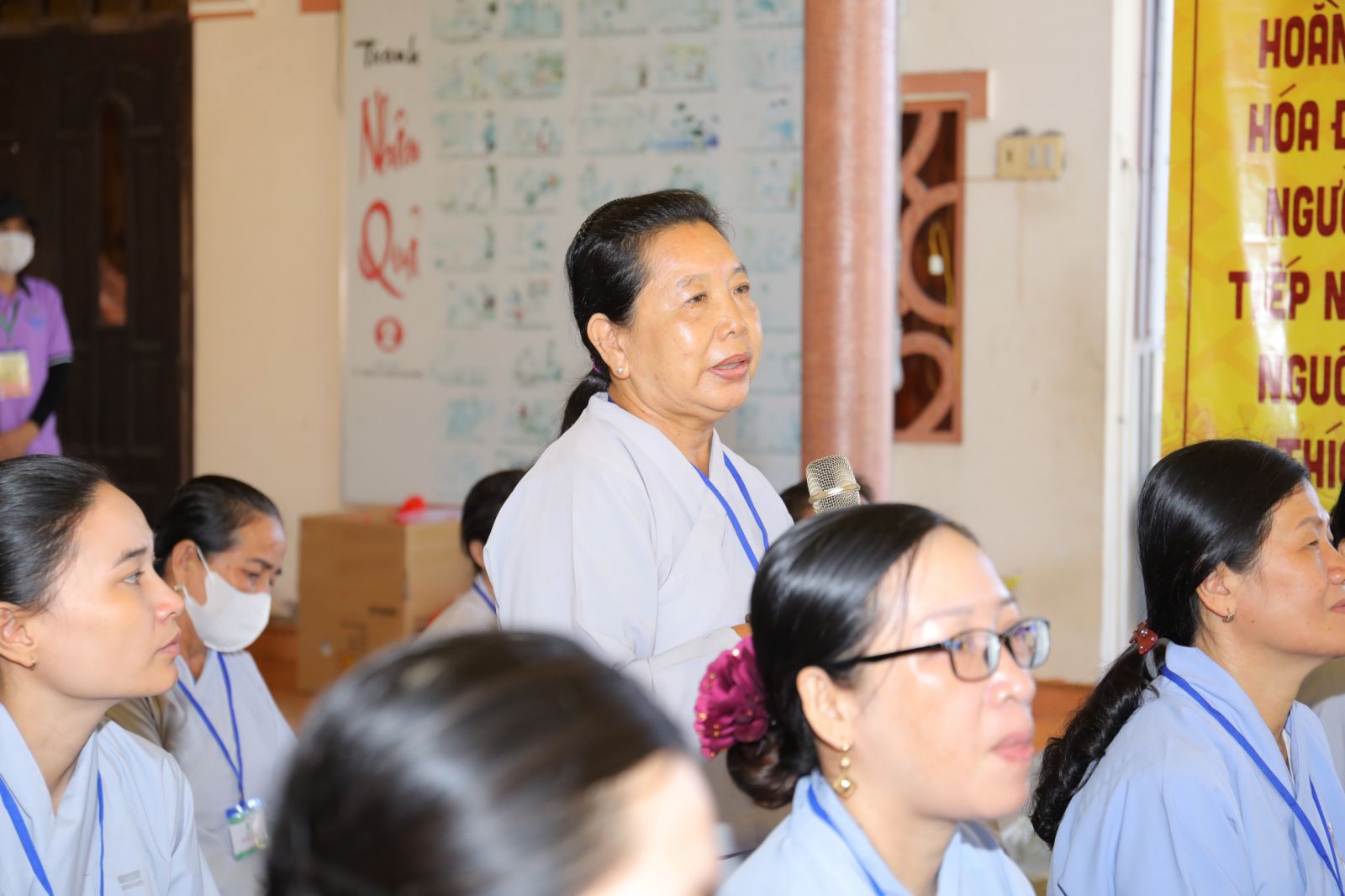 Được biết, sáng 31-12, Ban Hoằng pháp GHPGVN H. Hàm Thuận Bắc tổ chức khóa tu “Một ngày an lạc” lần 9 với sự tham dự của hơn 200 Phật tử với các thời khóa như: tọa đàm Phật pháp, tụng kinh, tọa thiền, thọ trai chánh niệm. Trong đó, thời tọa đàm Phật pháp nhằm tổng kết toàn bộ giáo lý đã được tu học trong 8 khóa tu trước đó.