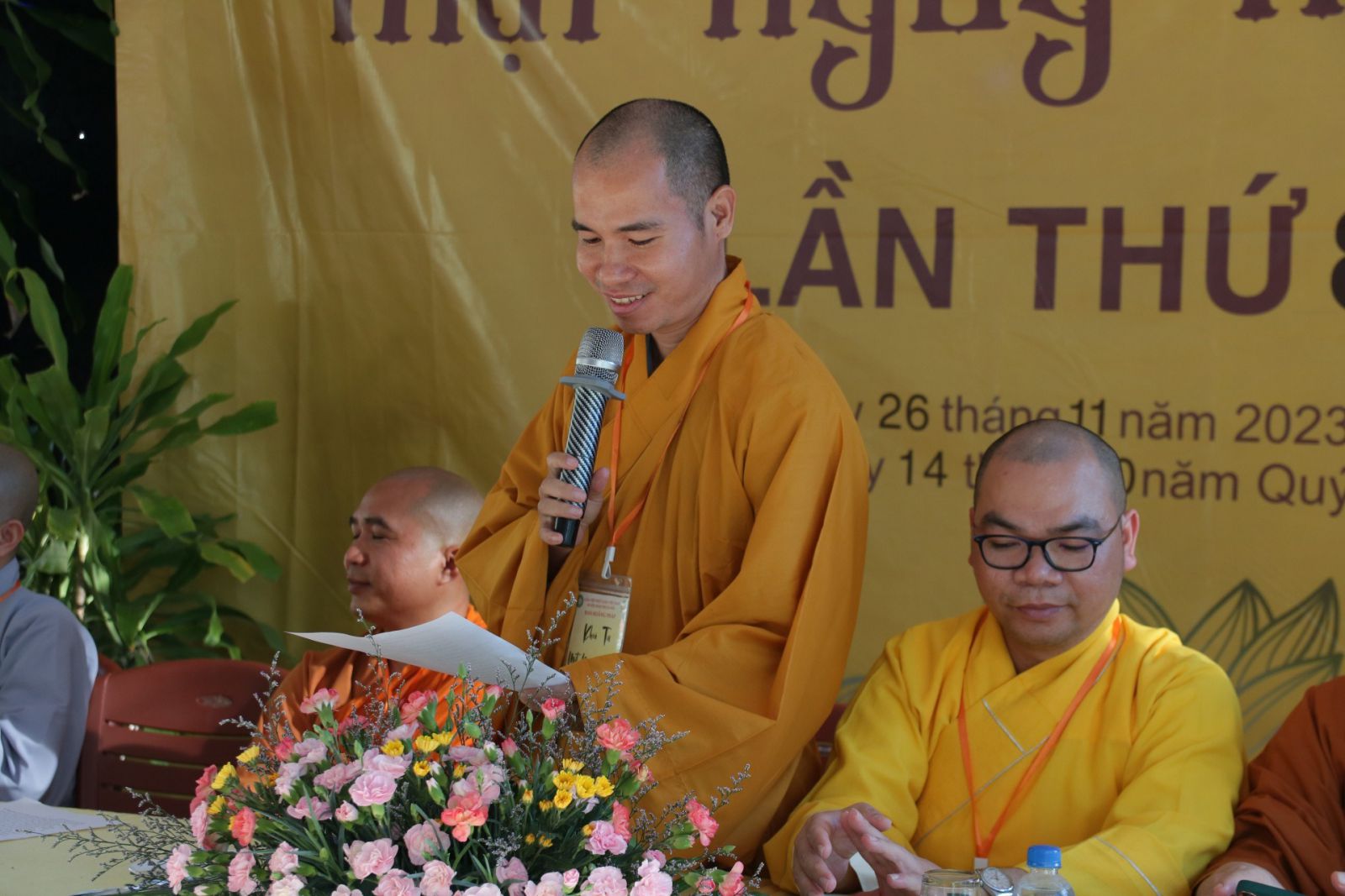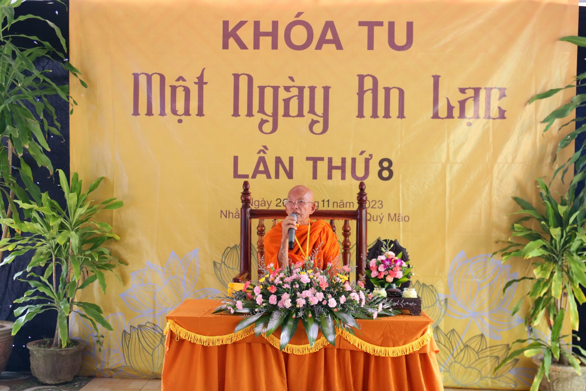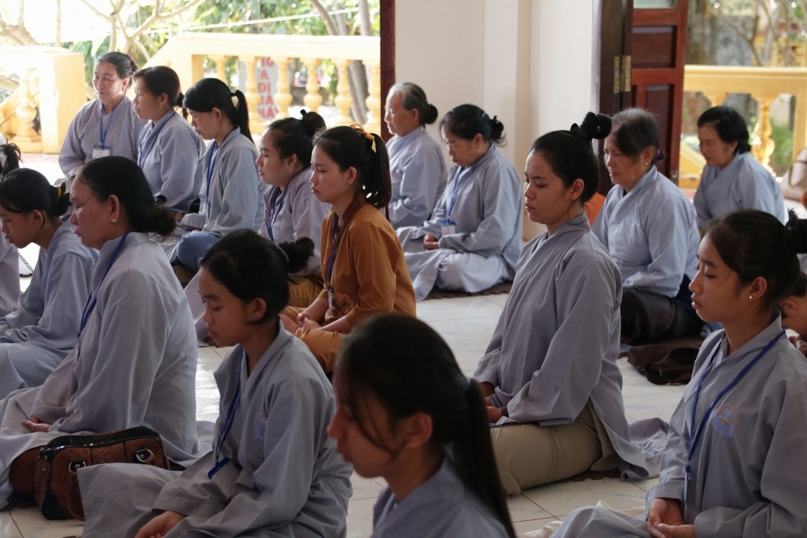 Tại khóa tu, các tu sinh được nghe Thượng tọa Thích Pháp Huệ - Ủy viên thường trực Ban Hoằng pháp T.Ư GHPGVN, Phó Trưởng ban Trị sự kiêm Trưởng ban Hoằng pháp Phật giáo tỉnh thuyết giảng đề tài Chuyển hóa nghiệp lực trong đời sống.