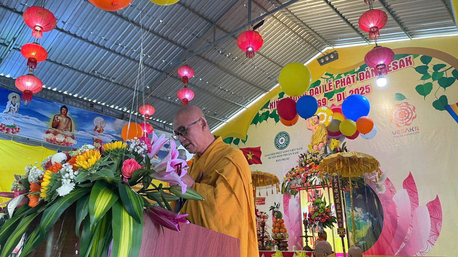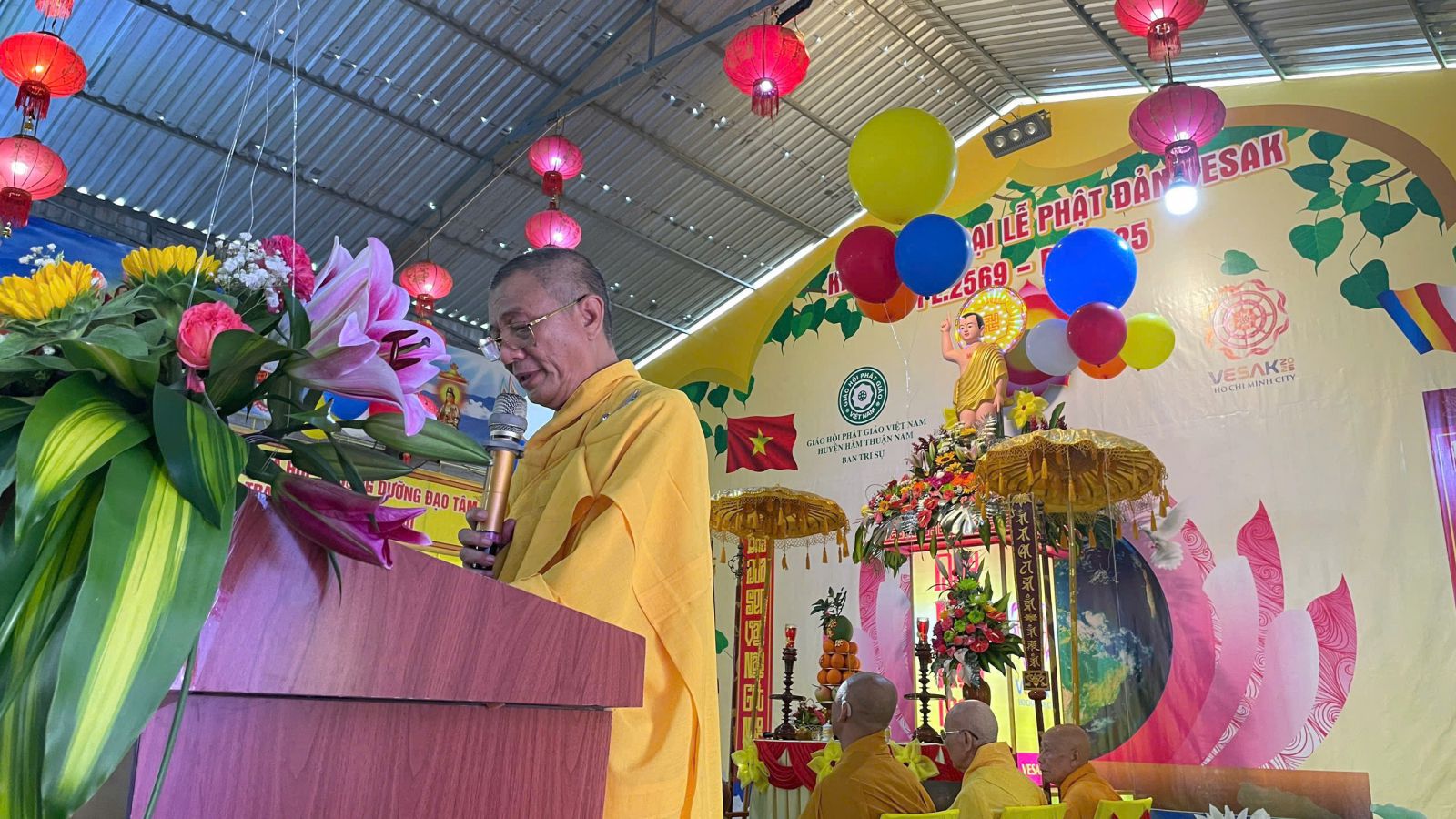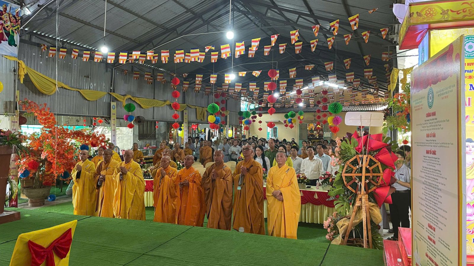 Buổi lễ được cử hành trong không khí trang nghiêm và hoan hỷ với sự tham dự và chứng minh của Trưởng lão Hòa thượng Thích Minh Trí – Thành viên Hội đồng Chứng minh GHPGVN, Chứng minh Ban Trị sự GHPGVN tỉnh Bình Thuận, Chứng minh Ban Trị sự Phật giáo huyện Hàm Thuận Nam; Hòa thượng Thích Thiện Hoa, Thượng tọa Thích Minh Quý – Chứng minh Ban Trị sự huyện; Thượng tọa Thích Nguyên Chơn – Trưởng Ban Nghi lễ GHPGVN tỉnh, Trưởng Ban Trị sự GHPGVN huyện, Trưởng Ban Tổ chức Đại lễ; cùng sự hiện diện của Đại đức Thích Không Nhơn – Phó Trưởng ban Thường trực; Chư Thượng tọa, Đại đức trong Thường trực Ban Trị sự và trụ trì các tự viện trên địa bàn huyện.