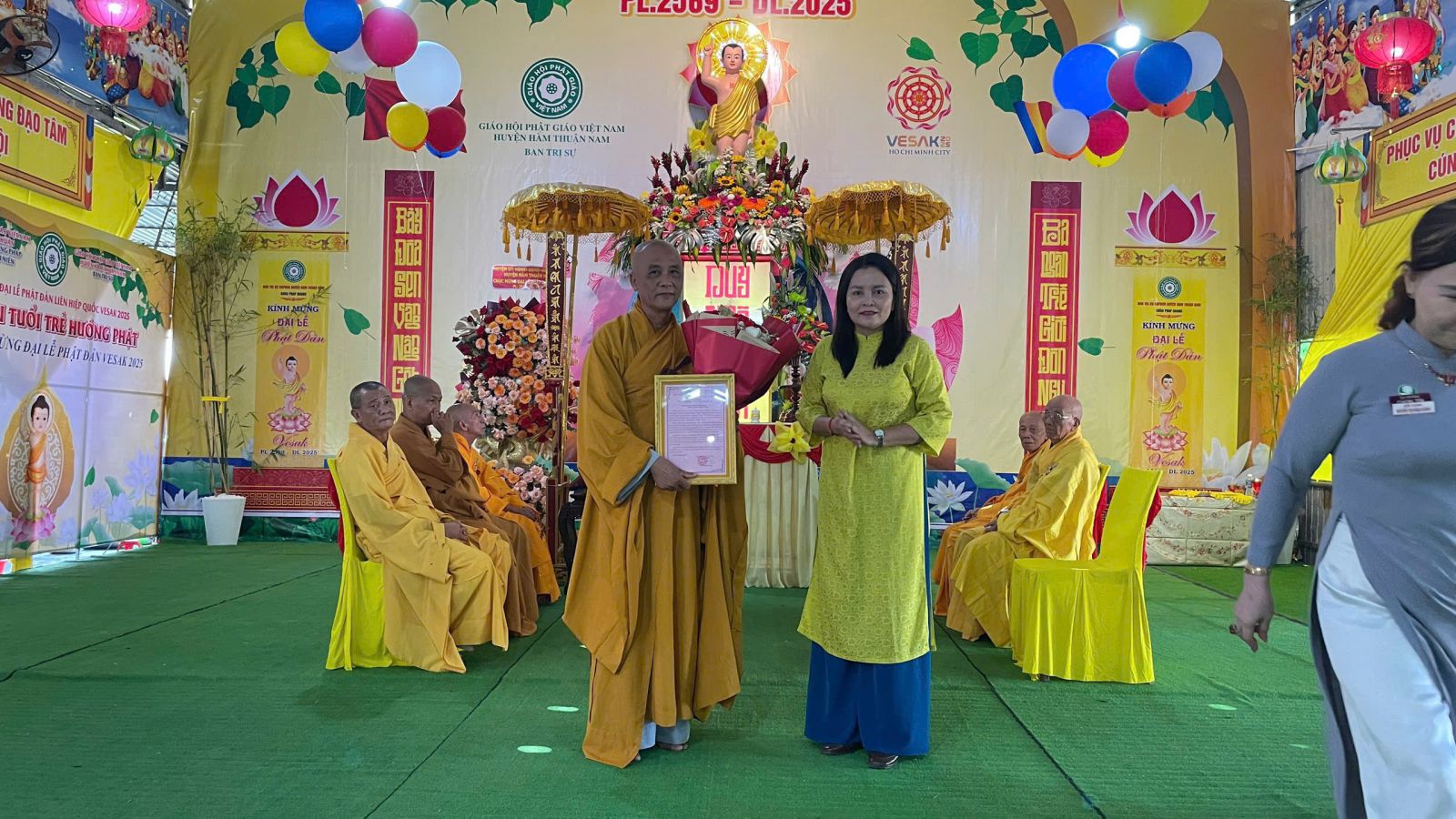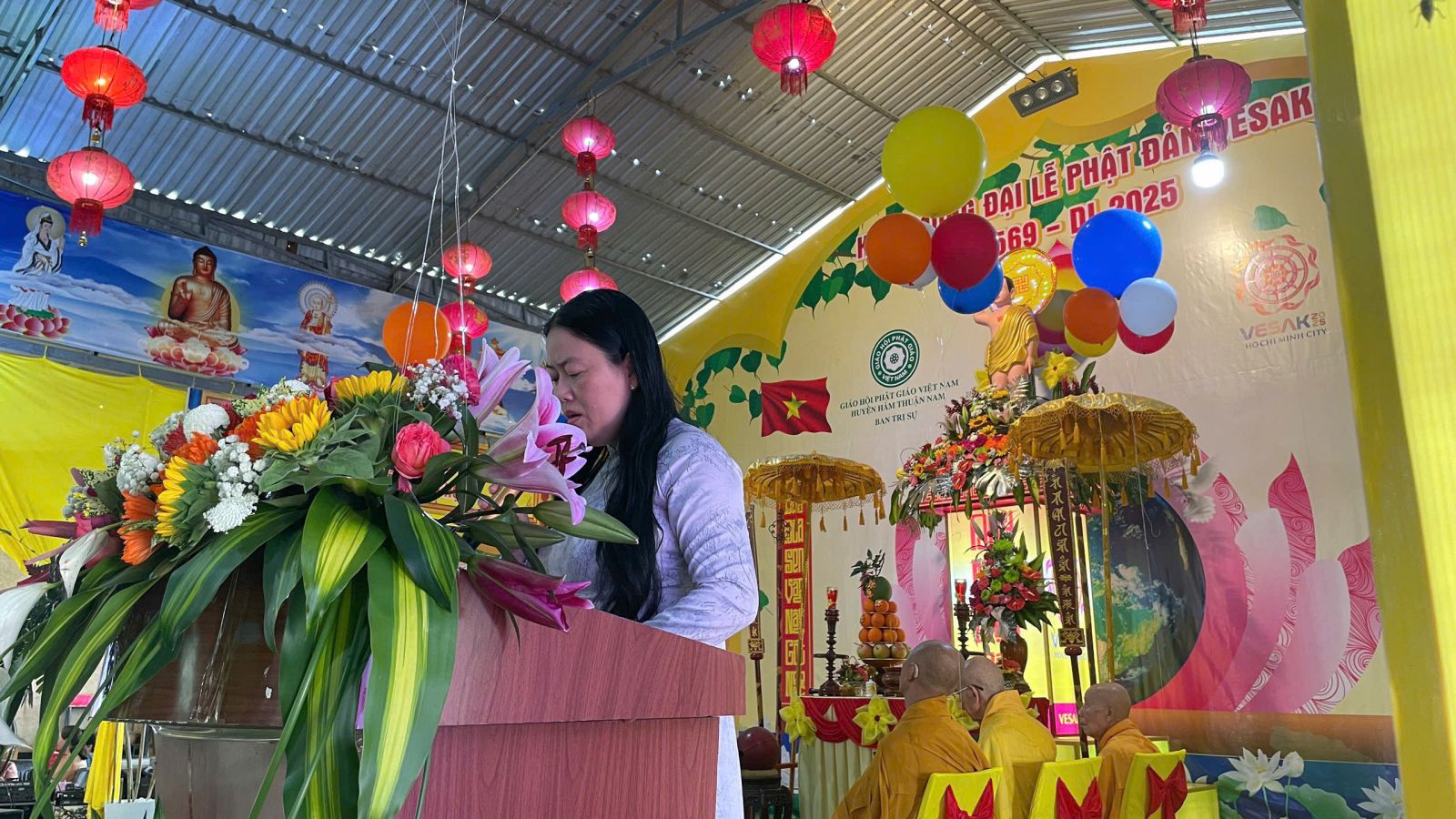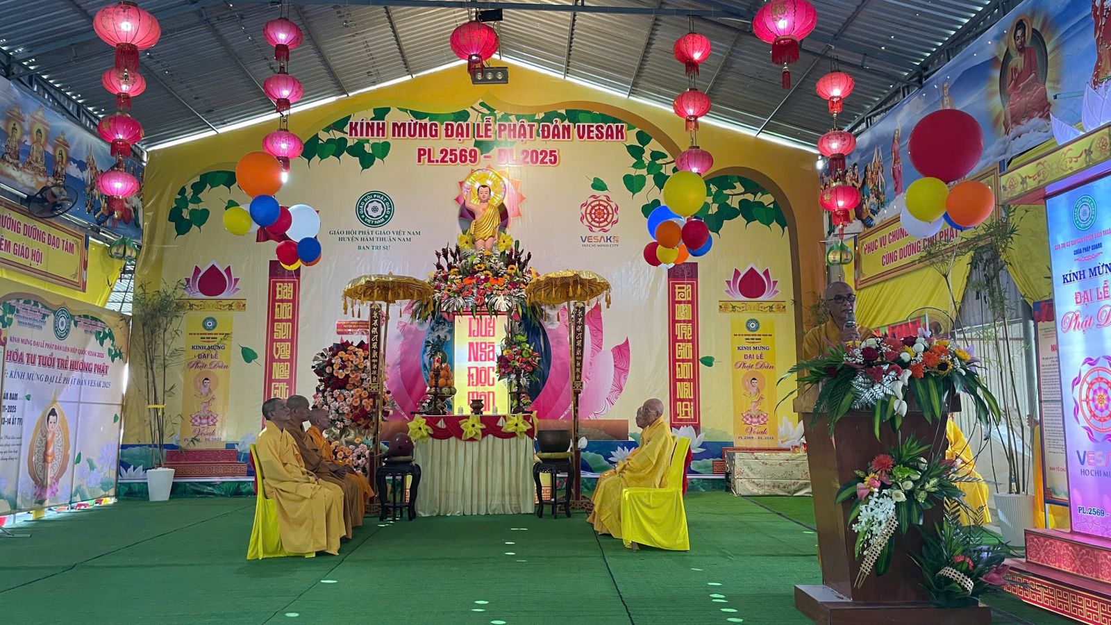 Buổi lễ được cử hành trong không khí trang nghiêm và hoan hỷ với sự tham dự và chứng minh của Trưởng lão Hòa thượng Thích Minh Trí – Thành viên Hội đồng Chứng minh GHPGVN, Chứng minh Ban Trị sự GHPGVN tỉnh Bình Thuận, Chứng minh Ban Trị sự Phật giáo huyện Hàm Thuận Nam; Hòa thượng Thích Thiện Hoa, Thượng tọa Thích Minh Quý – Chứng minh Ban Trị sự huyện; Thượng tọa Thích Nguyên Chơn – Trưởng Ban Nghi lễ GHPGVN tỉnh, Trưởng Ban Trị sự GHPGVN huyện, Trưởng Ban Tổ chức Đại lễ; cùng sự hiện diện của Đại đức Thích Không Nhơn – Phó Trưởng ban Thường trực; Chư Thượng tọa, Đại đức trong Thường trực Ban Trị sự và trụ trì các tự viện trên địa bàn huyện.