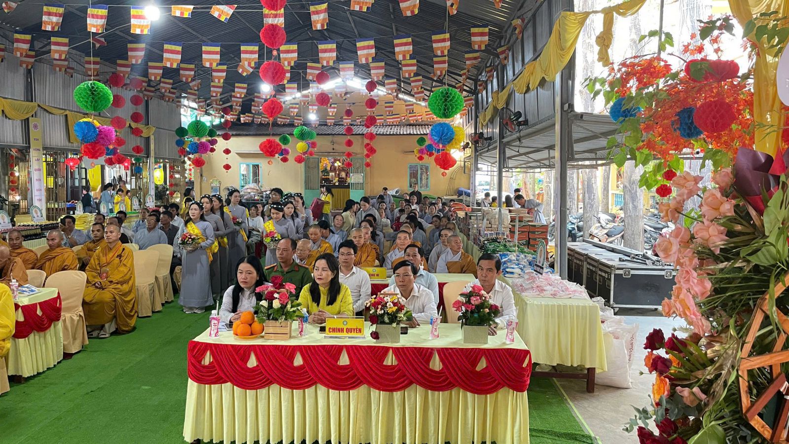 Về phía chính quyền, buổi lễ hân hạnh đón tiếp bà Mai Thị Ngọc Ảnh – Ủy viên Ban Thường vụ Huyện ủy, Phó Chủ tịch UBND huyện; bà Tô Thị Xuân Thủy – Ủy viên Ban Thường vụ Huyện ủy, Chủ tịch UBMTTQVN huyện; ông Lê Văn Chính – Phó Trưởng phòng Nội vụ huyện; ông Võ Văn Phú – Chánh Văn phòng UBND huyện; ông Huỳnh Duy Khánh – Phó Trưởng Công an xã Hàm Cường; cùng đông đảo Phật tử các đạo tràng trong huyện.