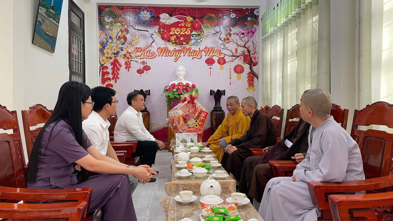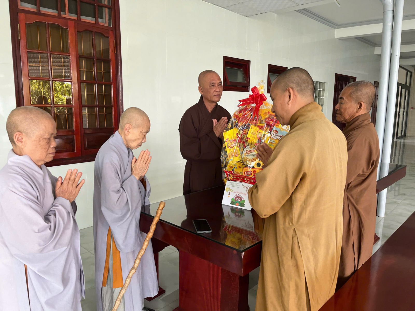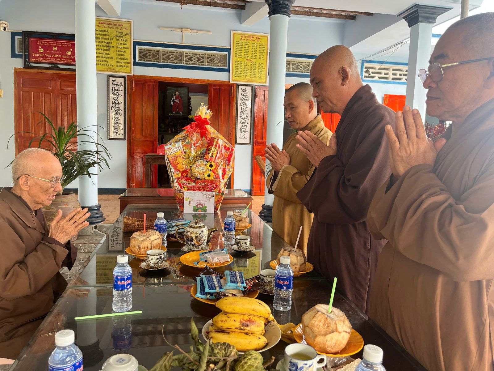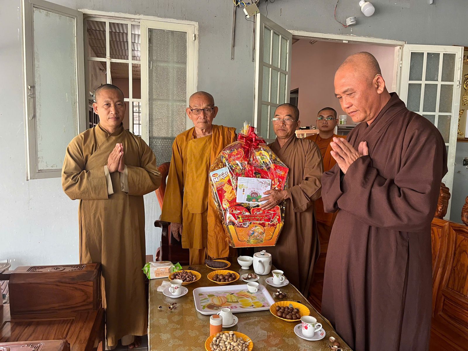 Tại các trú xứ, với tình pháp lữ, Quý Ngài hoan hỷ đón nhận, cùng nhau thăm hỏi sức khoẻ, cùng dùng chén trà đạo vị trong những ngày cuối đông, những chiếc bánh ngọt đầy ấm áp, động viên và sách tấn Chư Tôn đức Ban Thường trực đoàn kết, hoà hợp và tinh tấn trên con đường phụng sự.