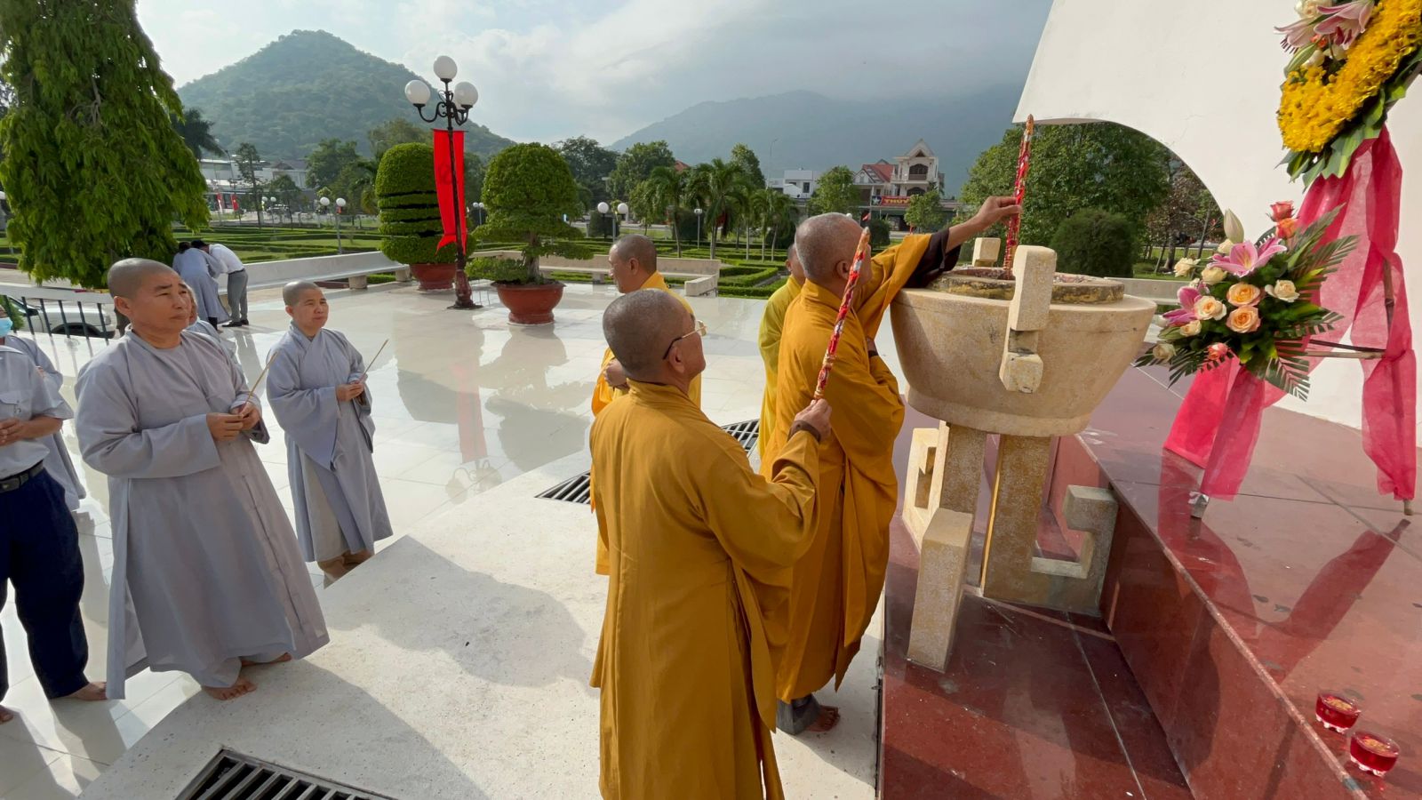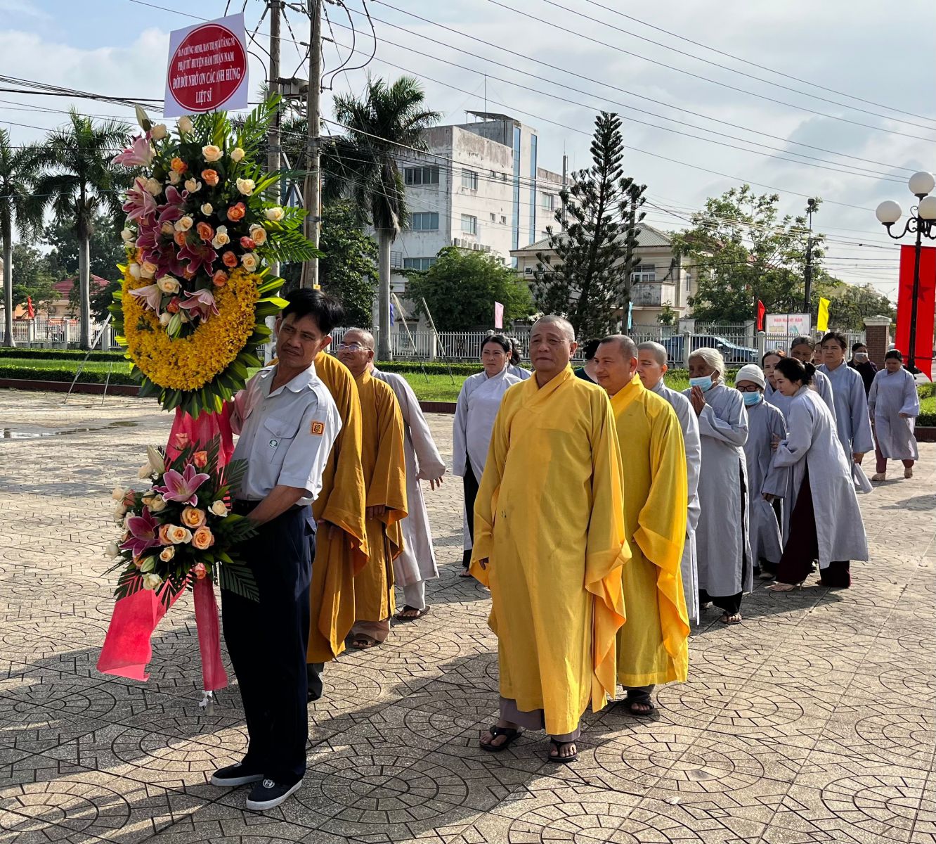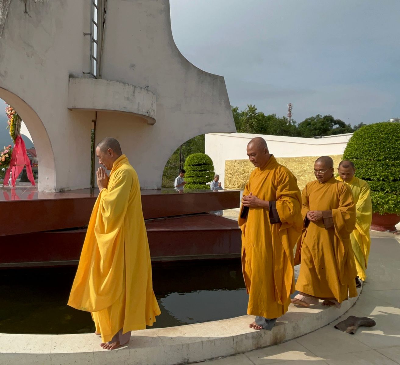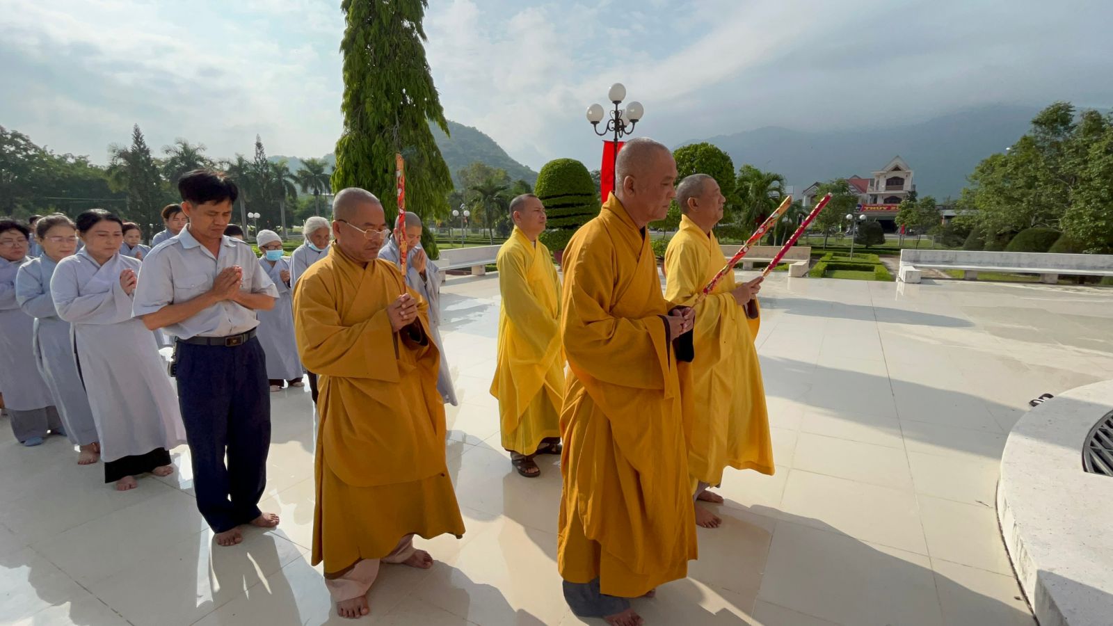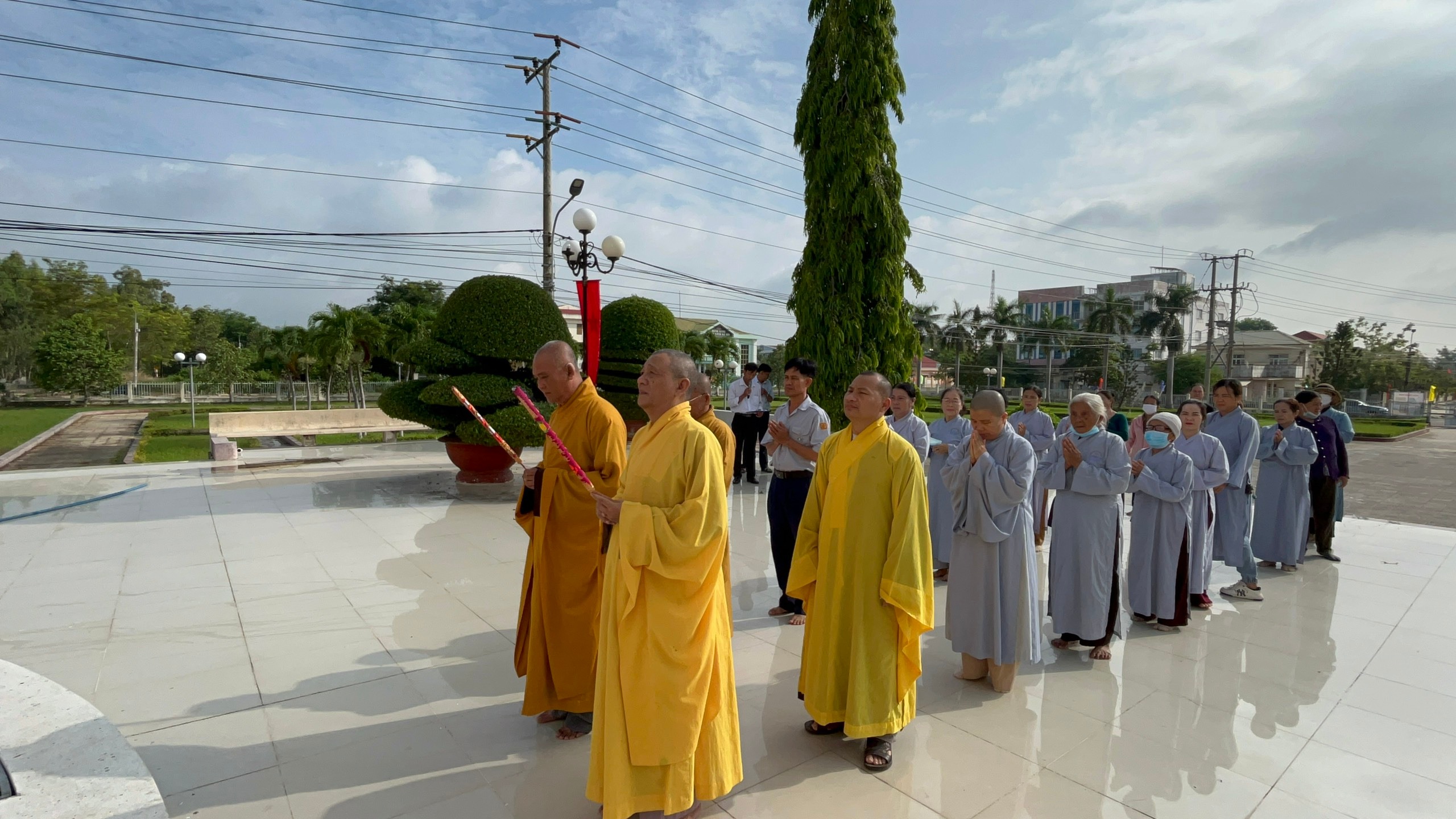 Phái đoàn gồm TT. Thích Nguyên Chơn - Trưởng Ban Nghi lễ Phật giáo Tỉnh; Trưởng BTS PG Huyện Hàm Thuận Nam làm trưởng đoàn; ĐĐ. Thích Không Nhơn - UVDK BTS Phật giáo Tỉnh; Phó trưởng ban Thường trực BTS PG Huyện; ĐĐ. Thích Nguyên Tú- UV BTS Phật giao Tỉnh, Phó Trưởng Ban kiêm Chánh Thư ký BTS Phật giáo Huyện; ĐĐ. Thích Quảng Phúc – Phó Trưởng Ban Trị sự Phật giáo Huyện; cùng Chư Tôn Đức Tăng Ni - quý Phật tử trong huyện tháp tùng với đoàn dâng hương tưởng niệm.
