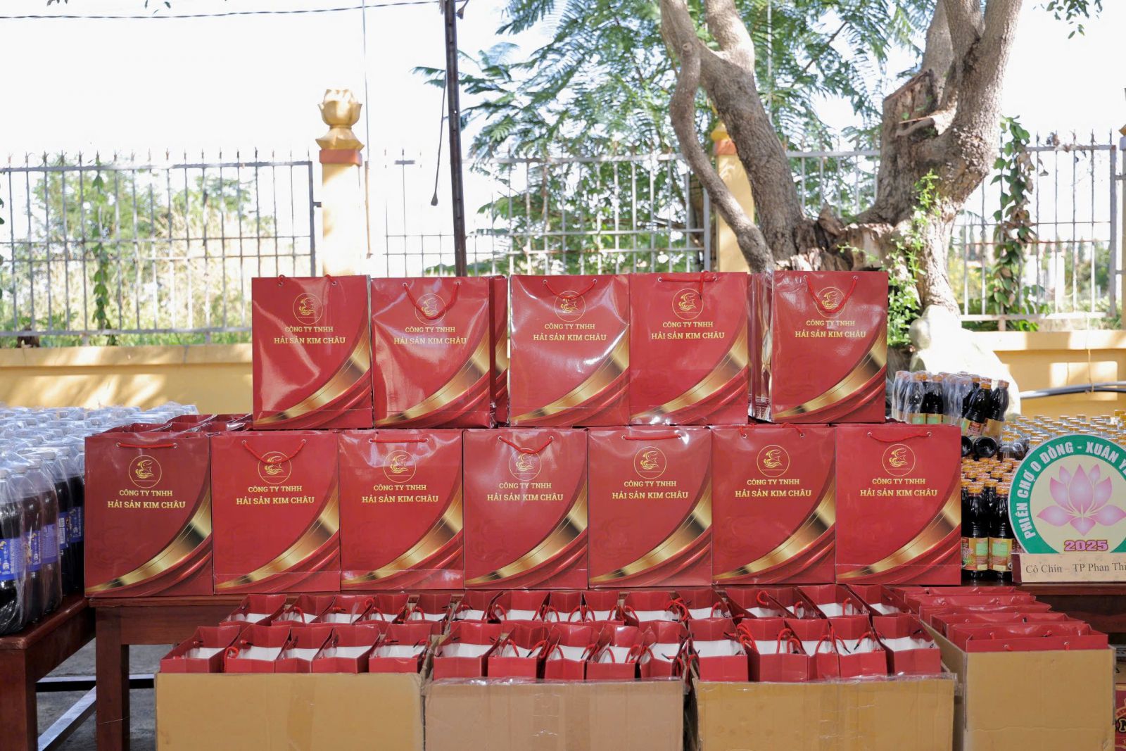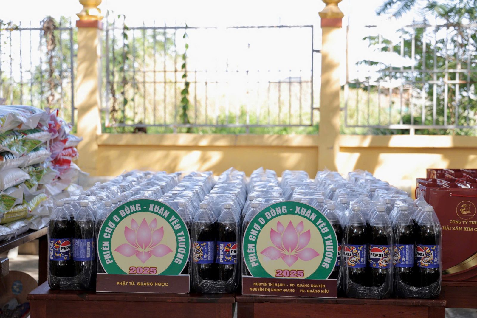 Chung tay cho hoạt động thiện nguyện này có sự ủng hộ của quý mạnh thường quân gần xa và chư Phật tử của chùa. Được biết, phiên chợ 0 đồng lần này có 200 phần quà, gồm các mặt hàng nhu yếu phẩm như: gạo, dầu, đường, nước tương, mì gói, rau củ, và các loại bánh mứt Tết. Trị giá mỗi phần quà là 500 nghìn đồng.