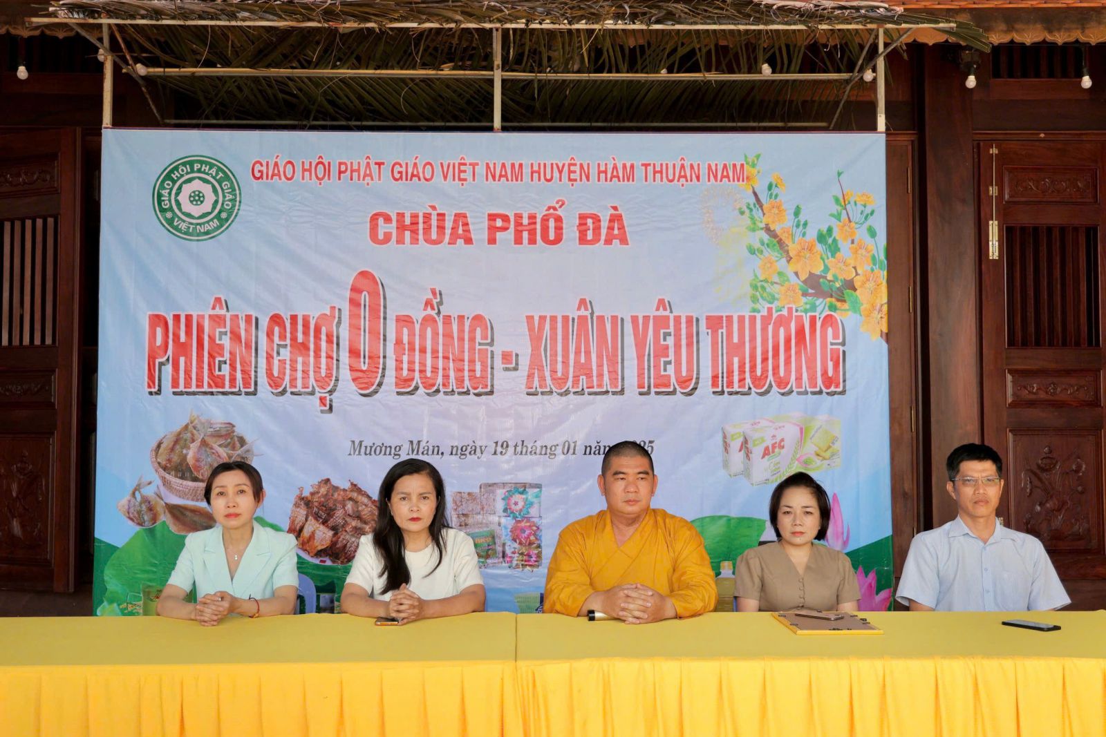 Tham dự buổi khai mạc phiên chợ Xuân 0 đồng có sự hiện diện của Đại đức Thích Nguyên Nguyệt, Phó Trưởng Ban kiêm Chánh Thư ký Ban Trị sự GHPGVN tỉnh Bình Thuận, trụ trì chùa Phổ Đà. Đại diện lãnh đạo chính quyền địa phương có bà Phan Thị Vi Vân, Phó Chủ tịch Hội Liên Hiệp Phụ nữ tỉnh Bình Thuận; bà Tô Thị Xuân Thủy, Uỷ viên Ban Thường vụ Huyện ủy, Trưởng Ban Dân vận, Chủ tịch UBMTTQVN huyện Hàm Thuận Nam; Ông Nguyễn Oanh Nghĩa, Huyện ủy viên, Bí thư Đảng ủy xã Mương Mán; bà Trần Thị Lệ Thủy, Chủ tịch UBND xã Mương Mán đồng tham dự.