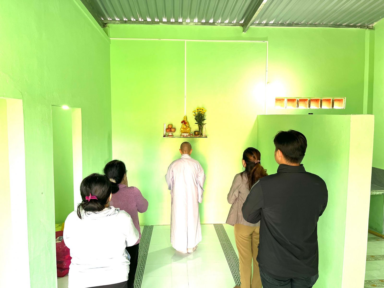 Cũng trong buổi sáng cùng ngày, đại diện chùa Phước Minh, quý cấp và quý Mạnh thường quân đến cúng động thổ căn nhà tình thương tại xã Hàm Thạnh cho gia đình ông Nguyễn Út Giàu- bà Võ Thị Minh.