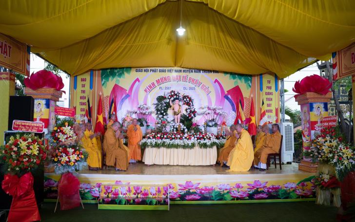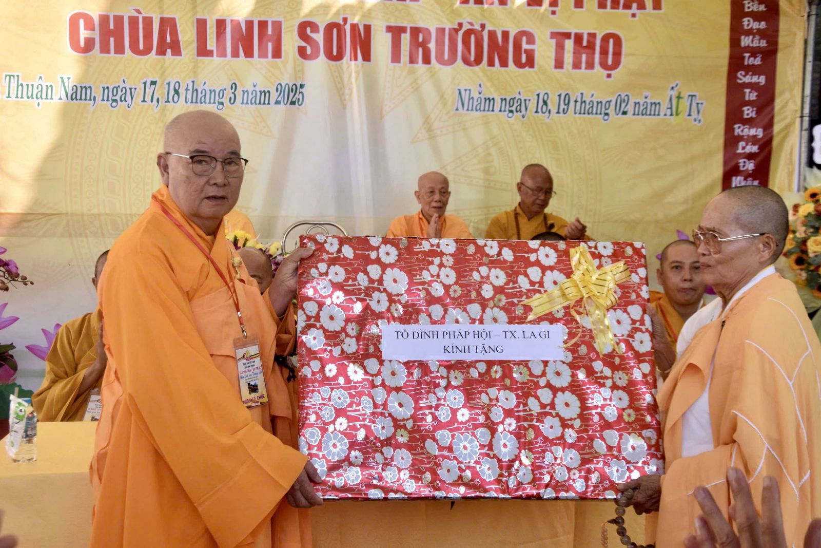 Quang lâm chứng minh đại lễ có Trưởng lão Hòa thượng Thích Minh Trí – Thành viên Hội đồng Chứng minh Trung ương, Chứng minh Ban Trị sự GHPGVN tỉnh Bình Thuận; Hòa thượng Thích Ấn Chánh – Thành viên Hội đồng Chứng minh Trung ương, Chứng minh Ban Trị sự GHPGVN tỉnh Bình Thuận, Trưởng Ban Tổ chức; Hòa thượng Thích Minh Nhật – Ủy viên Hội đồng Trị sự Trung ương, Trưởng Ban Trị sự kiêm Trưởng Ban Tăng sự GHPGVN tỉnh Bình Thuận; Hòa thượng Thích Giác Nguyện – Chứng minh Ban Trị sự GHPGVN TP. Long Khánh; TT. Thích Pháp Huệ - Phó Trưởng Ban Trị sự kiêm Trưởng Ban Hoằng pháp Phật giáo tỉnh; TT. Thích Nguyên Sắc – Phó Trưởng Ban Trị sự Phật giáo tỉnh; ĐĐ. Thích Nguyên Nguyệt – Phó Trưởng Ban kiêm Chánh Thư ký BTS Phật giáo tỉnh; TT. Thích Nguyên Chơn - Trưởng Ban Nghi lễ Phật giáo tỉnh, Trưởng Ban Trị sự Phật giáo huyện Hàm Thuận Nan; ĐĐ. Thích Quảng Pháp – Phó Thư ký kiêm Chánh Văn phòng BTS Phật giáo tỉnh; Chư Tôn đức Thường trực Ban Trị sự GHPGVN tỉnh Bình Thuận; Ban Trị sự GHPGVN các huyện, thị, thành phố; Phân ban Ni giới Phật giáo tỉnh; Chư Tôn đức Tăng Ni tham dự.