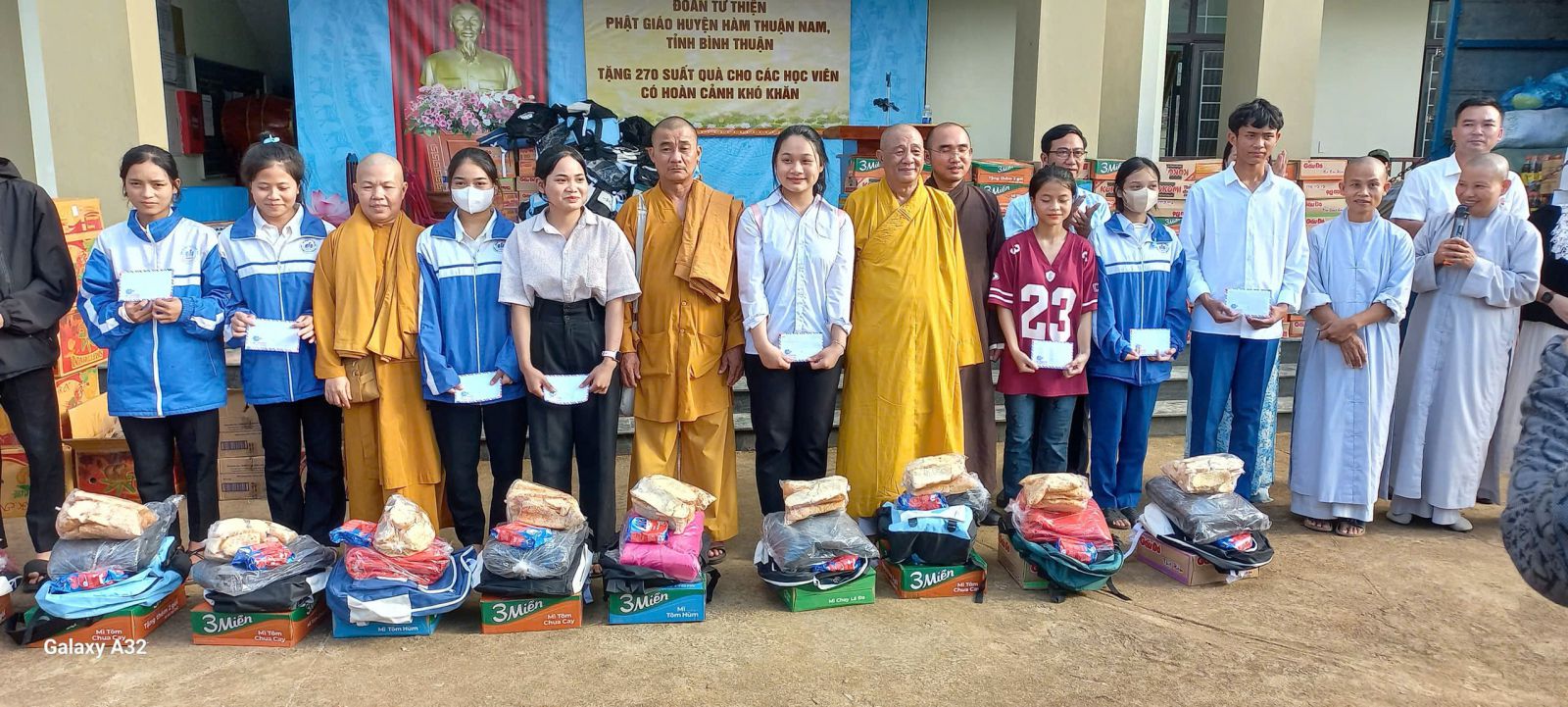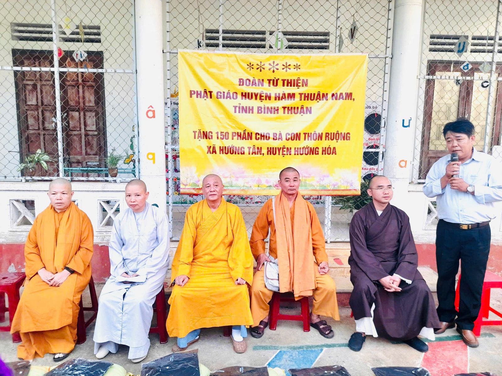 Đoàn do TT. Thích Nguyên Chơn -  Trưởng Ban Nghi lễ GHPGVN tỉnh Bình Thuận, Trưởng BTS GHPGVN huyện Hàm Thuận Nam làm trưởng đoàn cùng Chư tôn đức Tăng Ni và quý Phật tử Mạnh thường quân.