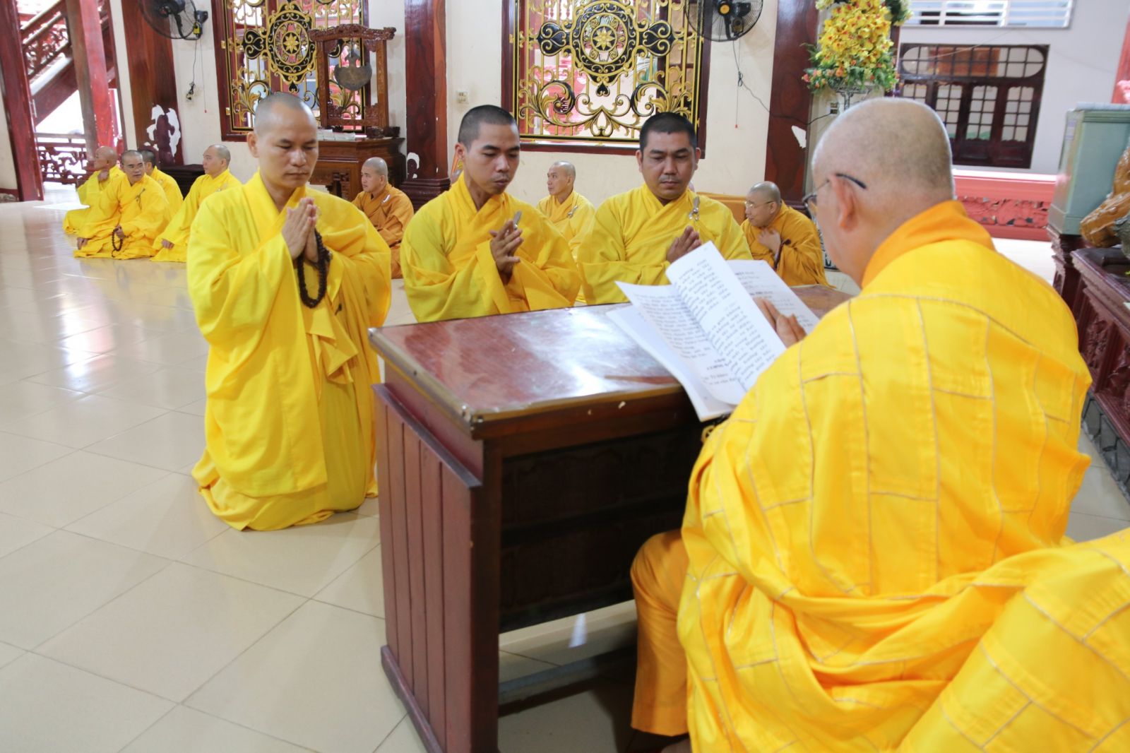 Tại Tổ đường, Đại đức Thích Giác Hạnh đương vi Tri sự, điển lễ đã tác bạch trước chư Tôn đức Tăng trình Tăng số An cư và cung an chức sự, cung thỉnh Ban Chức sự hạ Trường. Hoà Thượng Thích Ấn Chánh được cung thỉnh làm Thiền chủ kiêm Tuyên Luật sư; Thượng tọa Thích Pháp Huệ được cung thỉnh làm Hóa chủ; TT. Thích Pháp Huệ, TT. Thích Đức Thành, ĐĐ. Thích Giác Hạnh được cung thỉnh làm giáo thọ Trường hạ. Hoà Thượng cùng chư Tôn đức Tăng niêm hương, dâng hương, lễ Tổ và quang lâm tại Đại hùng Bảo điện niêm hương, bạch Phật, thực hiện nghi thức tác pháp, kiết giới trường, đối thú An cư và khai chung bản.