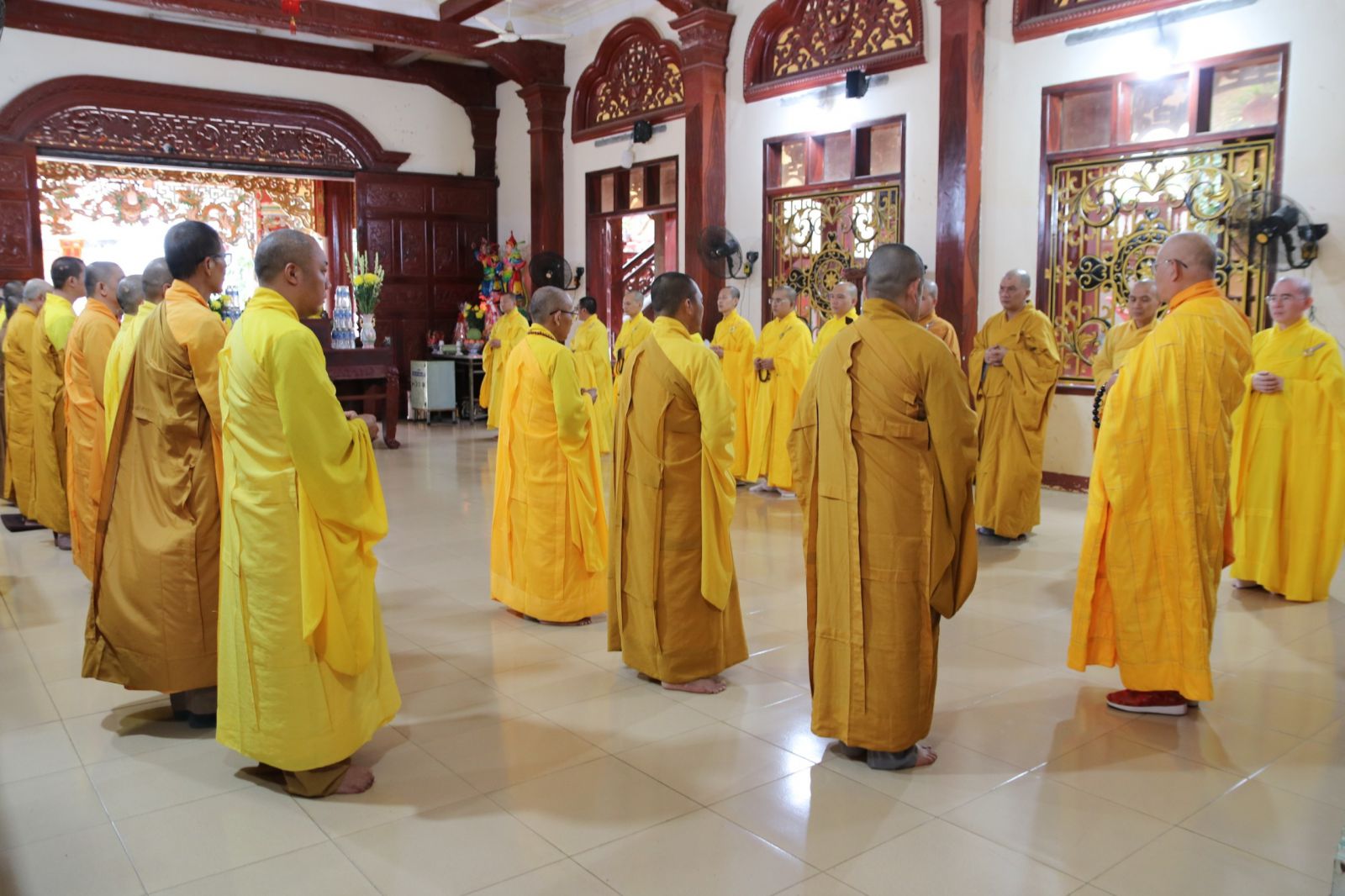 Vào lúc 7 giờ sáng, chư Tôn đức Tăng Ni đồng vân tập về Tổ đường- Tổ đình Pháp hội. Ni sư Thích nữ Hạnh Giải, Phó ban Trị sự kiêm Trưởng Phân ban Ni giới thị xã đã đại diện chư Tôn đức Ni 2 Hạ trường dâng lời tác bạch thỉnh cầu Đại Tăng giáo giới. Thay mặt Đại Tăng, HT. Thích Ấn Chánh ban lời huấn từ sách tấn Chư Ni hành giả an cư cần ý thức giữ gìn Giới luật, phạm hạnh, trau dồi Giới – Định -Tuệ, sống đúng tinh thần Lục hòa cộng trụ, đoàn kết, giúp đỡ lẫn nhau, để làm tấm gương sáng cho hàng Phật tử nương tựa tu học.