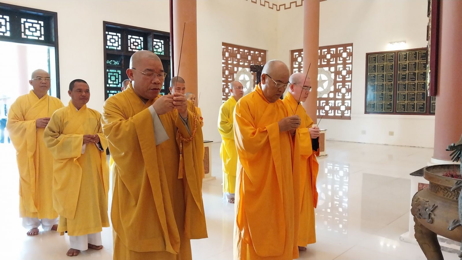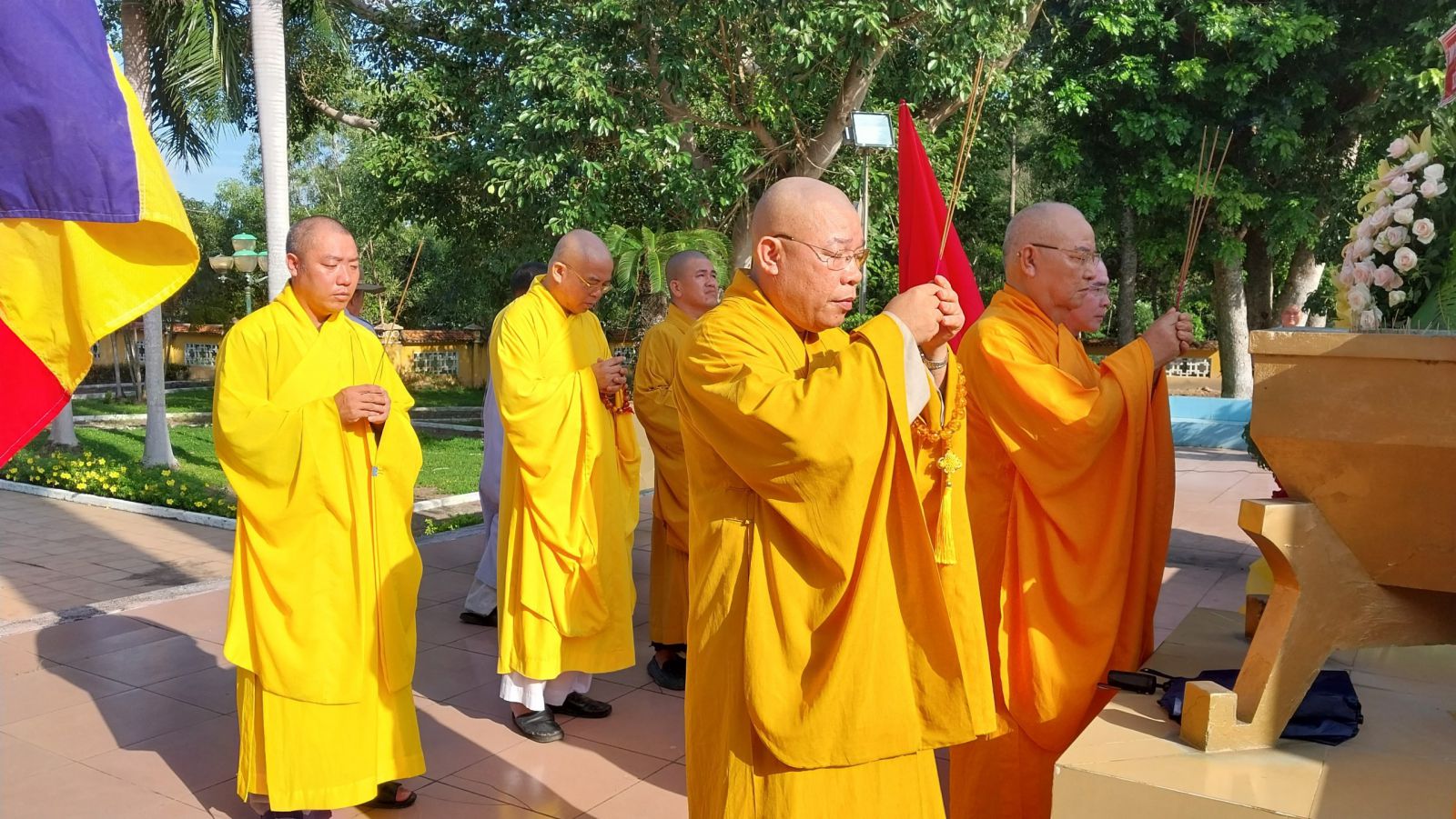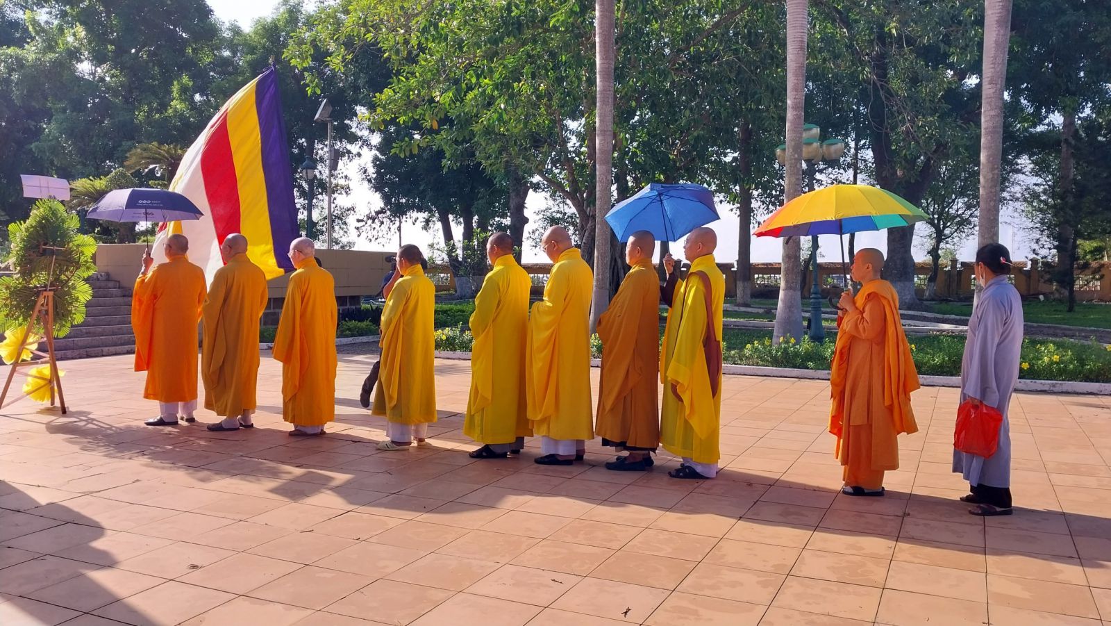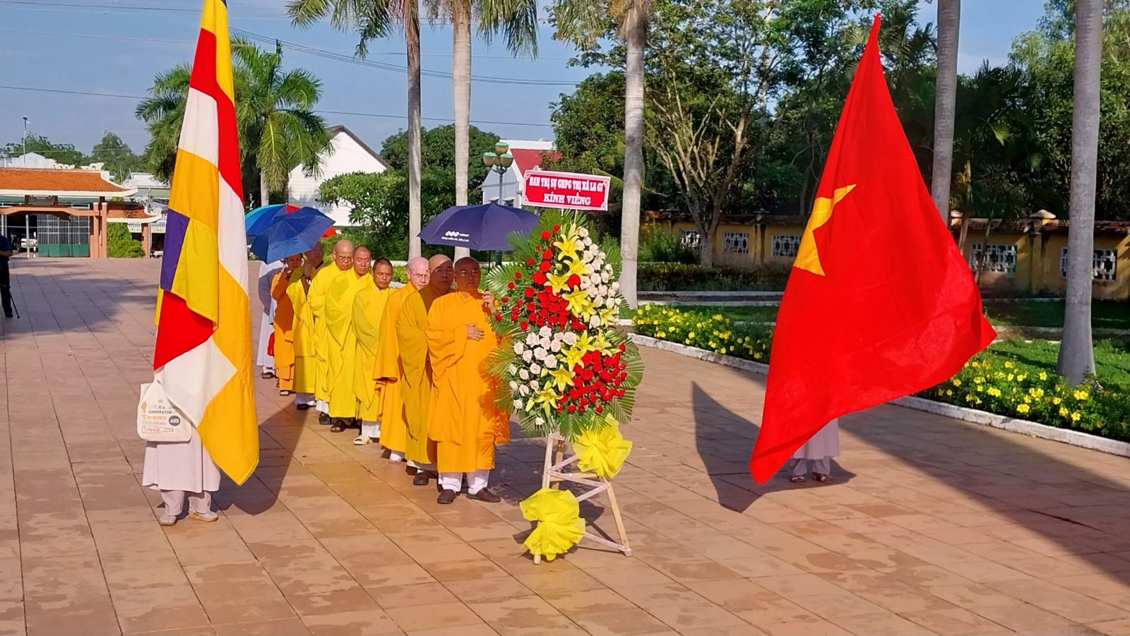 Trước đài tưởng niệm, chư Tôn đức đã đặt vòng hoa và thắp hương, dành phút mặc niệm, tưởng nhớ khắc ghi công ơn của Chủ tịch Hồ Chí Minh và các anh hùng liệt sĩ đã quyết tử cho Tổ quốc quyết sinh, để đất nước được nở hoa độc lập ".