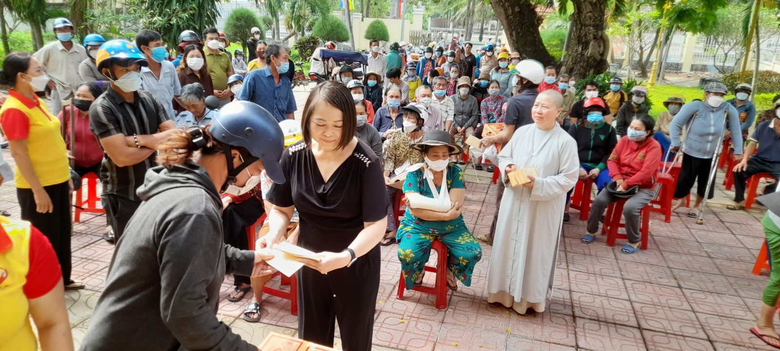 Được biết những phần quà này là do Trần Kim Thu PD. Diệu Tâm hiện là kiều bào đang sinh sống tại Mỹ trở về kết hợp cùng Ni sư TN Chơn Huy tài trợ cho bà con đang gặp khó khan tại quê hương.