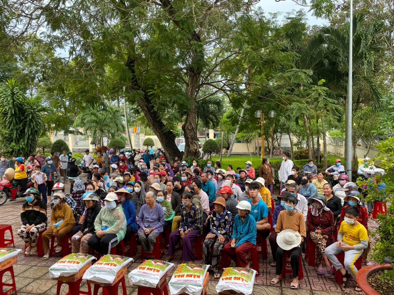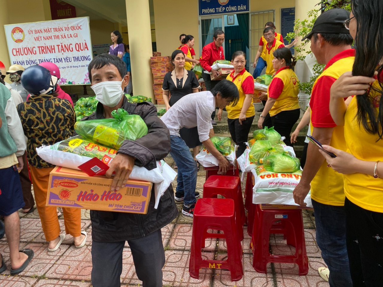 Sau đó, mọi người lần lượt đón nhận những món quà đã được tình nguyện viên chuẩn bị. Được biết, trong đợt trao quà lần này, mỗi phần quà trị giá 500.000 đồng, gồm: gạo, mì, nước tương, dầu ăn cùng bì thư tiền mặt với tổng kinh phí là 100.000.000.