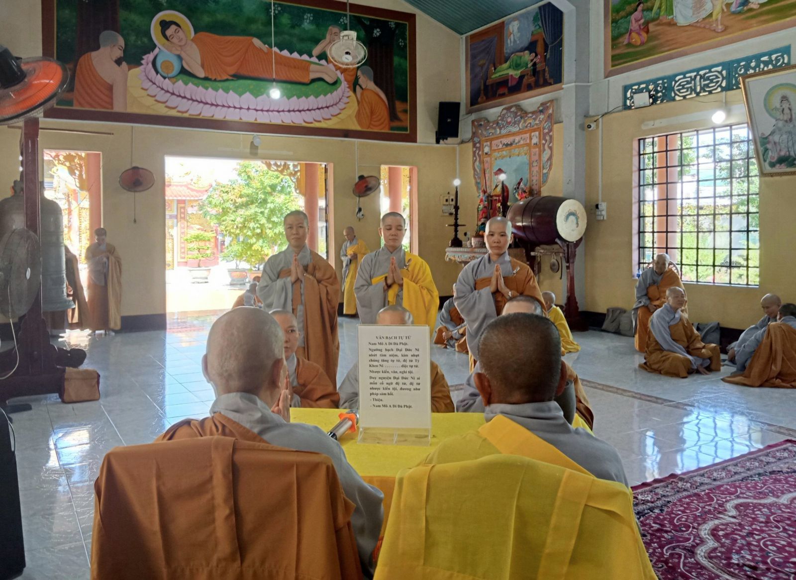Sau phần chư tôn đức Ni thành kính niêm hương đảnh lễ chư vị Tổ sư, bạch Phật và thực hiện nghi thức thâu chung bảng. Tiếp đến, đại chúng cung thỉnh NT.Thích nữ Như Khánh và NS. Thích nữ Như Không tác pháp đối thú Tự tứ, lần lượt chư tôn đức hành giả an cư cũng tác pháp đối thú Tự tứ, mãn hạ, đánh dấu chặng đường tu học của hành giả an cư kiết hạ trong ba tháng miên mật hành trì giới, định, tuệ tấn tu đạo nghiệp.