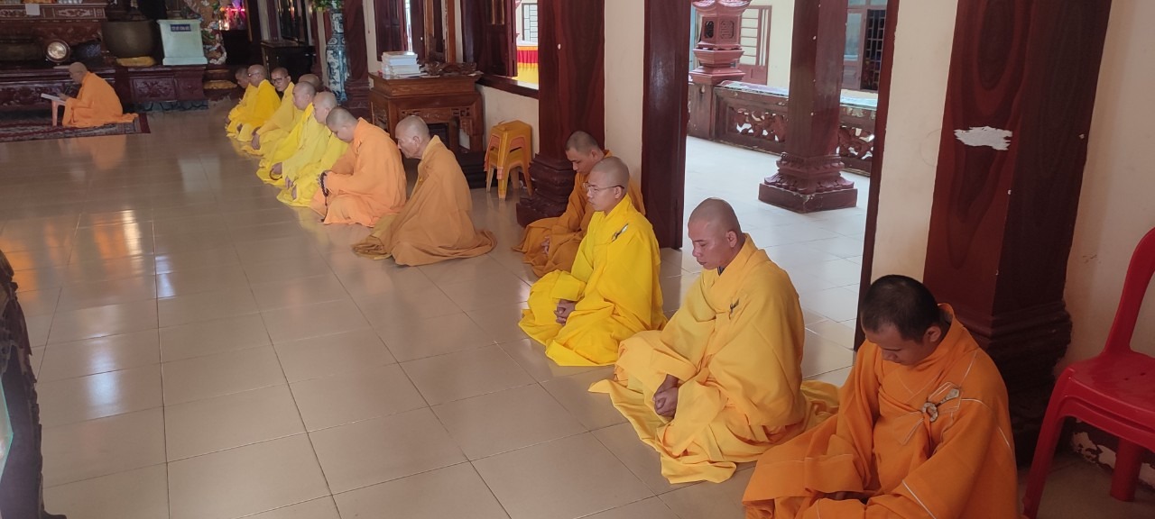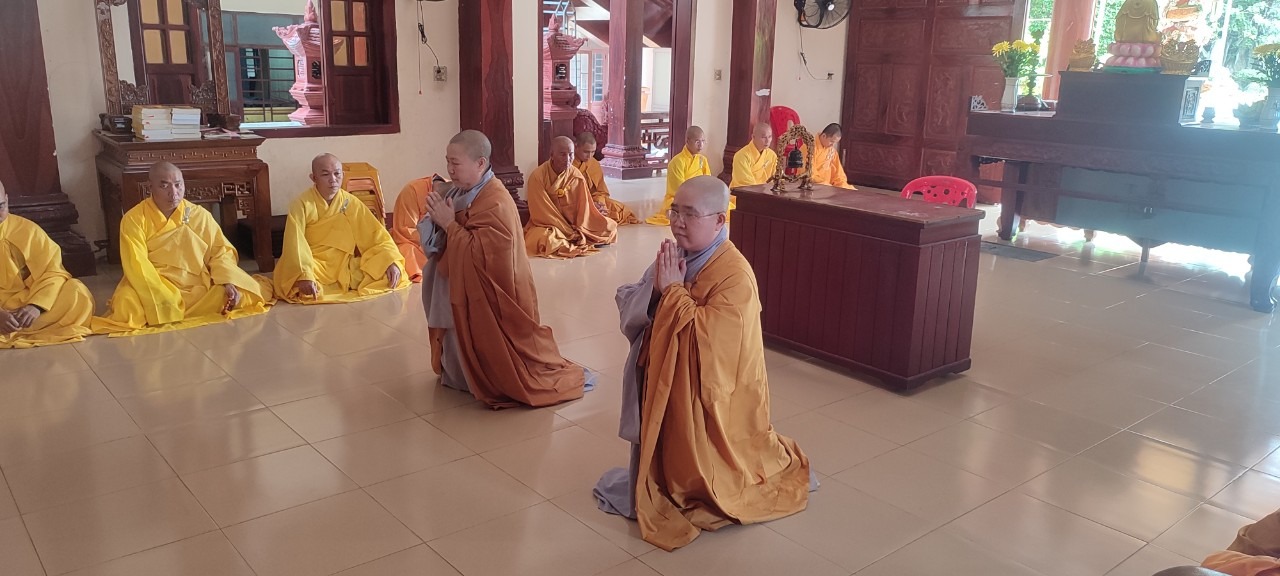 Tại buổi Bố tát, Đại chúng đã lắng nghe TT. Thích Pháp Huệ đã thay Tăng trùng tụng lại giới kinh.