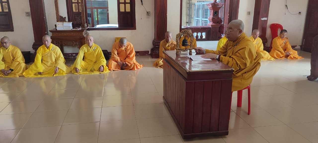 Tại buổi lễ, chư Tôn đức Tăng đã thực hiện các nghi thức thiền môn của lễ Bố tát, lễ Tổ, niêm hương bạch Phật, đảnh lễ Tam bảo. Hòa thượng Thiền chủ thay mặt Đại Tăng đã có lời giáo giới đến đại diện Chư Ni đang An cư trong địa bàn Thị xã.