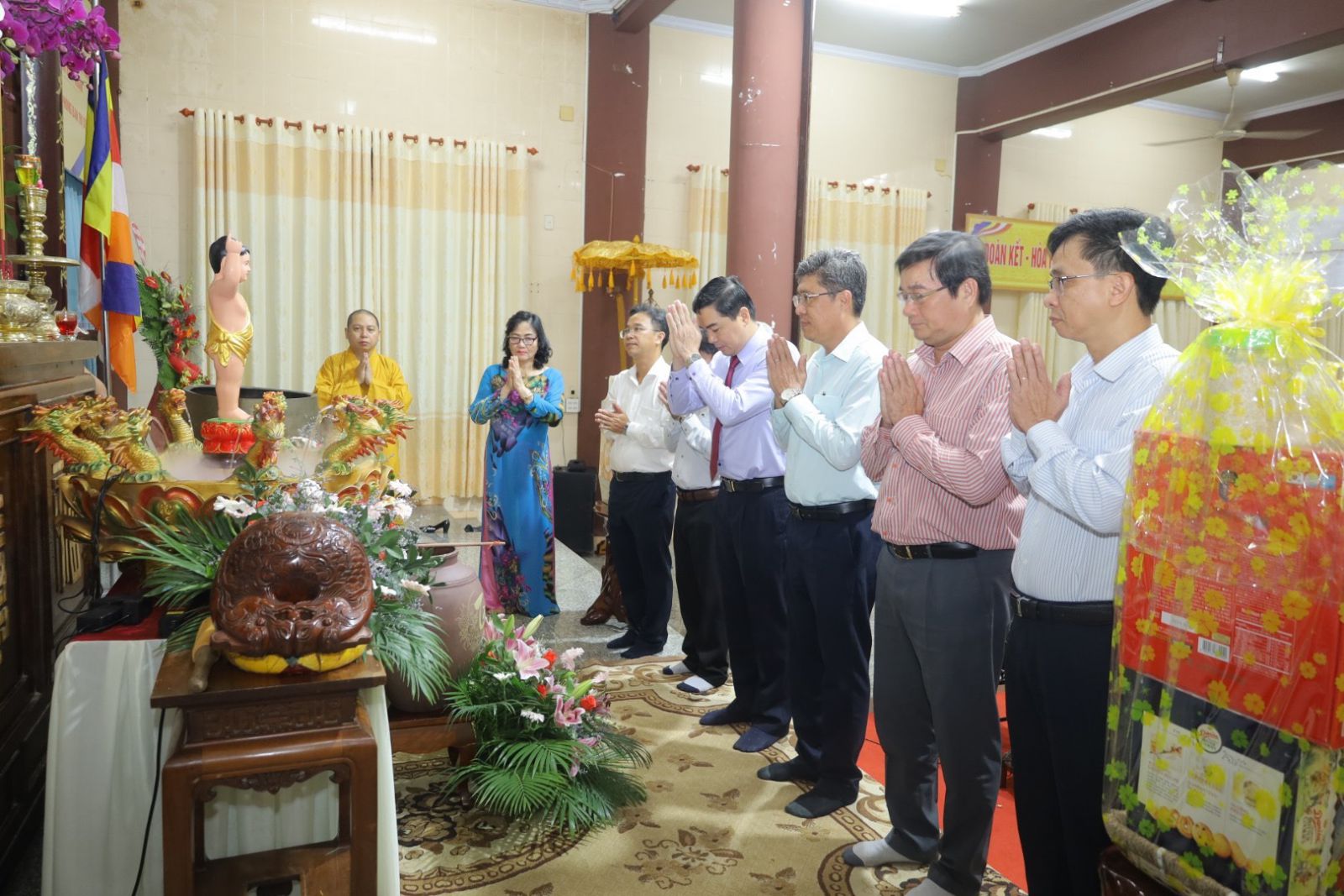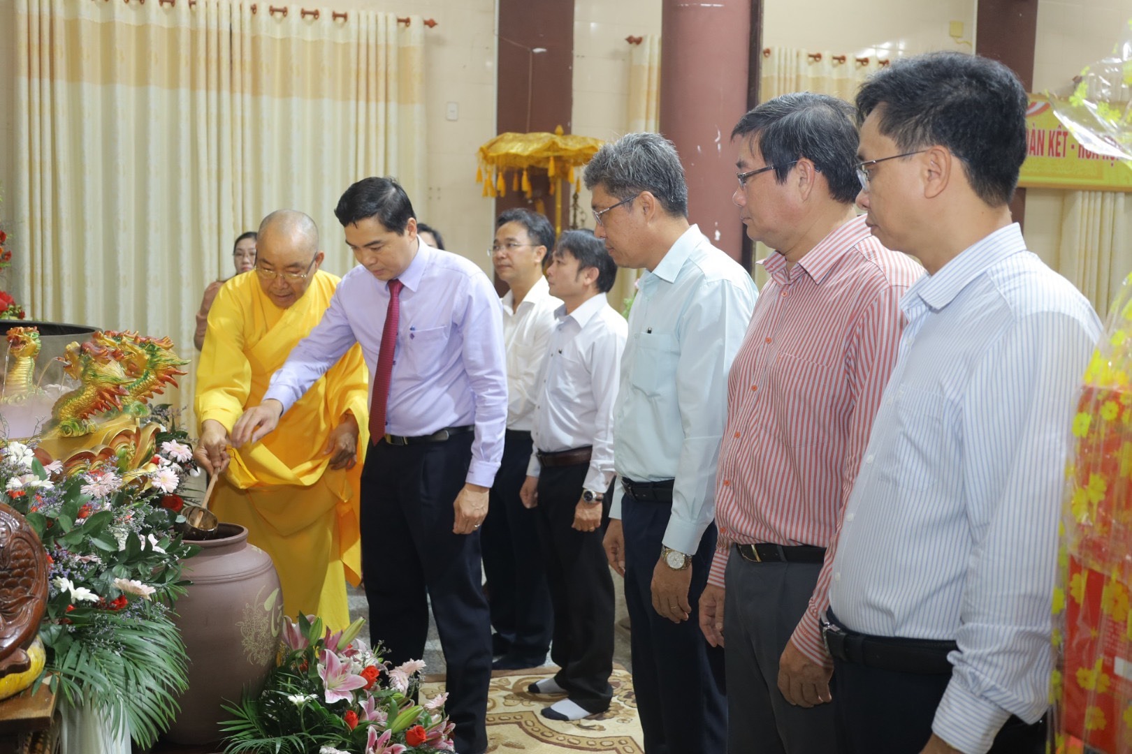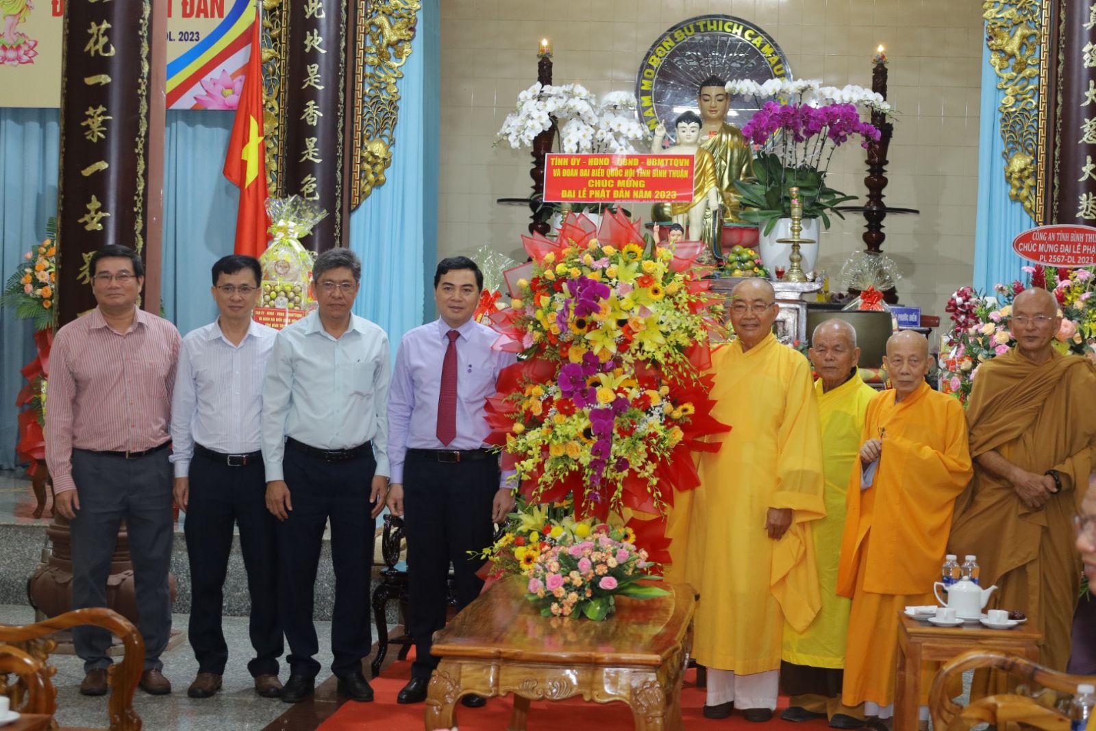 Phái đoàn lãnh đạo tỉnh do ông Nguyễn Hoài Anh - Uỷ viên Dự khuyết Trưng ương Đảng, Phó Bí thư Thường trực Tỉnh uỷ; Chủ tịch HĐND Tỉnh làm Trưởng đoàn. Tháp tùng đoàn còn có: ông Nguyễn Minh - Tỉnh uỷ viên, Phó Chủ tịch UBND Tỉnh; đại diện Ban Dân Vận Tỉnh uỷ; Uỷ Ban MTTQVN Tỉnh; Sở Nội vụ; Ban Tôn giáo Tỉnh Bình Thuận; cùng các cơ quan Ban ngành Tỉnh.