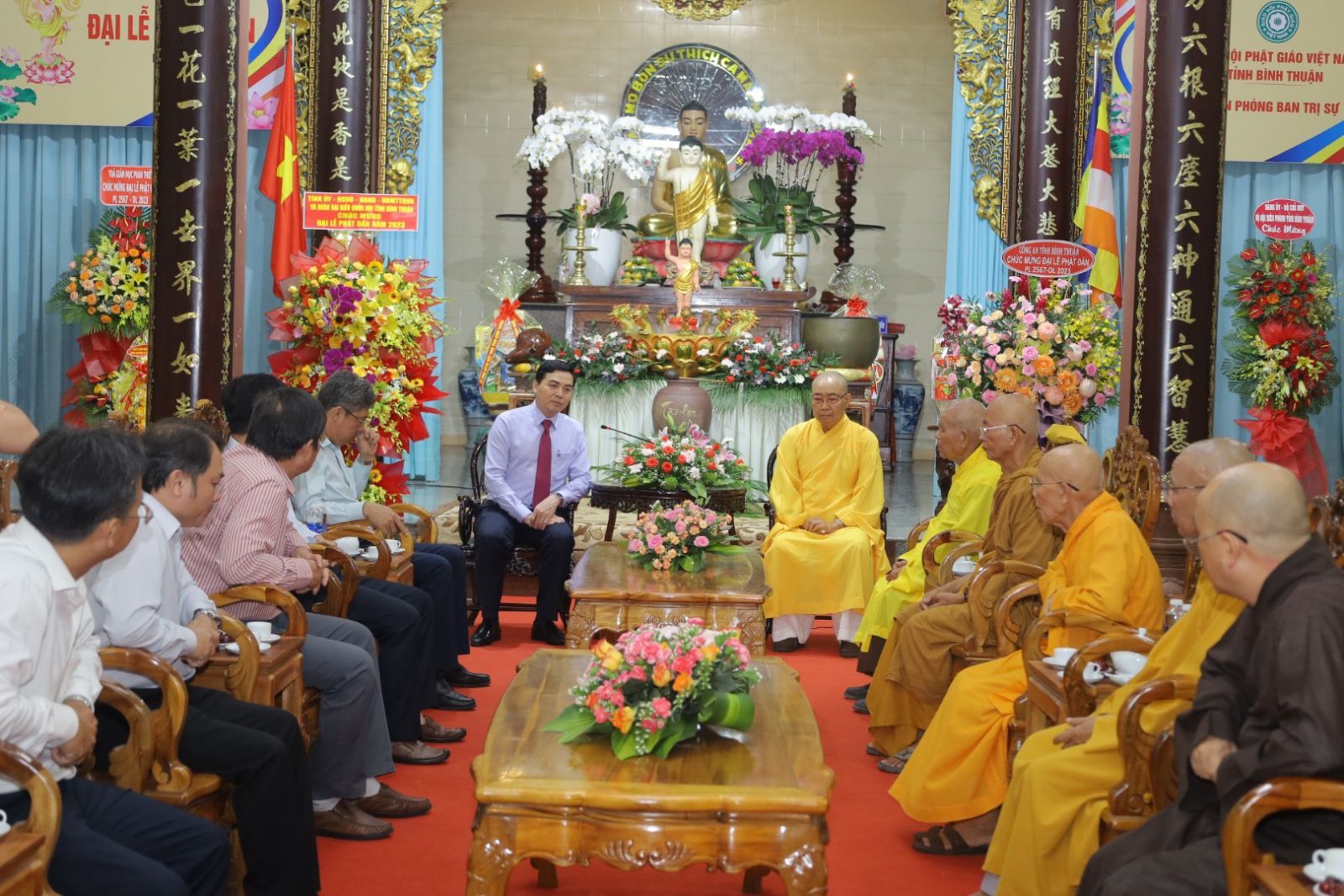 Thay mặt lãnh đạo Đảng bộ, chính quyền Tỉnh, ông Nguyễn Hoài Anh đã gửi lời thăm hỏi sức khỏe và chúc mừng Phật đản an lành đến Chư Tôn Trưởng lão Hòa thượng Chứng minh; Chư Tôn đức Thành viên BTS Phật giáo Tỉnh; đồng gởi lời chúc mừng đến toàn thể Tăng Ni, Phật tử, tín đồ trên địa bàn Tỉnh mùa Phật đản hạnh phúc, an lạc. Lãnh đạo Tỉnh luôn ghi nhận những đóng góp sâu sắc của Tăng Ni, Phật tử Tỉnh nhà trong nhiều lĩnh vực, không chỉ trong an sinh xã hội, xây dựng bảo vệ Tổ quốc mà còn cả trong công cuộc phát triển quê hương Bình Thuận. Lãnh đạo Đảng uỷ, các ban ngành đoàn thể Tỉnh luôn bày tỏ sự quan tâm và ủng hộ mọi công tác Phật sự và thiện sự của Tăng Ni Phật tử Tỉnh nhà. Đặc biệt, Đại lễ Phật đản năm nay tại Tỉnh được tổ chức một cách trọng thị góp phần trong việc lan toả hình ảnh văn hoá, nét đẹp Tỉnh nhà trong năm Du lịch Quốc gia 2023 “Bình Thuận - Hội tụ xanh”.