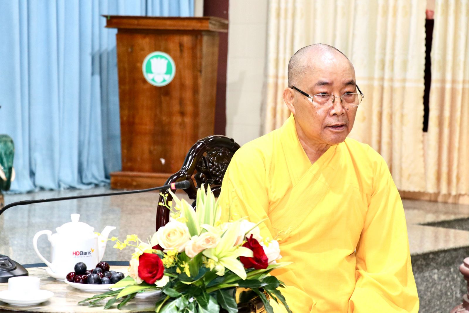 Thay mặt Tăng Ni, Phật tử Ban Trị sự GHPGVN Tỉnh, Hòa thượng Trưởng Ban Trị sự bày tỏ sự vui mừng trước sự quan tâm của lãnh đạo tỉnh đã đến thăm, chúc mừng nhân dịp Đại Lễ Vu lan năm 2023. Hòa thượng cũng chia sẻ về ý nghĩa lễ Vu Lan, Tứ Đại Trọng Ân, tinh thần tri ân báo ân, đặc biệt là ân Quốc gia – Xã hội. Hòa thượng nhấn mạnh về tinh thần đoàn kết, hoà hợp của Tăng Ni, Phật tử tỉnh nhà luôn chung tay, đồng lòng cùng các cấp, các cơ quan Nhà nước thực hiện tốt các chủ trương, chính sách, Pháp luật của Nhà nước. Đồng thời, Tăng Ni, Phật tử tỉnh nhà luôn tiên phong trong công cuộc xây dựng, bảo vệ Tổ quốc thông qua các công tác an sinh xã hội, quốc phòng toàn dân. Tại đây, Hòa thượng Trưởng Ban Trị sự cũng đã gửi lời tri ân đến các cấp lãnh đạo chính quyền đã luôn tạo điều kiện thuận lợi cho Giáo hội Tỉnh nhà trong thời gian qua. Cuối lời, Hòa thượng kính chúc quý phái đoàn, một mùa Vu Lan an lạc.